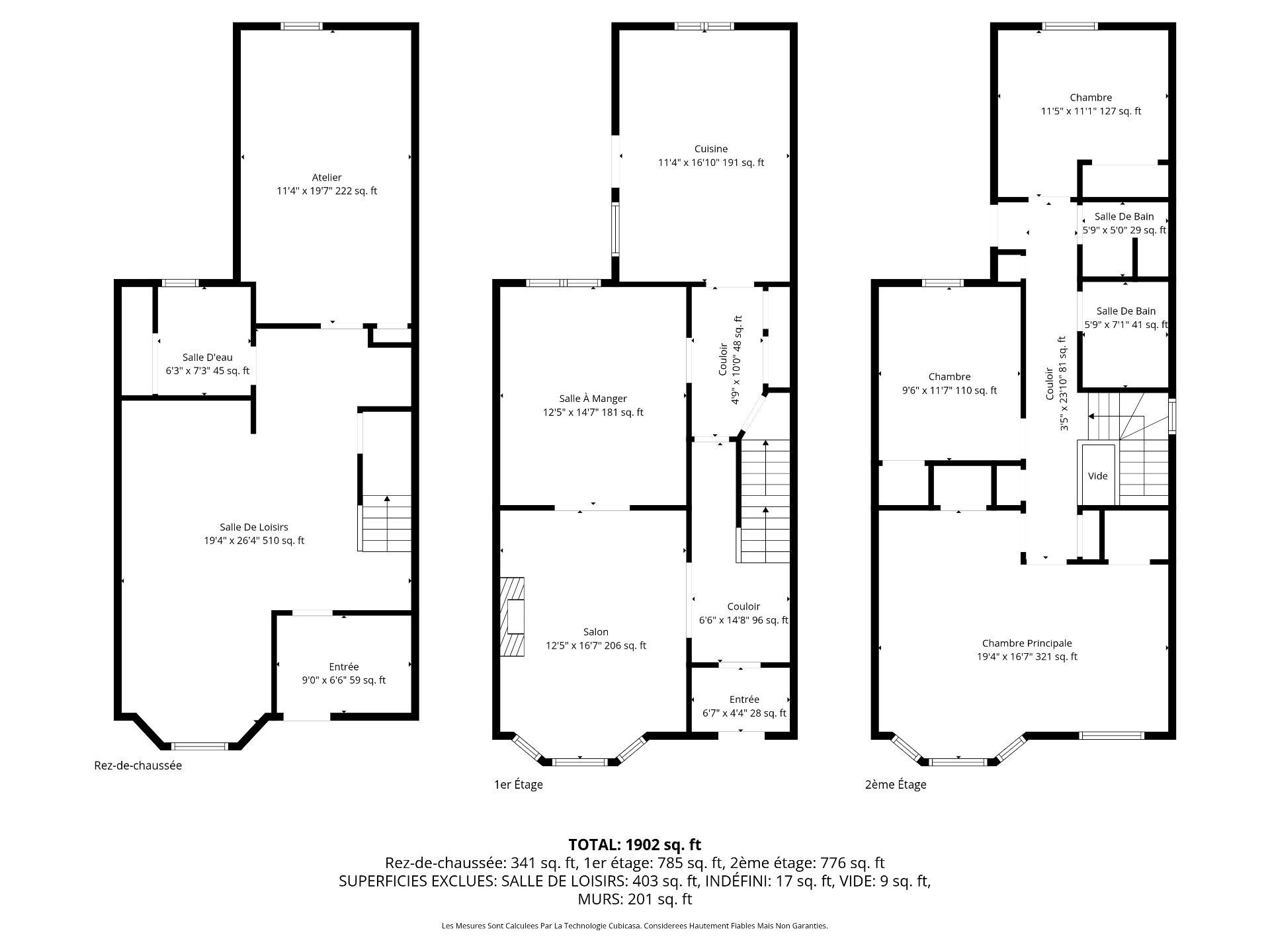| Salon | Rez-de-chaussée | 12.5x16.7 P | Bois |