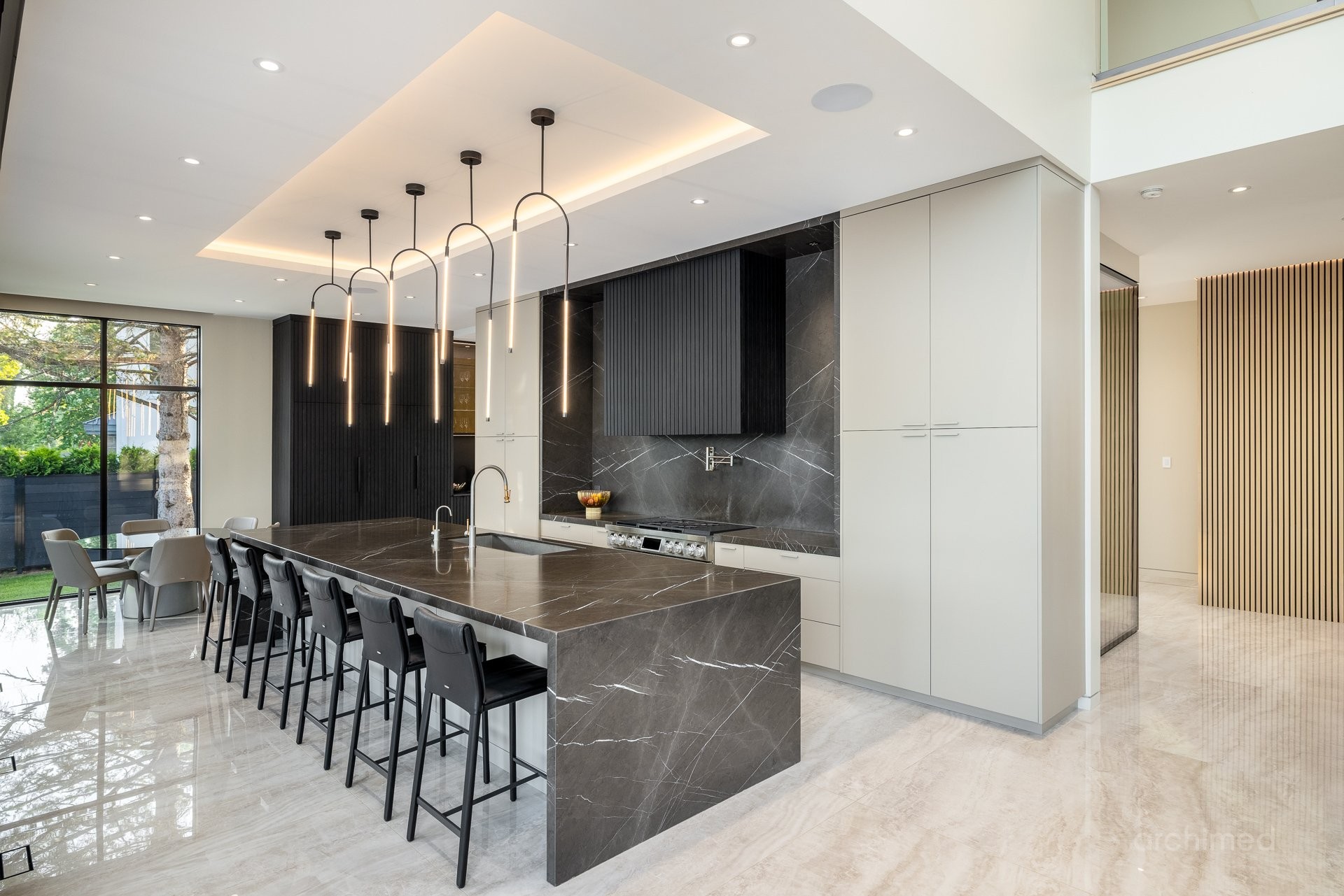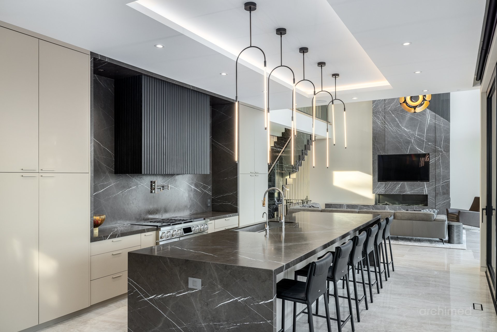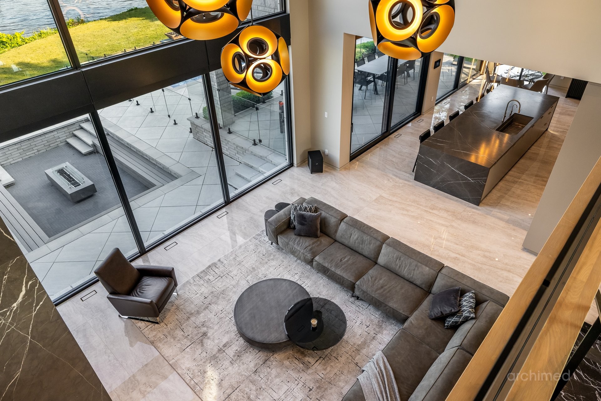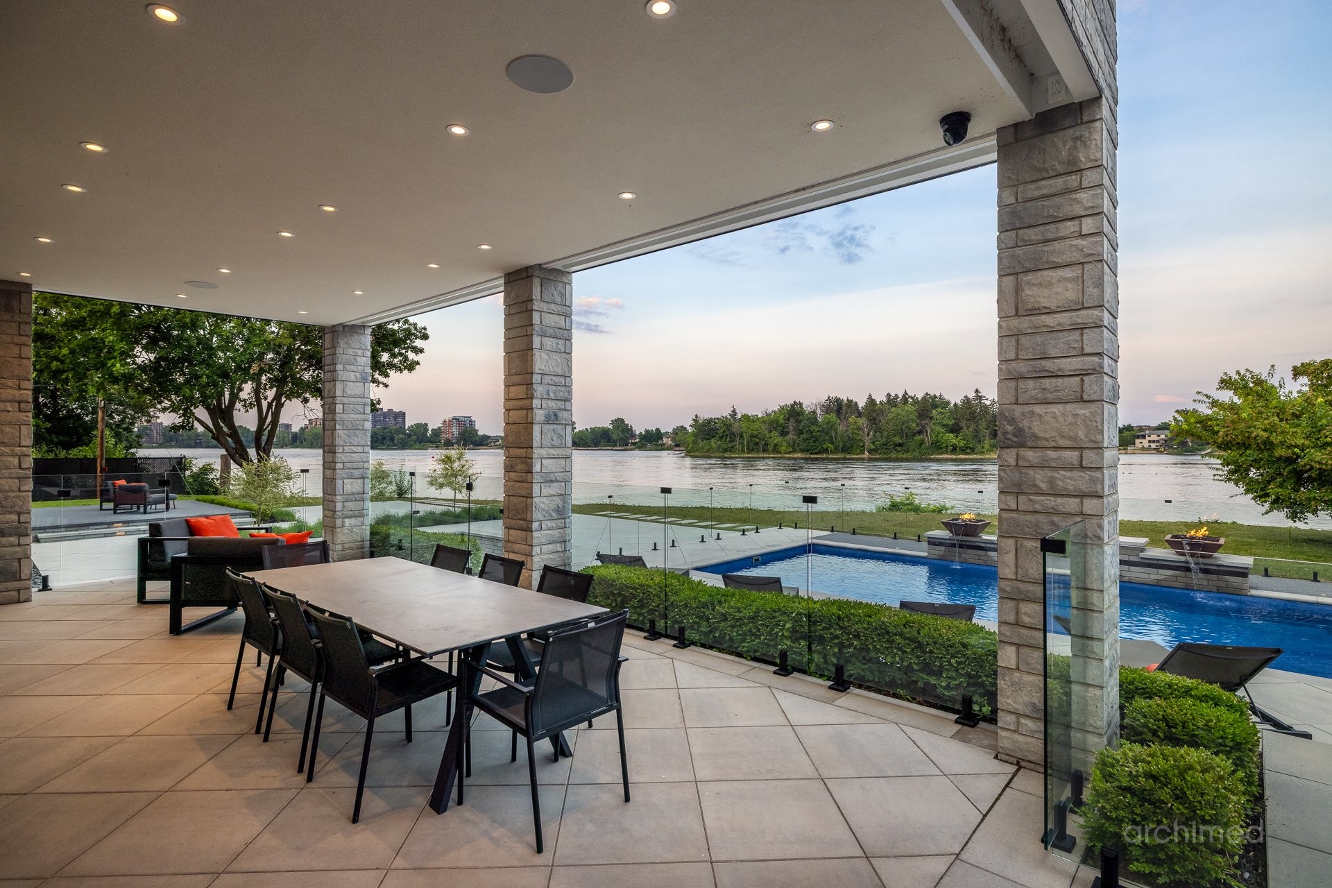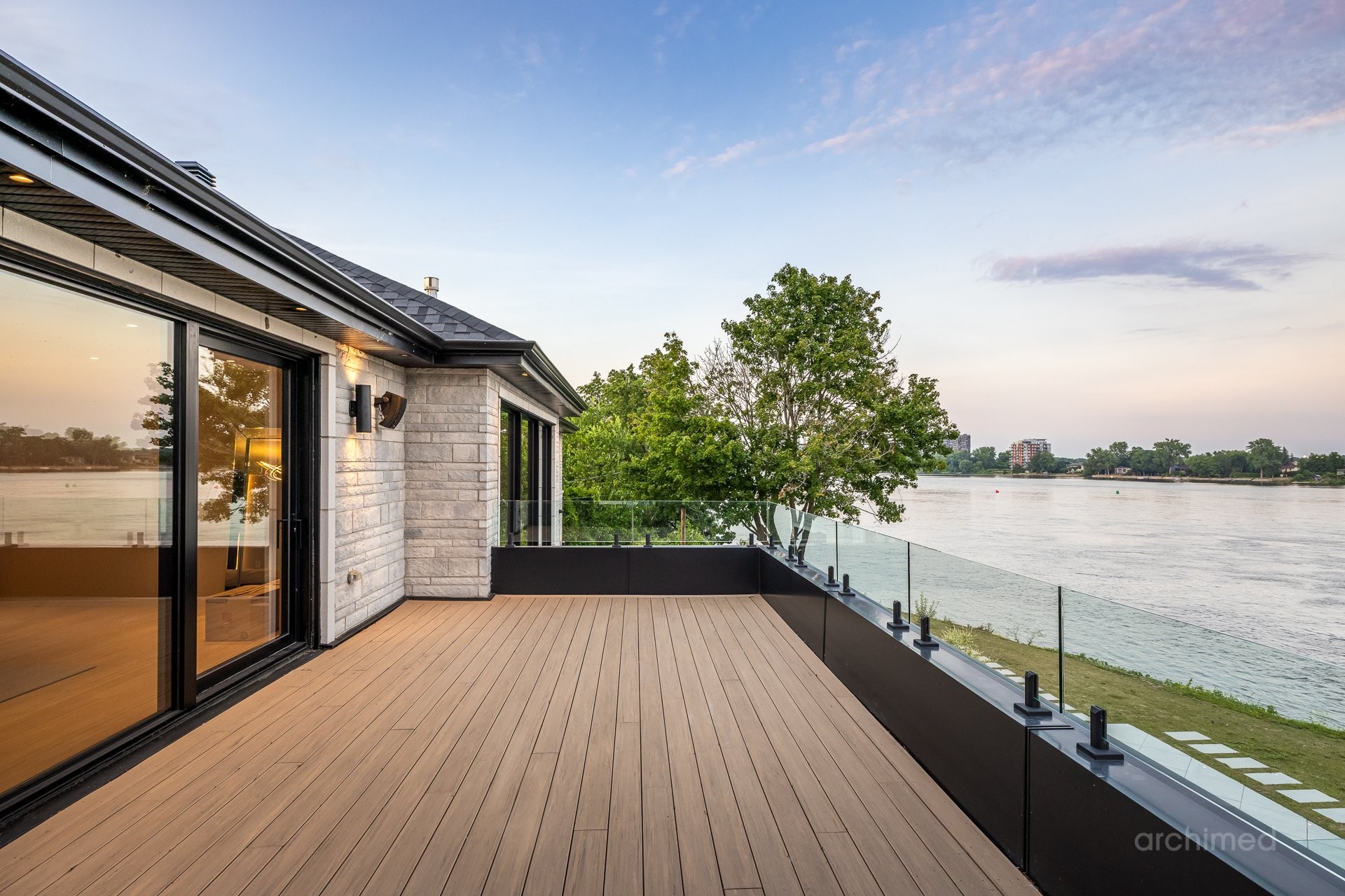 + Véritable pièce maîtresse architecturale, l'escalier flottant en marbre, conçu sur mesure, est suspendu harmonieusement et constitue le point de mire dès l'entrée+ La cuisine du chef est dotée d'un îlot central en marbre de 14 pieds, de comptoirs et d'un dosseret+ Un garde-manger de 13 pieds avec de nombreux rangements et armoires+ Le bar avec évier, lave-vaisselle et mini-réfrigérateur sont à votre disposition+ Sols carrelés en porcelaine de 12 mm+ Salle à manger séparée+ Le vaste salon offre une vue panoramique sur la Rivière des Prairies et comprend un foyer au gaz en marbre, encastré dans un plafond cathédrale de 22 pieds de haut.+ Bureau avec portes-fenêtres vitrées+ Le gym comprend une salle de bain attenante avec douche, une laveuse et sécheuse et un sauna sec. Ouvrez la porte et profitez d'un accès direct à la terrasse arrière+ Toutes les portes intérieures sont importées d'Italie+ La cave à vin est à température contrôlée, protégée contre les UV et peut contenir 500 bouteilles+ Toutes les fenêtres de la maison sont protégées contre les UV et inviolables, reliées au système d'alarme central+ Plafonds de 11 pieds