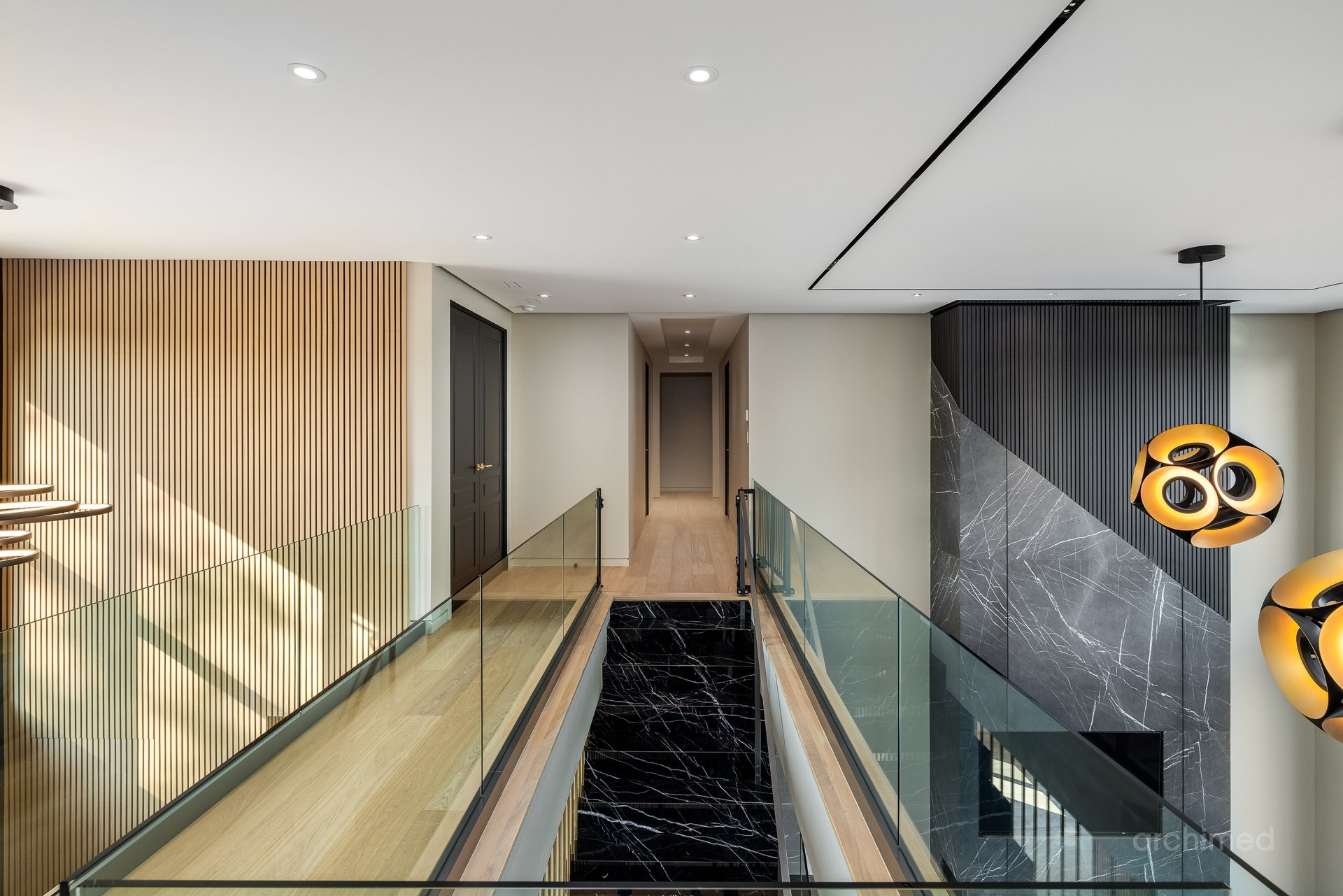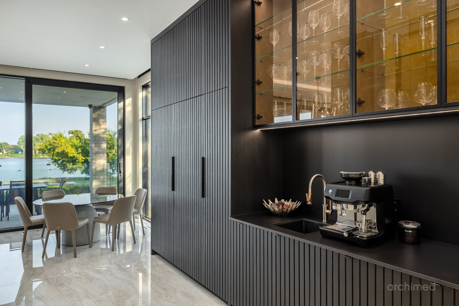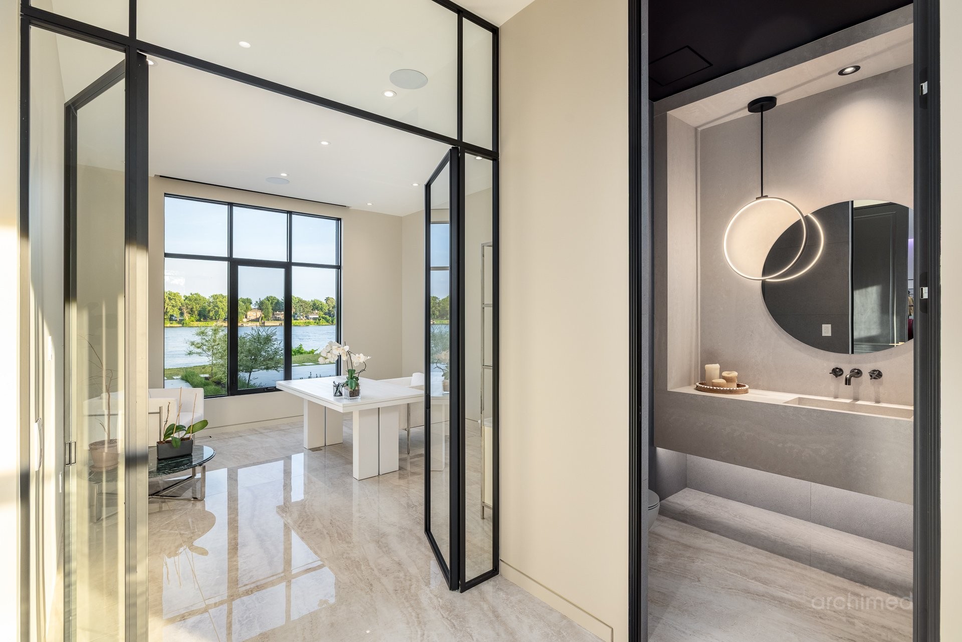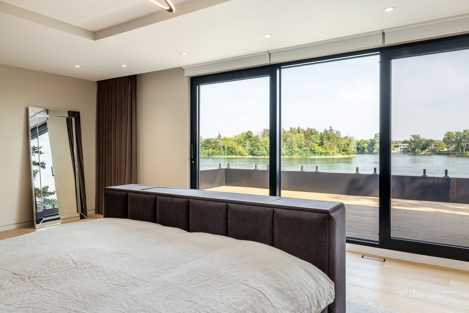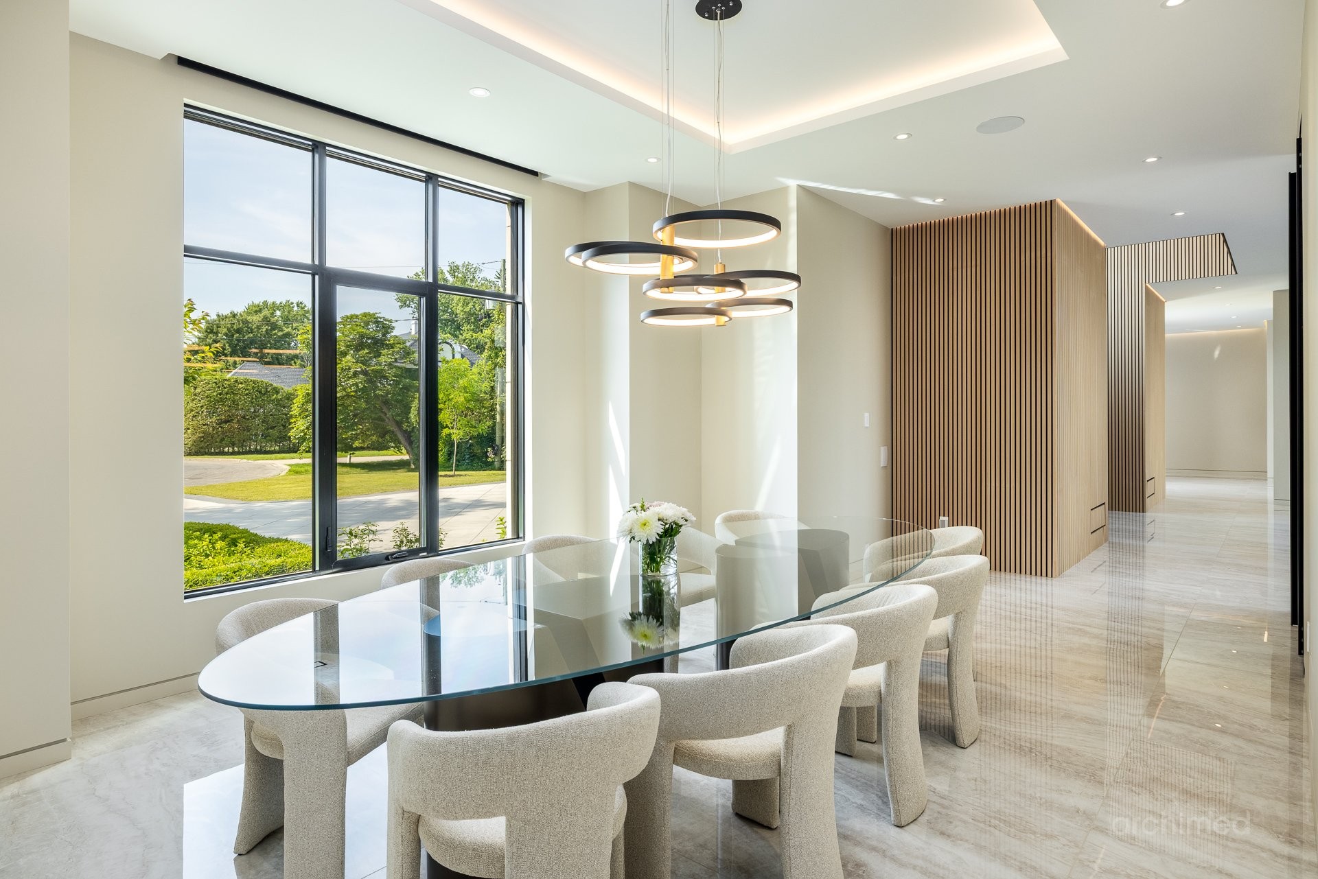 + Véritable pièce maîtresse architecturale, l'escalier flottant en marbre, conçu sur mesure, est suspendu harmonieusement et constitue le point de mire dès l'entrée+ La cuisine du chef est dotée d'un îlot central en marbre de 14 pieds, de comptoirs et d'un dosseret+ Un garde-manger de 13 pieds avec de nombreux rangements et armoires+ Le bar avec évier, lave-vaisselle et mini-réfrigérateur sont à votre disposition+ Sols carrelés en porcelaine de 12 mm+ Salle à manger séparée+ Le vaste salon offre une vue panoramique sur la Rivière des Prairies et comprend un foyer au gaz en marbre, encastré dans un plafond cathédrale de 22 pieds de haut.+ Bureau avec portes-fenêtres vitrées+ Le gym comprend une salle de bain attenante avec douche, une laveuse et sécheuse et un sauna sec. Ouvrez la porte et profitez d'un accès direct à la terrasse arrière+ Toutes les portes intérieures sont importées d'Italie+ La cave à vin est à température contrôlée, protégée contre les UV et peut contenir 500 bouteilles+ Toutes les fenêtres de la maison sont protégées contre les UV et inviolables, reliées au système d'alarme central+ Plafonds de 11 pieds