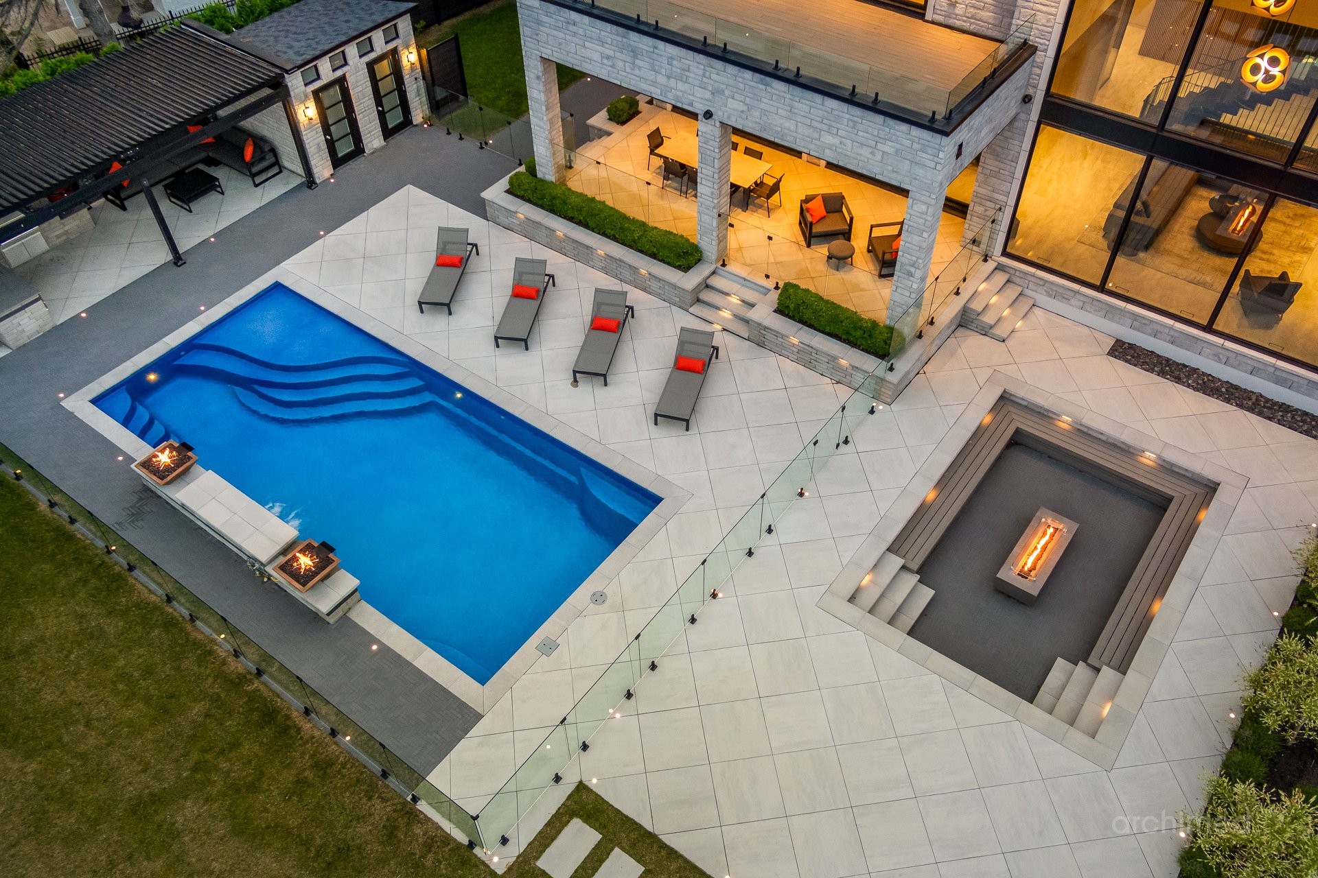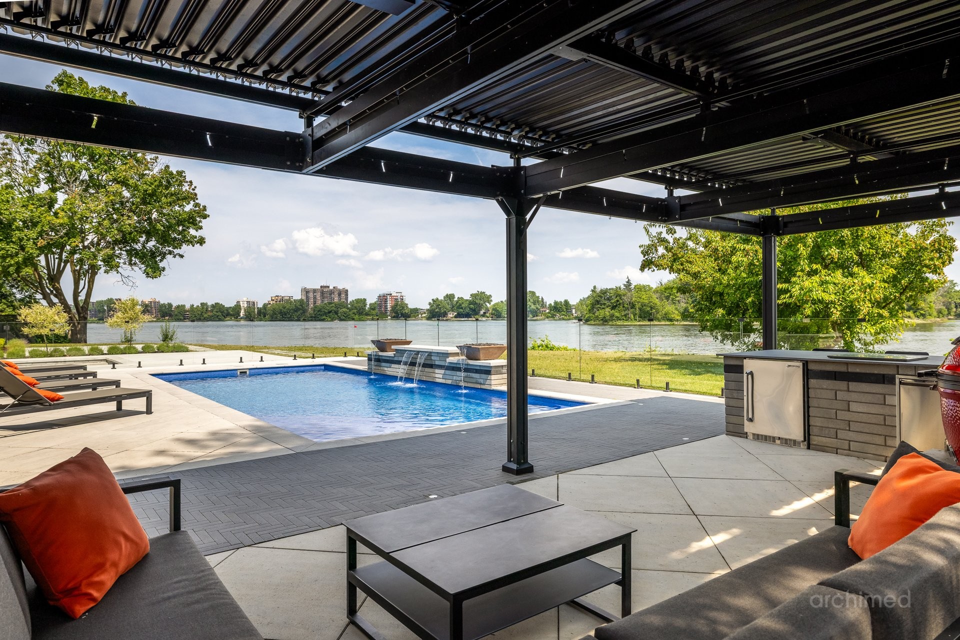 + Générateur Kohler de 26 kW+ Piscine creusée et chauffée au sel avec foyers et fontaines+ Pergola (Mr. Pergola) installée au-dessus de la cuisine et du séjour pour un confort optimal, avec rétraction automatique par télécommande+ Foyer encastré avec de nombreuses places assises+ Un demi-terrain de basket et un grand espace vert sont situés à l'est de la propriété+ Double cabanon pour le rangement