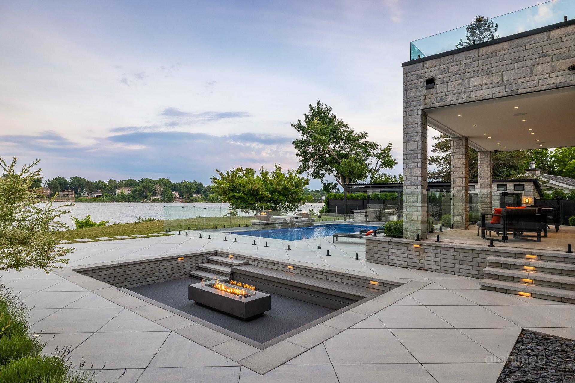 Conçue par Antonio Pizzano, architecte d'intérieur réputé pour son luxe audacieux, avec un sens aigu du détail et une approche méticuleuse de chaque projet, cette résidence exceptionnelle au bord de l'eau bénéficie d'une digue de plus de 45 mètres et d'une vue panoramique sur la Rivière des Prairies. Cette propriété exquise, située sur un terrain de 26,000 pc, comprend 6 chambres, 6 plus 2 salles de bains, cinéma maison, gym complète avec sauna sec, un espace de vie intérieur/extérieur, une piscine creusée au sel, un foyer encastré avec de nombreux sièges, un demi-terrain de basket et un garage pour 3 voitures.