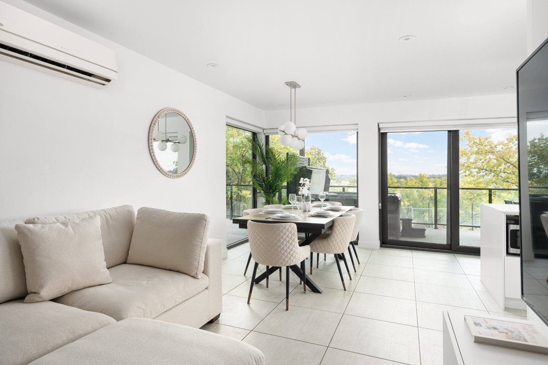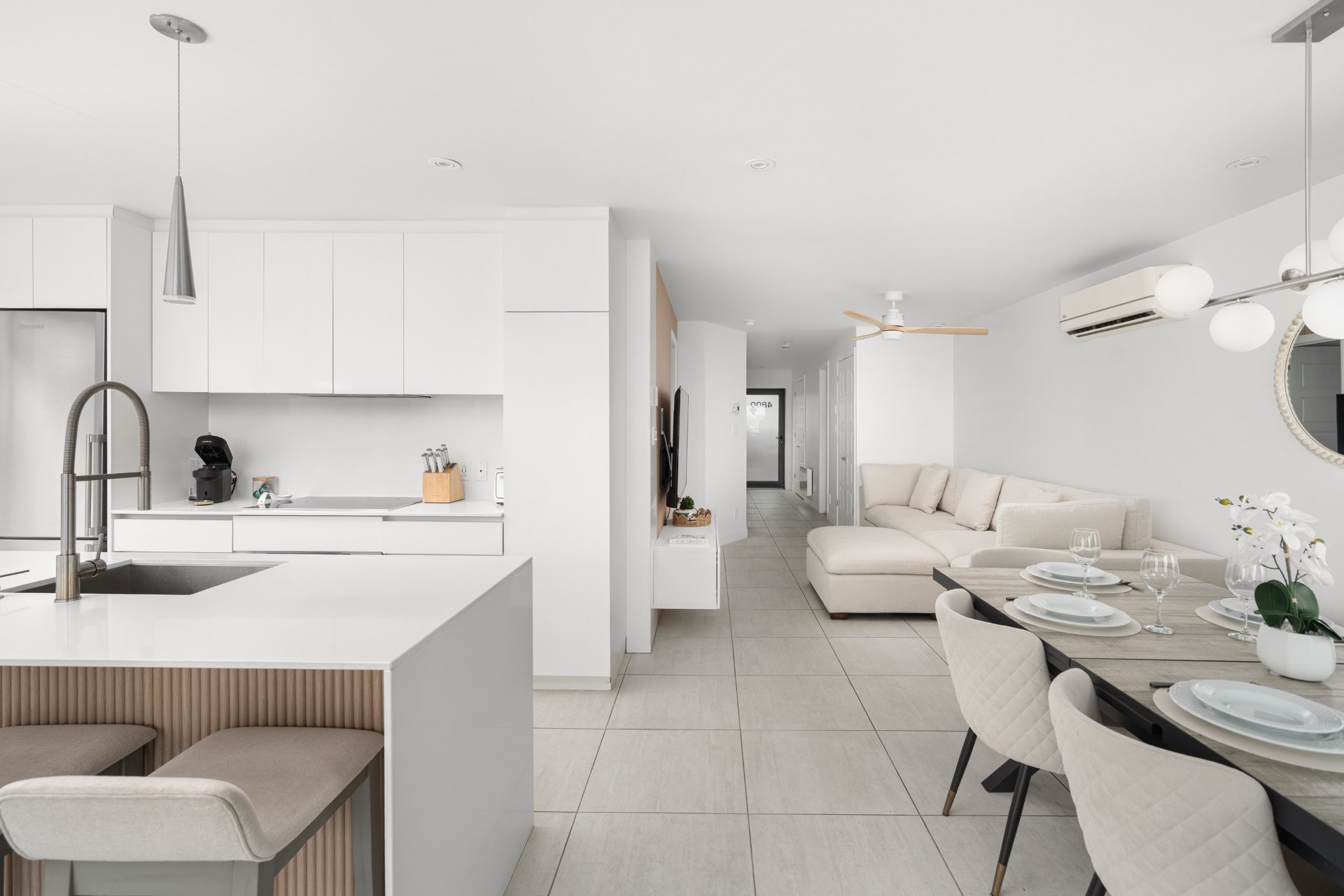 Superbe condo 4 1/2 situé au rez-de-chaussée, entièrement meublé et prêt à emménager immédiatement. Offrant 1000 pc d'aire habitable, cette unité lumineuse propose un concept à aire ouverte moderne et fonctionnel. La cuisine contemporaine avec grand îlot s'ouvre sur les espaces salle à manger et salon, parfaits pour recevoir. Vous profiterez également d'une terrasse privée avec spa (jacuzzi), idéale pour relaxer en toute tranquillité. Idéal pour professionnels, couple ou petite famille recherchant confort et commodité à Laval.