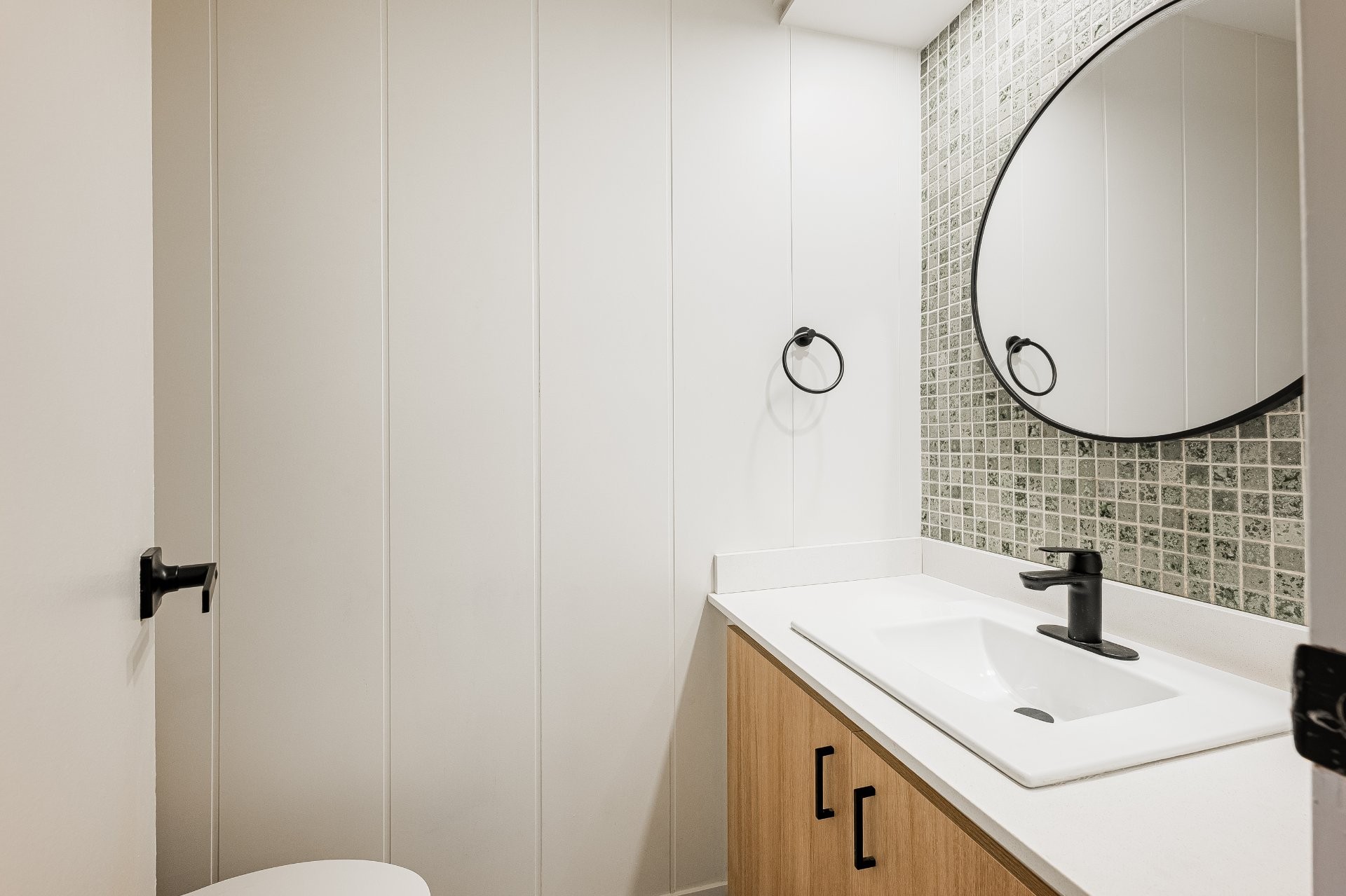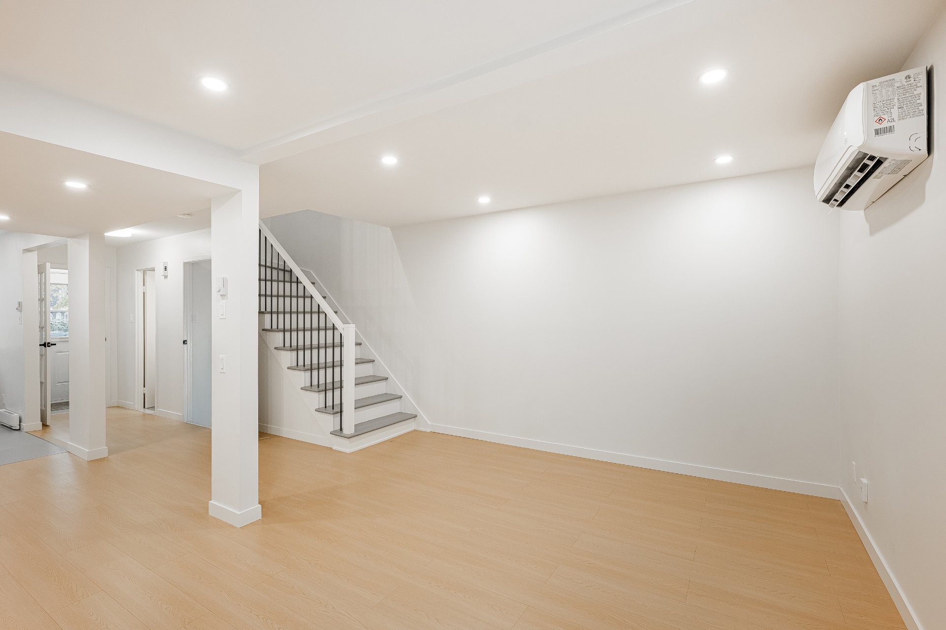 **Bienvenue au 4878 Lake Road -- une maison de ville entièrement rénovée située au coeur de Dollard-des-Ormeaux.**Rénovée de A à Z en 2024, cette propriété clé en main offre des finitions modernes, des espaces de vie lumineux et une configuration repensé pour répondre aux besoins d'aujourd'hui. La toute nouvelle cuisine se distingue par son style contemporain : armoires deux tons, accents de bois clair, quincaillerie noire, dosseret en carreaux, éclairage encastré et grande fenêtre laissant entrer une abondance de lumière naturelle. Un espace idéal pour cuisiner, recevoir ou simplement profiter de l'ambiance moderne. Le salon a été entièrement remis à neuf avec de nouveaux planchers, un éclairage encastrée et une belle fluidité menant à la cour arrière grâce à de grandes portes-patio -- parfait pour prolonger la vie intérieure vers l'extérieur. Une thermopompe murale assure un confort optimal en toute saison. À l'étage, la salle de bain rénovée offre un design épurée avec des installations modernes, un bain/douche profond, une robinetterie noire mate et une finition minimaliste. Les chambres sont lumineuses, fraîchement rénovée et prêtes à accueillir votre aménagement. Le sous-sol ajoute un espace de vie supplémentaire grâce à une salle familiale entièrement refaite -- parfaite pour un cinéma maison, un gym, une salle de jeux ou un bureau -- en plus de bons espaces de rangement. Située à quelques pas des parcs, écoles, du parc Centennial et de nombreuses commodités, cette propriété combine parfaitement tranquillité résidentielle et proximité des services, du centre Fairview, du transport en commun et des axes routiers.**À retenir :*** **Rénovations complètes en 2024*** Cuisine moderne deux tons avec nouvelles armoires & éclairage