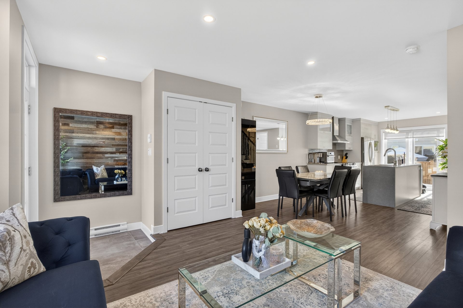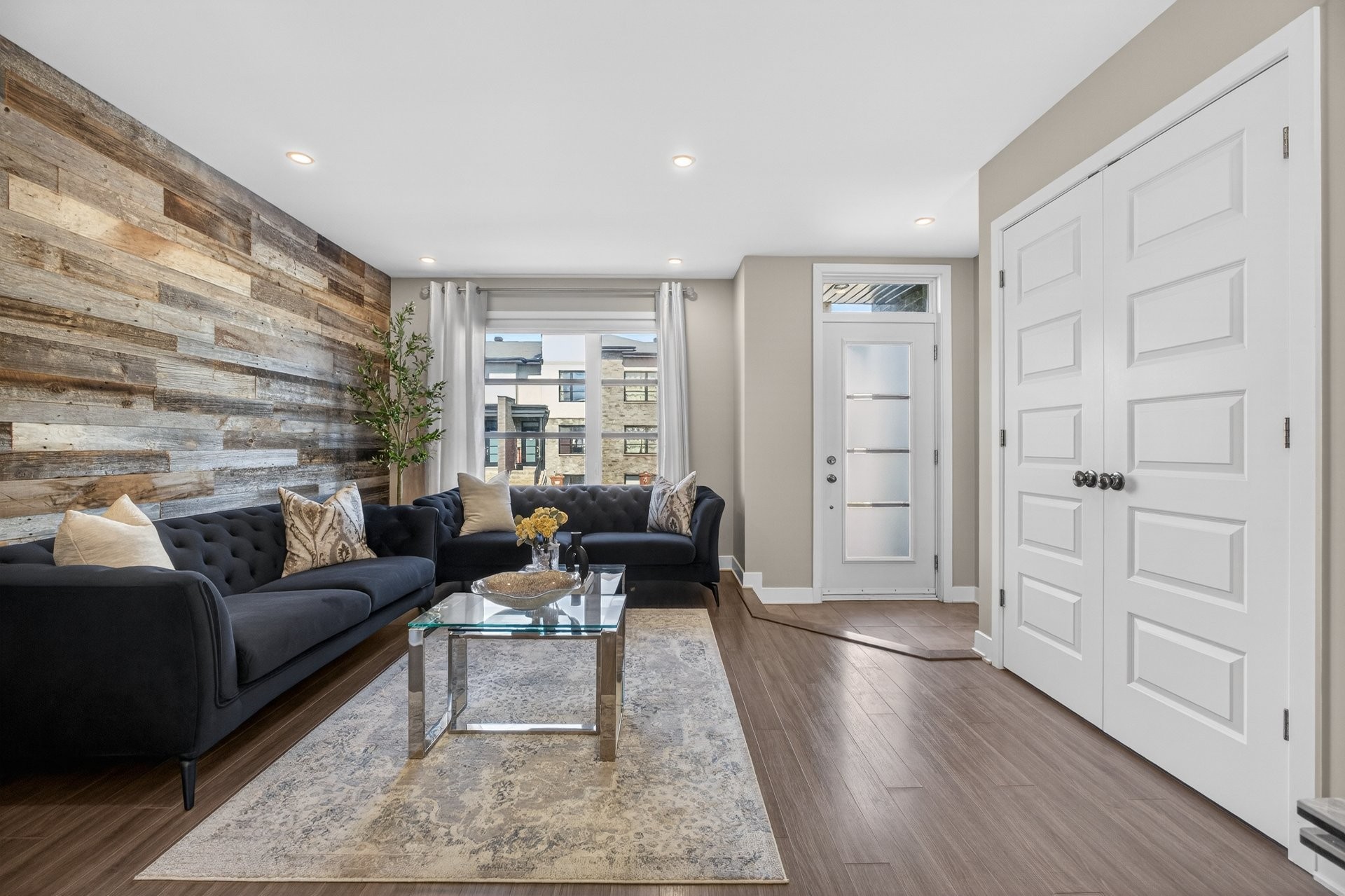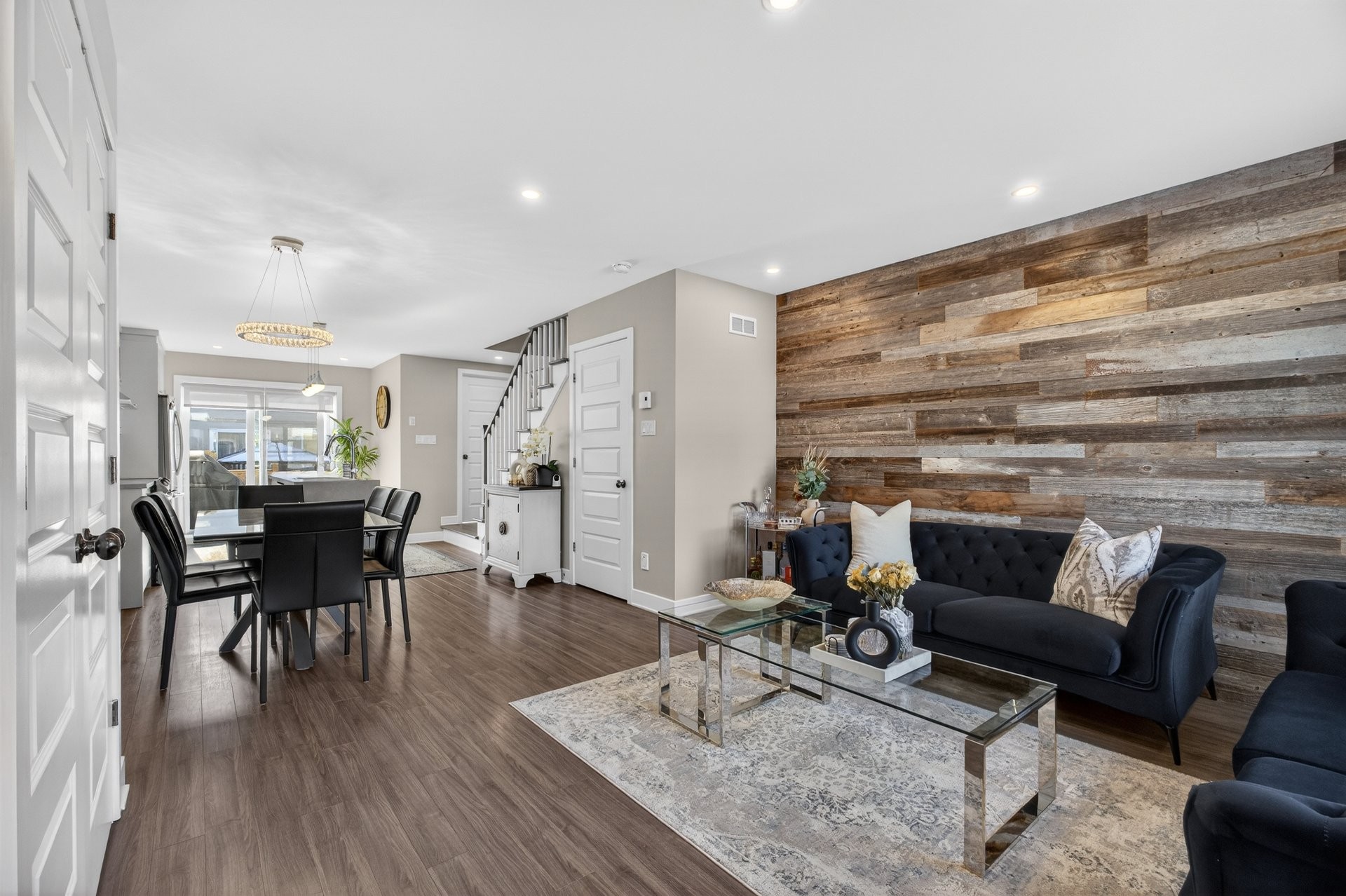 | Salon | Rez-de-chaussée | 13.3x12.7 P | Plancher flottant | mur accent en bois |