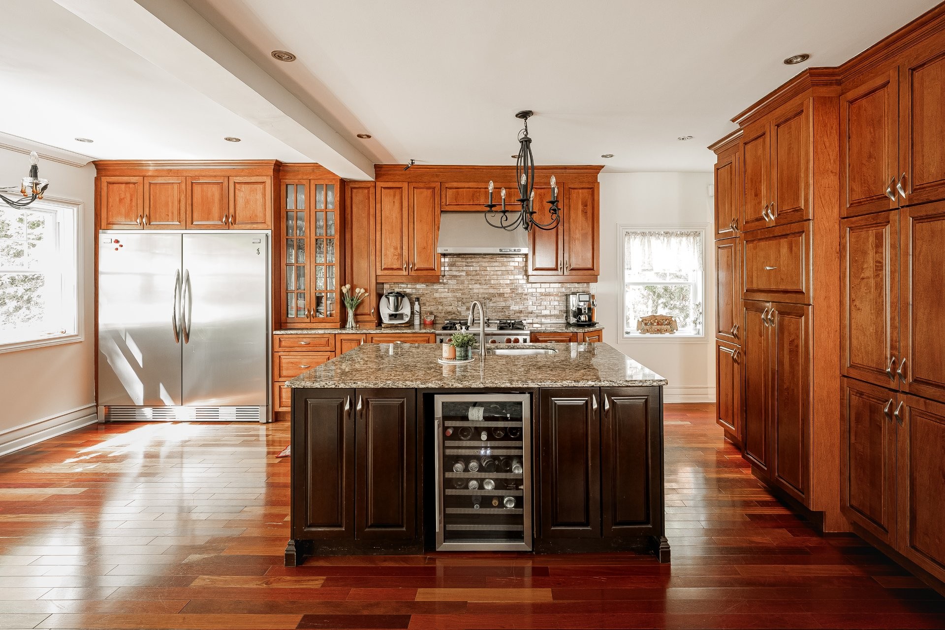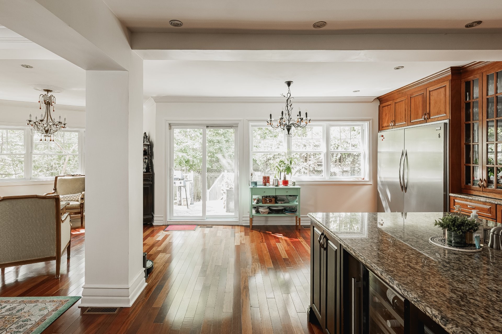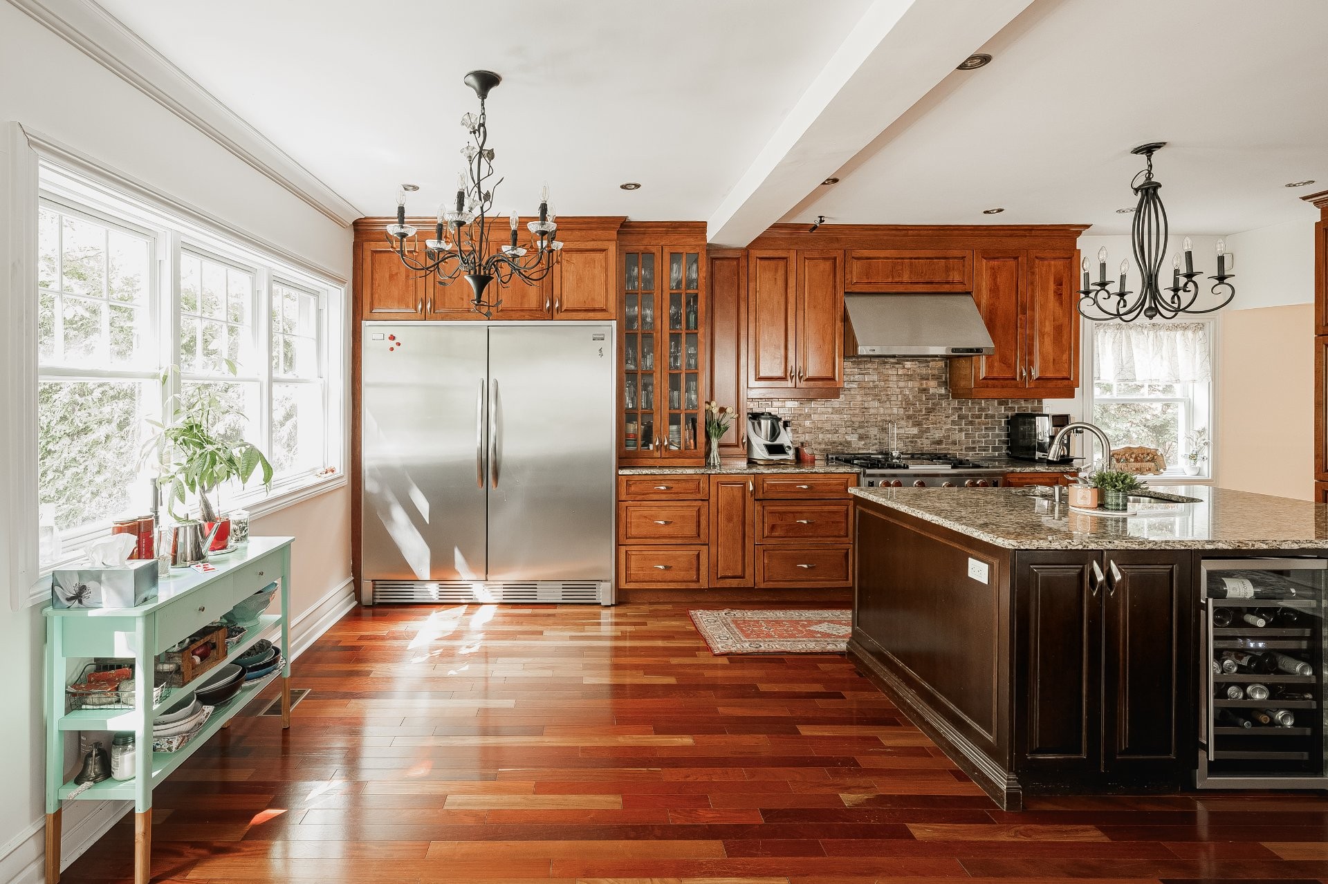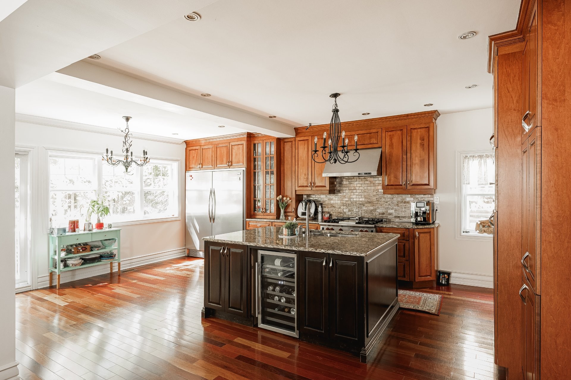 L'intérieur offre un agencement lumineux et ouvert avec planchers de jatoba et grandes fenêtres. La cuisine haut de gamme comprend des armoires en bois franc, des comptoirs en granit, un grand îlot central et des électroménagers de qualité supérieure : cuisinière à gaz Wolf avec grill intégré, réfrigérateur/congélateur surdimensionné, lave-vaisselle, cellier, évier double -- parfait pour cuisiner, recevoir et créer des souvenirs.