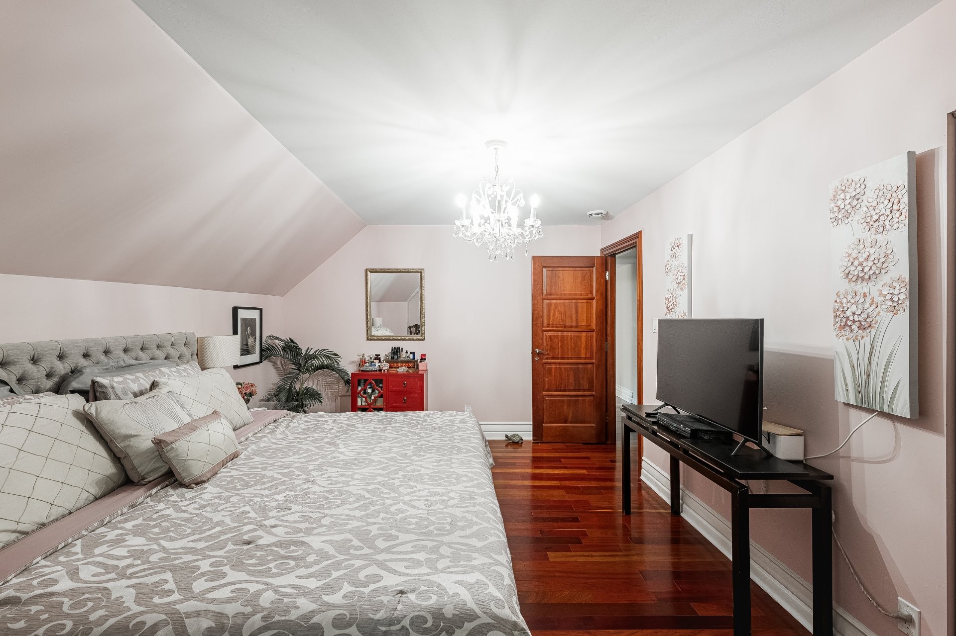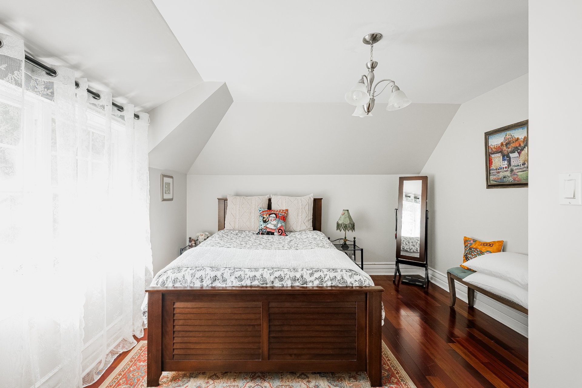 À l'étage se trouvent quatre grandes chambres et deux salles de bains. Le rez-de-chaussée offre une cinquième pièce servant de bureau ou de chambre d'invités. Le sous-sol comprend deux chambres supplémentaires, une grande salle familiale avec foyer au gaz, une salle de jeux ou de sport, ainsi qu'une salle de bain complète. Deux systèmes à air pulsé et deux thermopompes centrales permettent un confort optimal par zones.