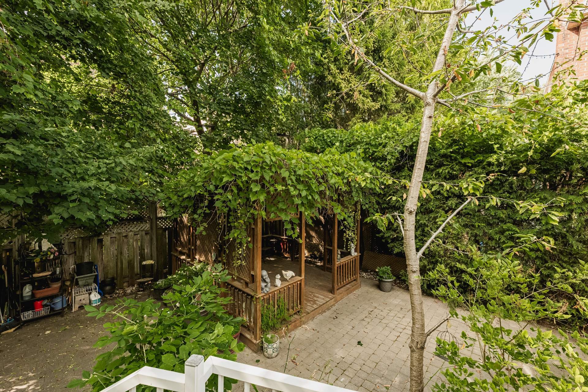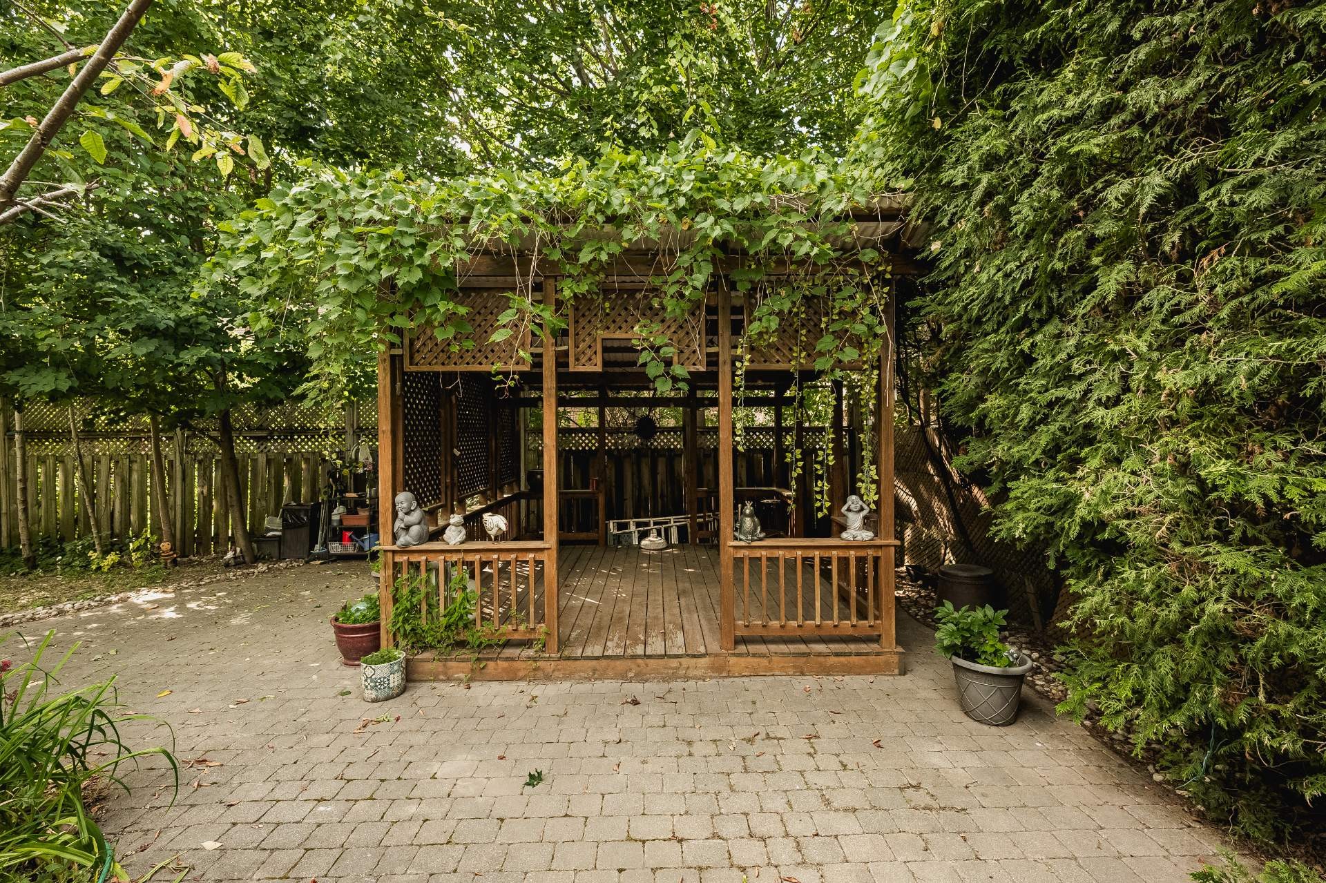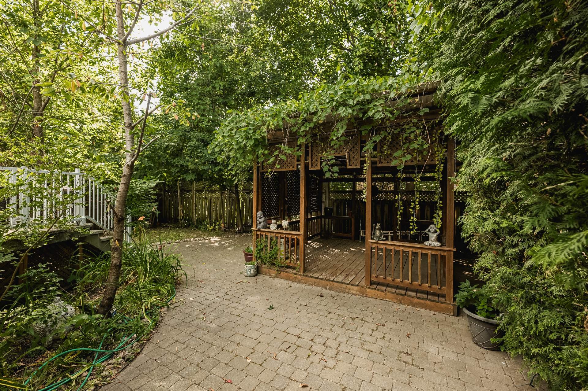 À l'extérieur, un véritable havre de paix : patio en pierre, arbres matures, et gazebo sur mesure pour profiter des repas en plein air, barbecues estivaux ou moments de détente à l'ombre.