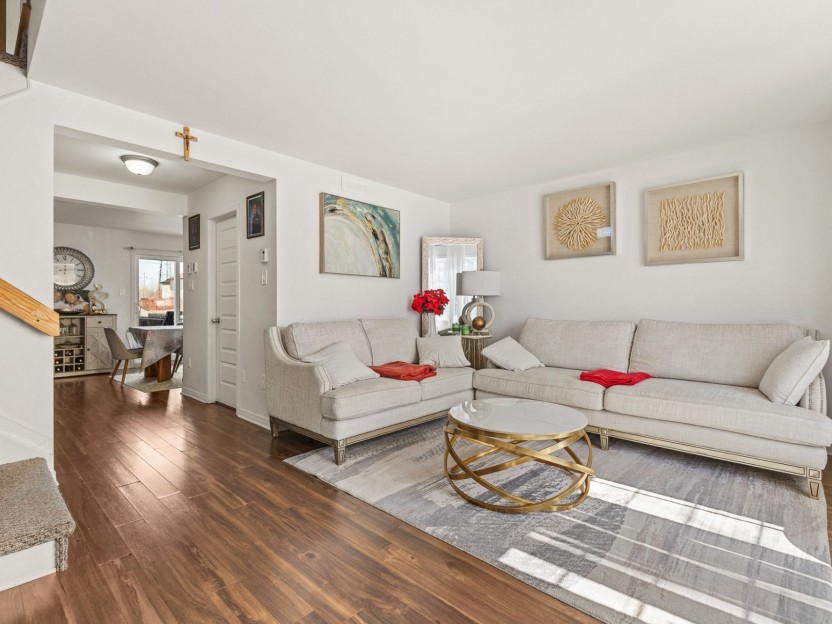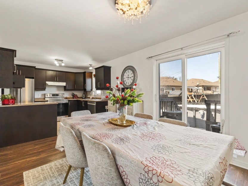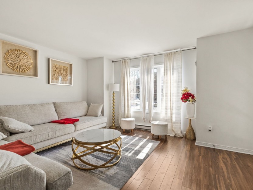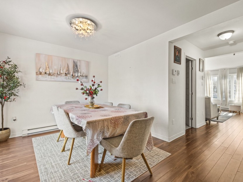 Le condo propose une aire de vie à aire ouverte et lumineuse. La cuisine en longueur offre une généreuse surface de comptoir et beaucoup d'espace de rangement, idéale pour le quotidien. Elle s'ouvre harmonieusement sur la salle à manger et le salon, ce dernier étant agrémenté d'une porte-patio donnant accès à un balcon privé, parfait pour profiter des beaux jours.