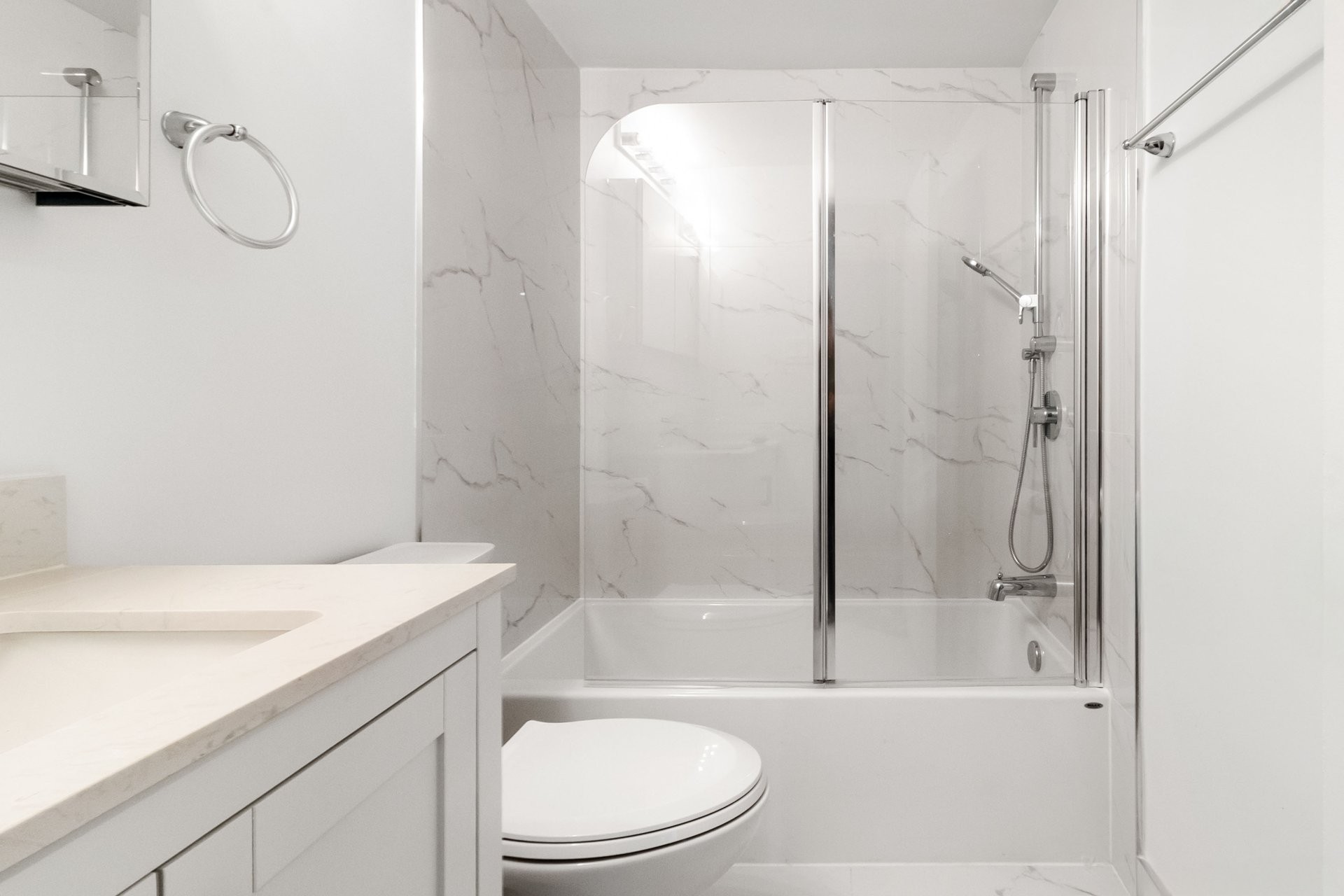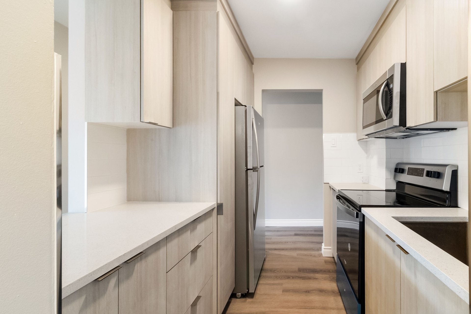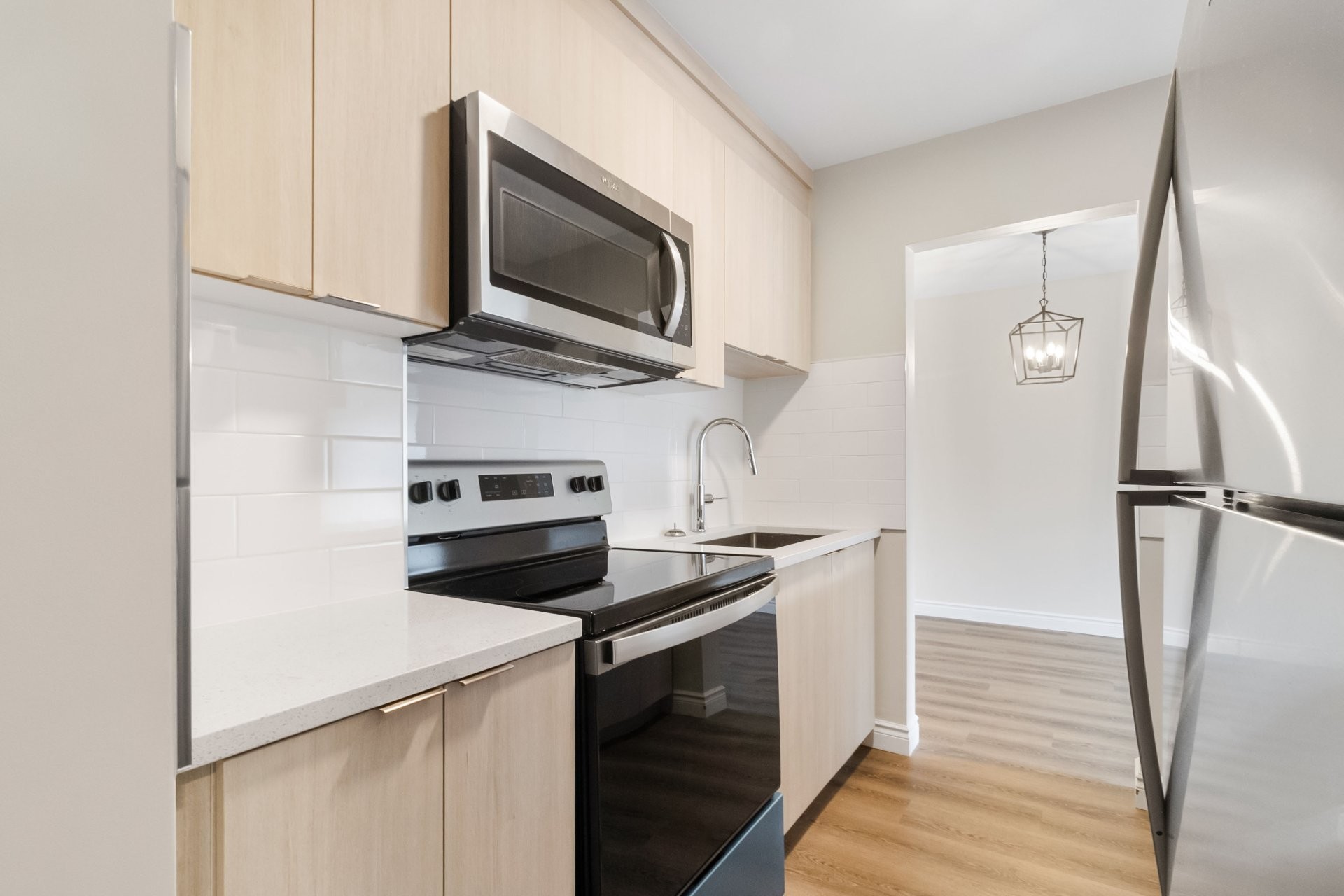 Les appartements récemment rénovés disposent d'un aménagement à aire ouverte, d'une cuisine élégante avec des comptoirs en quartz et d'une salle de bain moderne avec beaucoup de rangement. Les unités sont équipées d'un réfrigérateur, d'une cuisinière, d'un micro-ondes, de stores et air climatisé, et comprennent le chauffage, l'électricité et l'eau chaude.