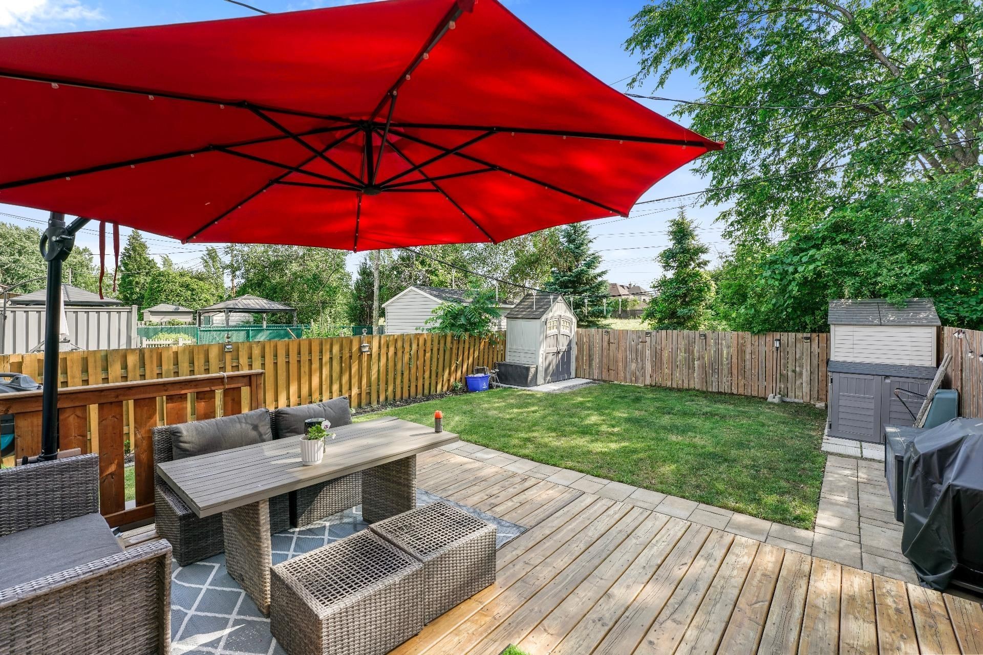 Profitez de l'extérieur grâce à une cour arrière privée dotée d'une terrasse en bois et de deux cabanons. Emplacement idéal, à proximité du centre commercial Fairview, des parcs, des écoles, des commerces, du transport en commun et de la nouvelle station REM -- pour un quotidien pratique et accessible.