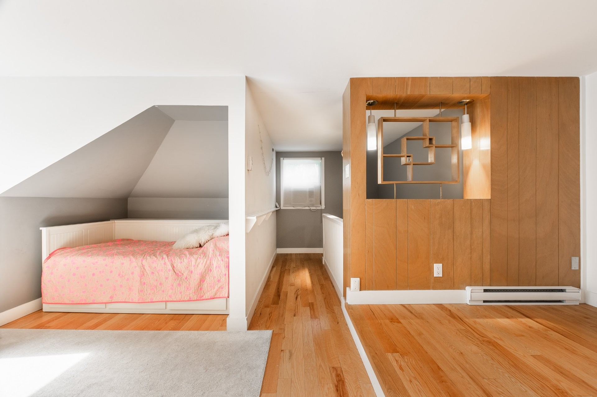 À l'étage : suite privée avec chambre, salle de bain attenante et espace polyvalent (actuellement utilisé comme chambre supplémentaire).