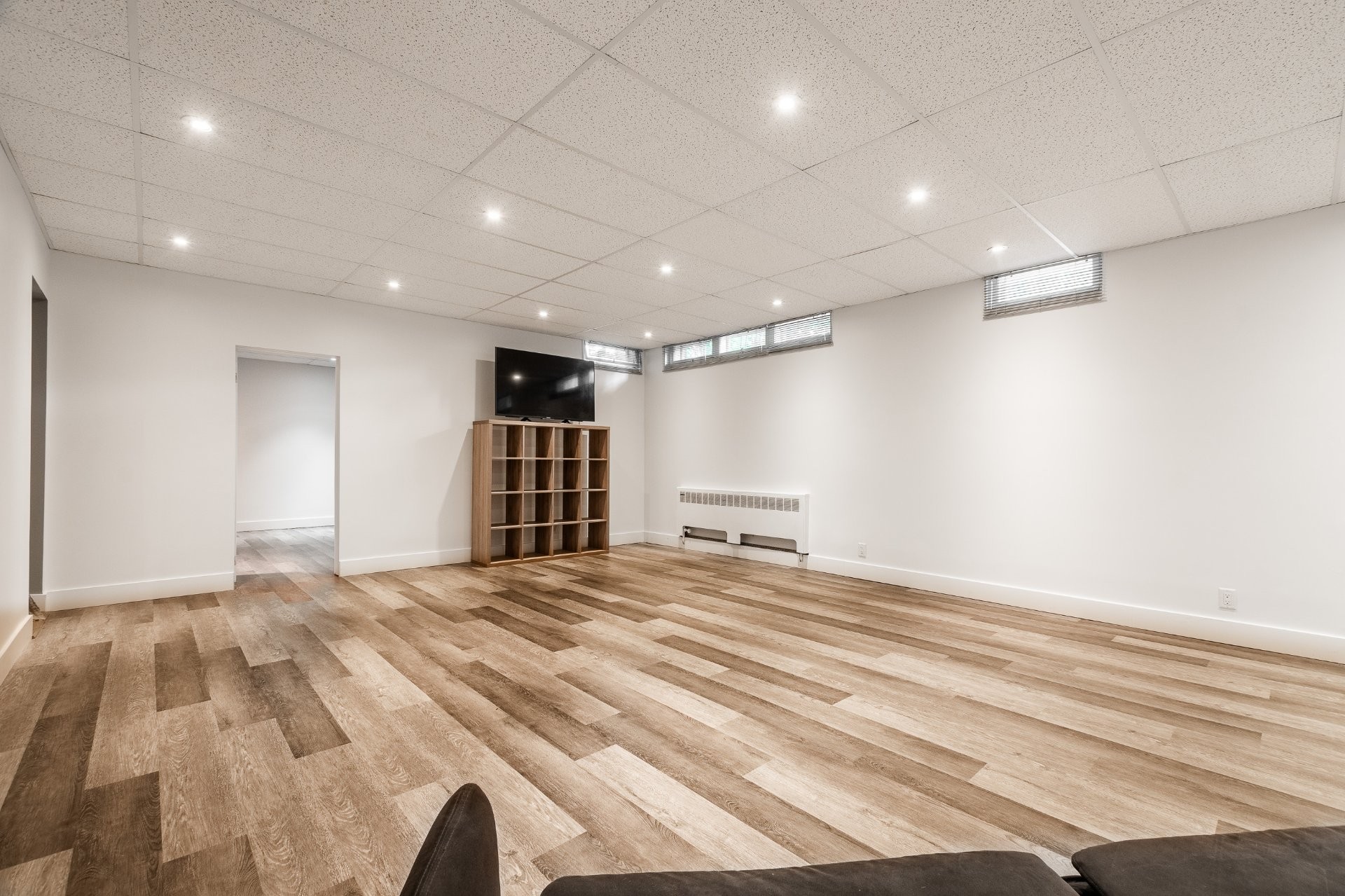 Au sous-sol : deux grandes chambres, salle de bain complète, salon rénové avec plancher neuf, ainsi qu'une spacieuse buanderie.