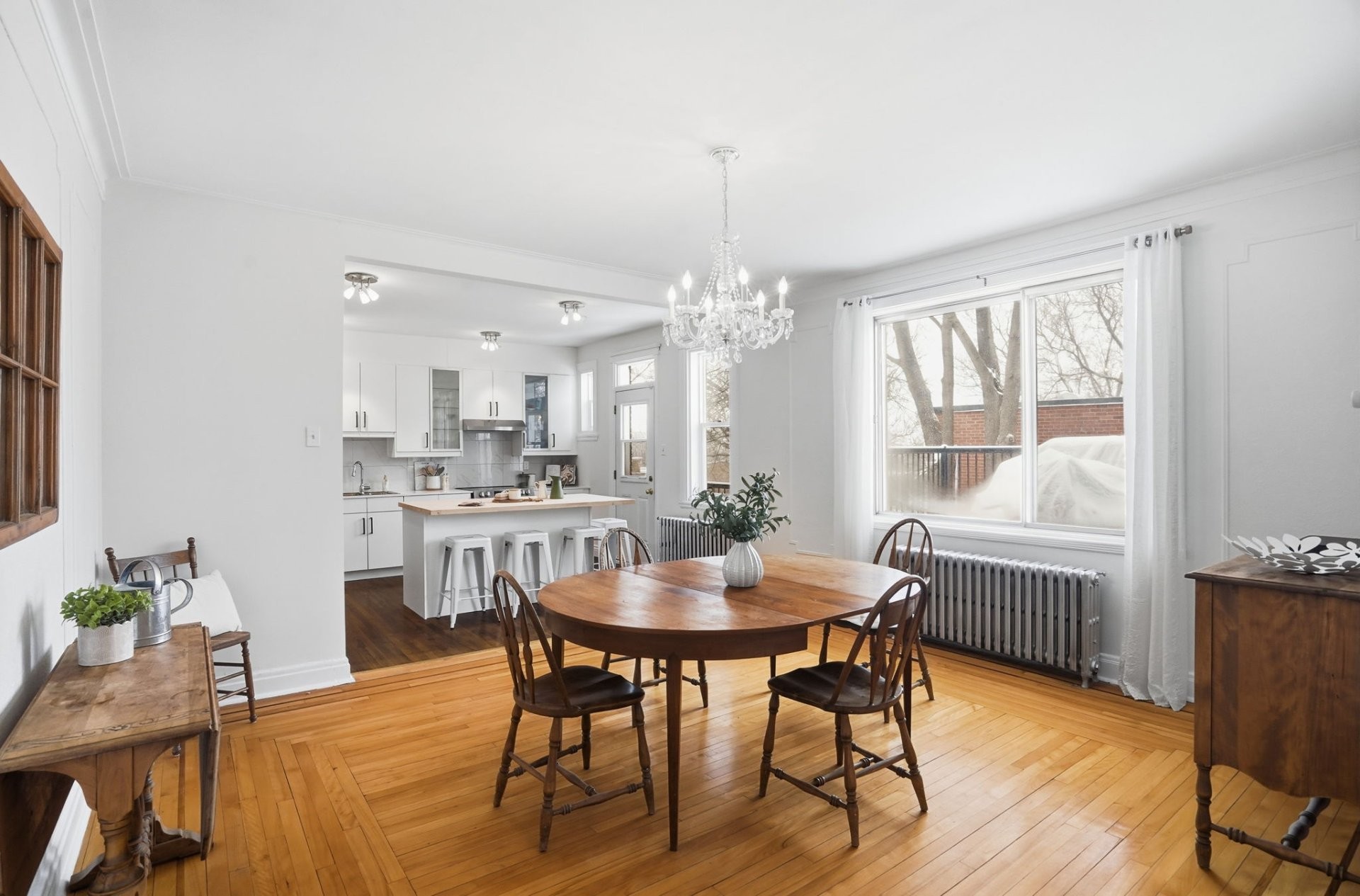 La résidence se distingue par ses plafonds de 10 pieds, ses planchers de bois franc et ses grandes fenêtres qui inondent les pièces de lumière naturelle. La cuisine moderne offre de nombreuses armoires et un vaste espace de comptoir, et s'ouvre sur une salle à manger spacieuse, idéale pour recevoir et pour la vie quotidienne. Le salon chaleureux constitue un espace confortable pour les rassemblements en famille ou les soirées de détente.