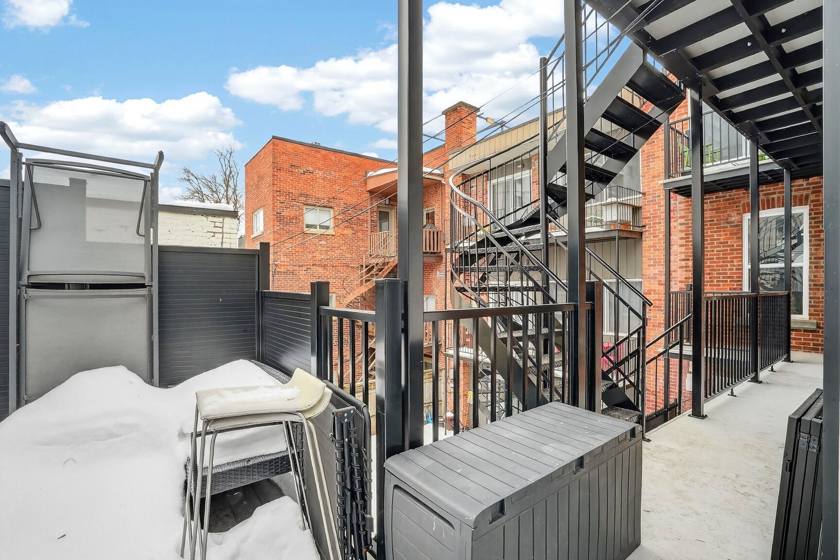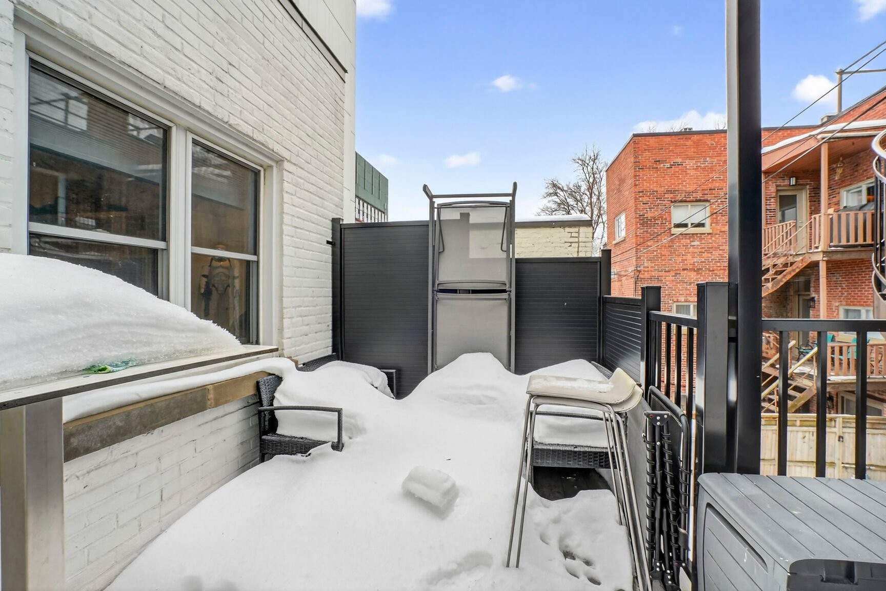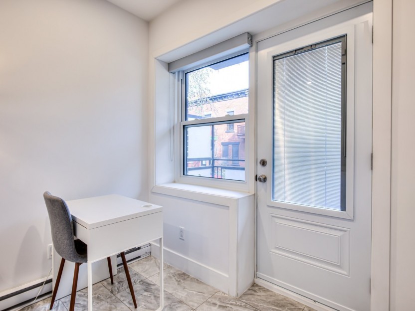 À l'extérieur, une petite terrasse privative vient parfaire l'ensemble -- un luxe discret en plein coeur du Plateau, idéal pour profiter des beaux jours dans une ambiance intime.