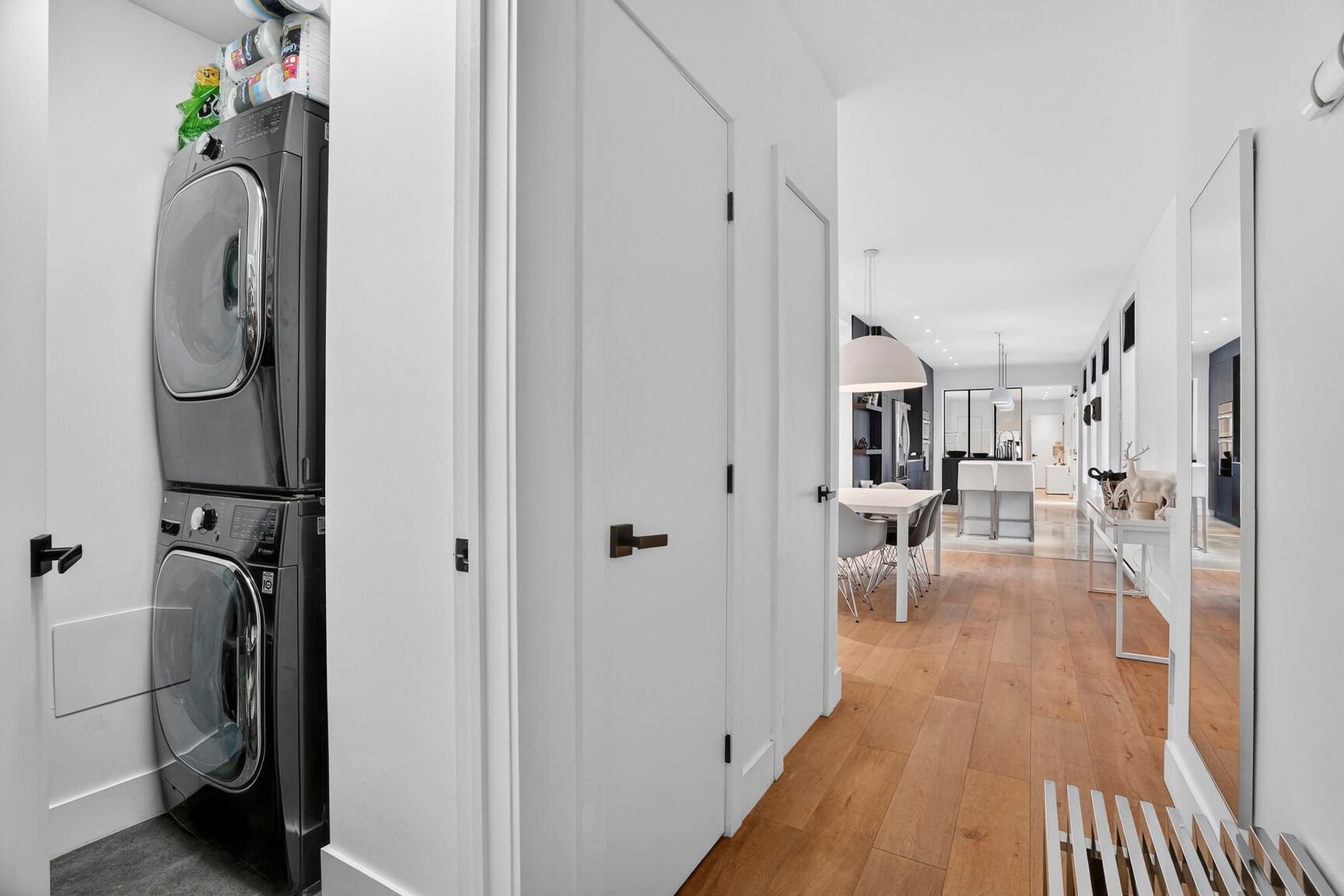 Occupant le 2e étage d'un immeuble intimiste de cinq unités, cette résidence entièrement rénovée incarne une approche raffinée du confort urbain. Chaque intervention a été réalisée avec des matériaux de grande qualité, dans un esprit sobre, durable et résolument contemporain.