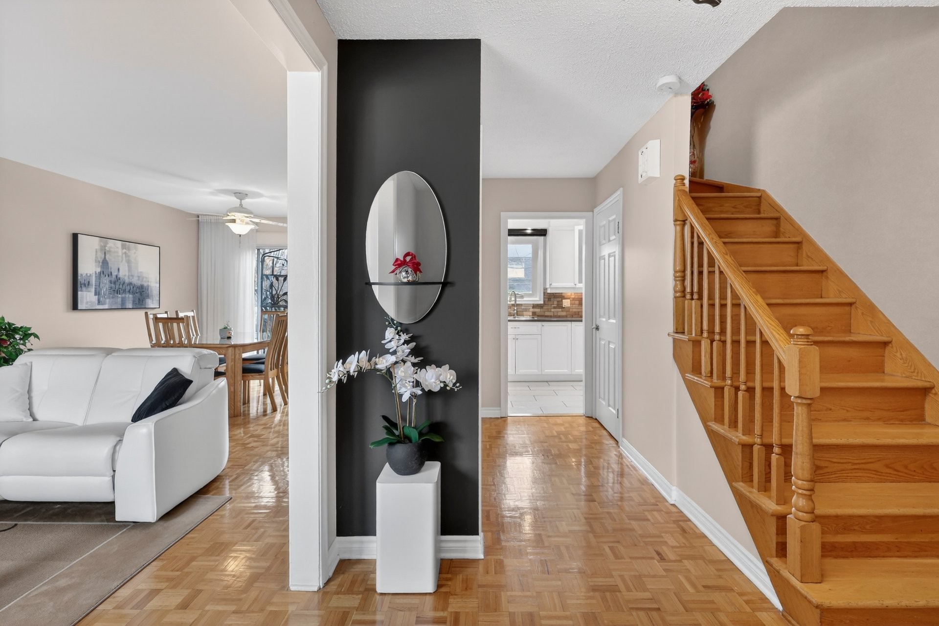 Maison de ville en rangée, unité de coin clé en main, située dans un secteur résidentiel paisible et familial. Propriété d'un seul propriétaire, soigneusement entretenue, offrant 3 chambres spacieuses et plusieurs mises à jour au fil des ans, dont la cuisine et les salles de bains. Sous-sol entièrement aménagé avec salle familiale, espace de rangement avec buanderie, grande chambre froide et entrée extérieure. Cour privée bordée de haies. Aucun frais de copropriété. Près des transports en commun (bus, train, métro). Confort, emplacement et valeur réunis. À voir!