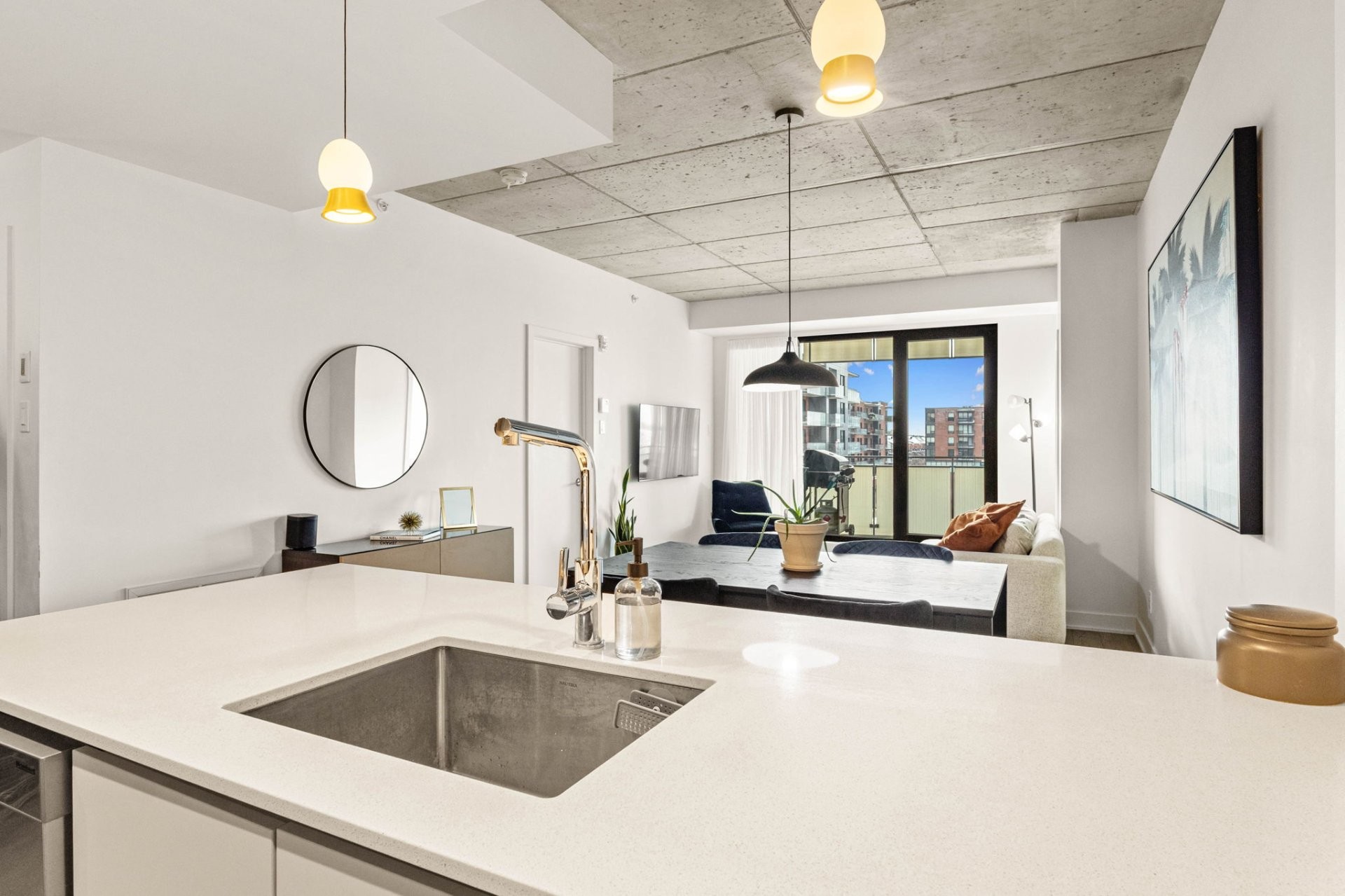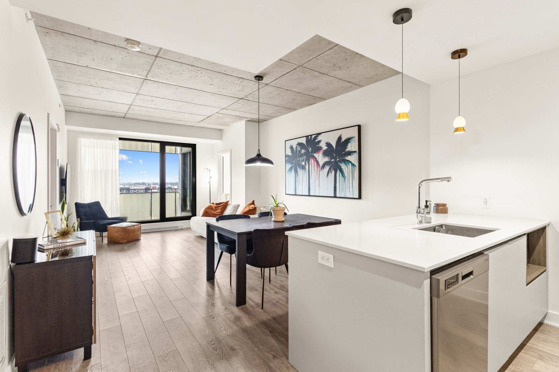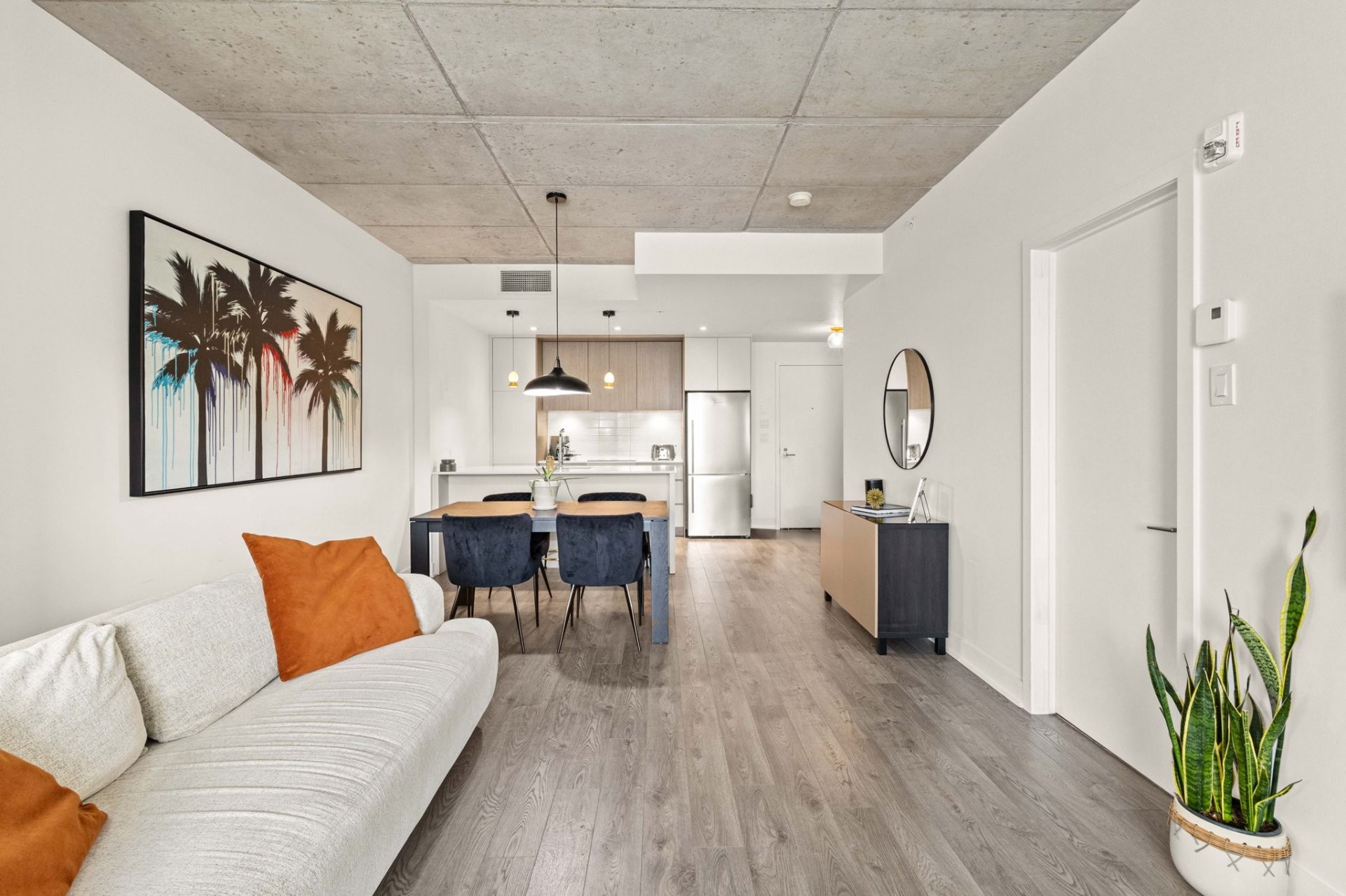 Condo moderne de deux chambres et deux salles de bain situé dans le quartier recherché de Bois-Franc. Cette unité lumineuse propose une aire de vie à concept ouvert, de grandes fenêtres pleine hauteur et une cuisine contemporaine avec électroménagers de qualité. La chambre principale spacieuse comprend un walk-in et une salle de bain attenante privée, suivie d'une deuxième chambre, d'une salle de bain complète et d'un espace buanderie. Le condo inclut un stationnement intérieur ainsi qu'un espace de rangement. L'immeuble offre ascenseurs, salle d'entraînement, salon des résidents et terrasse sur le toit. Emplacement exceptionnel!