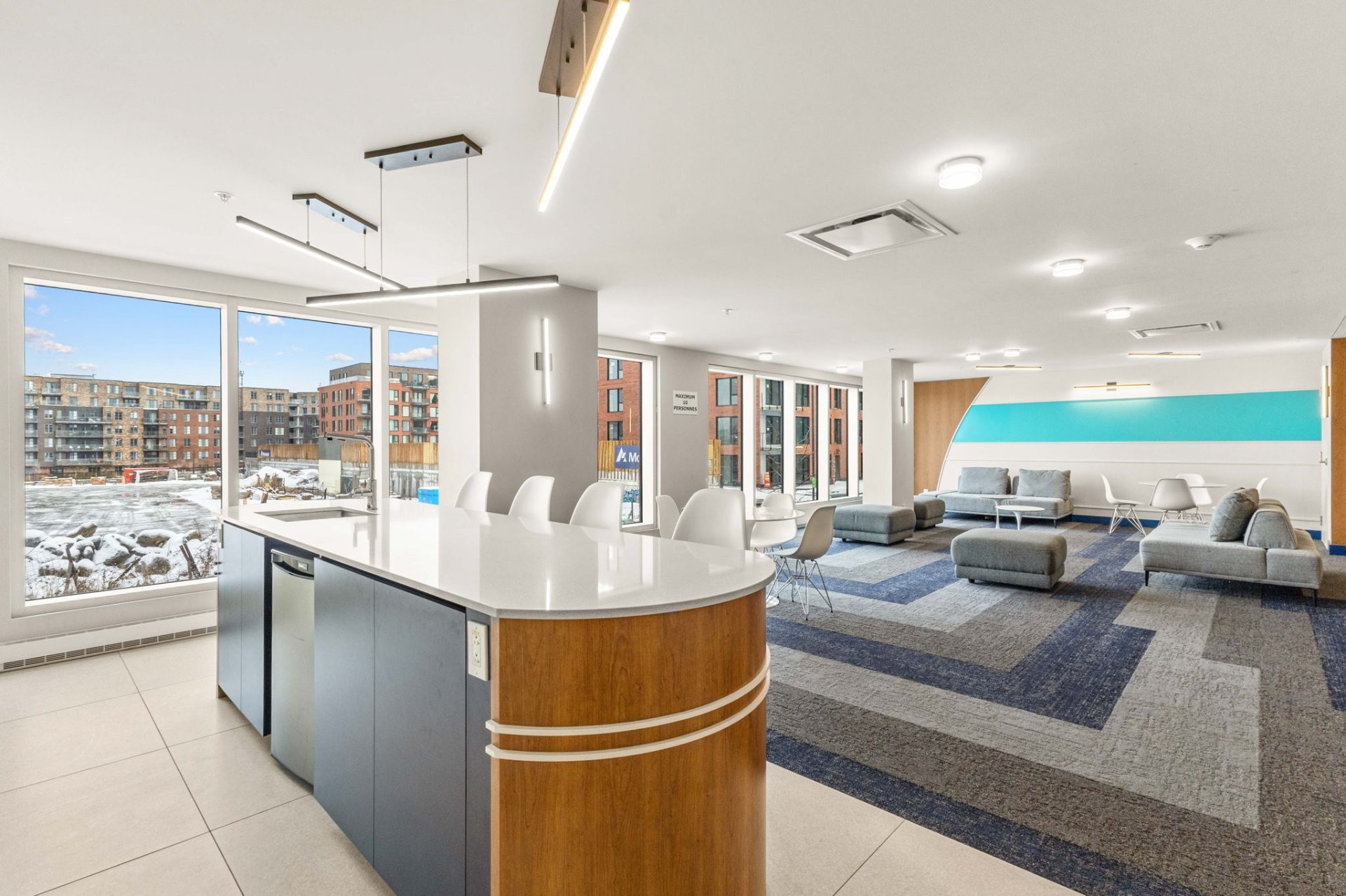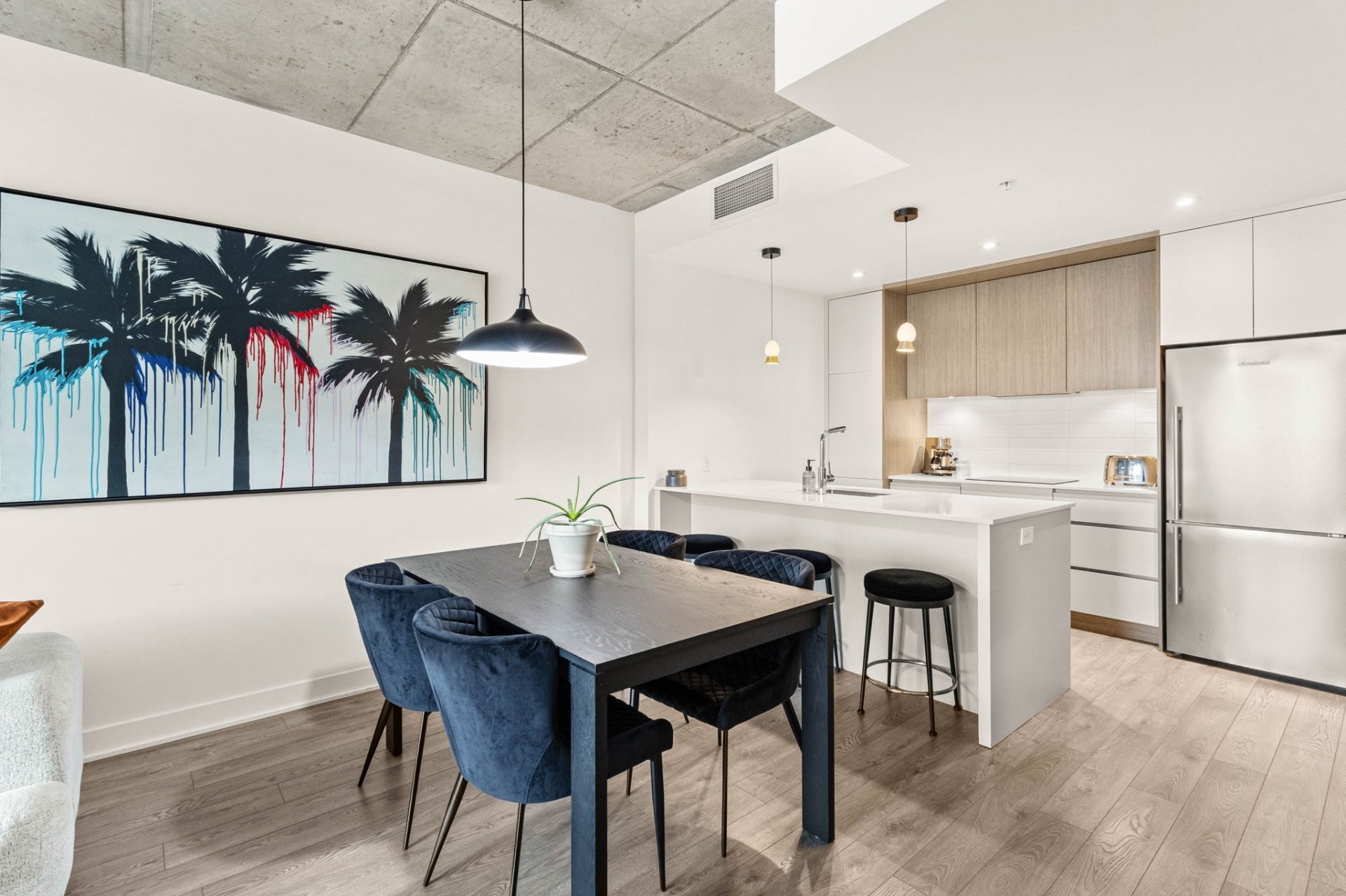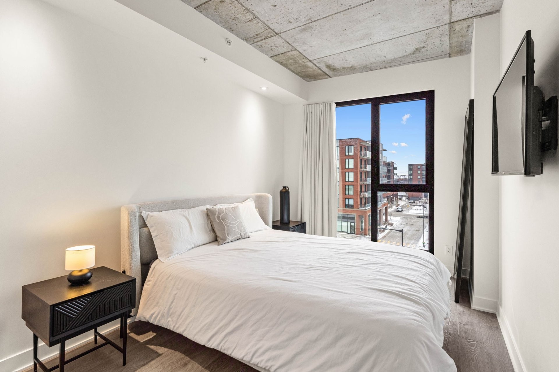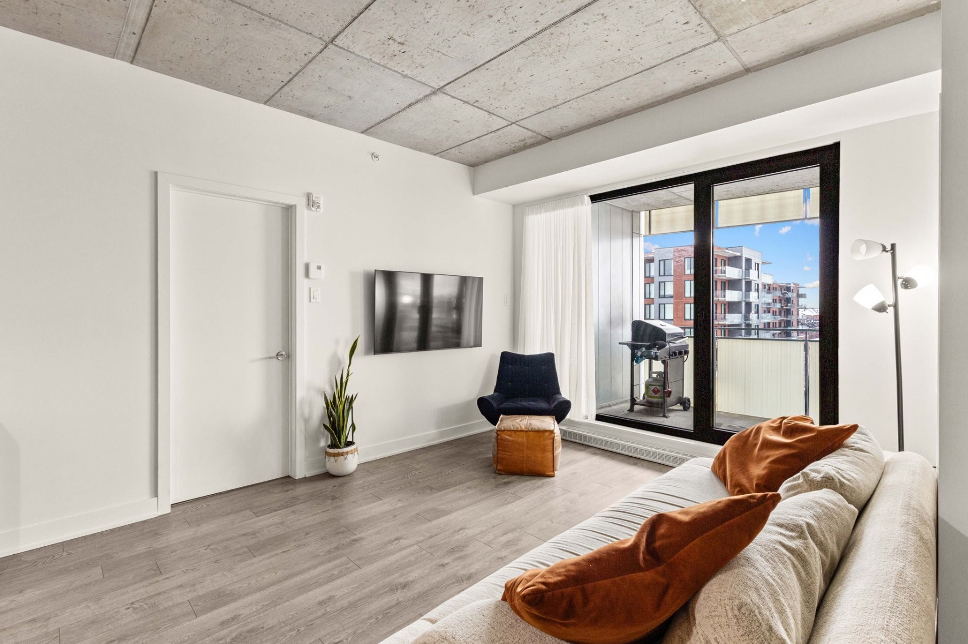 Condo moderne de deux chambres et deux salles de bain situé dans le quartier recherché de Bois-Franc. Cette unité lumineuse propose une aire de vie à concept ouvert, de grandes fenêtres pleine hauteur et une cuisine contemporaine avec électroménagers de qualité. La chambre principale spacieuse comprend un walk-in et une salle de bain attenante privée, suivie d'une deuxième chambre, d'une salle de bain complète et d'un espace buanderie. Le condo inclut un stationnement intérieur ainsi qu'un espace de rangement. L'immeuble offre ascenseurs, salle d'entraînement, salon des résidents et terrasse sur le toit. Emplacement exceptionnel!
