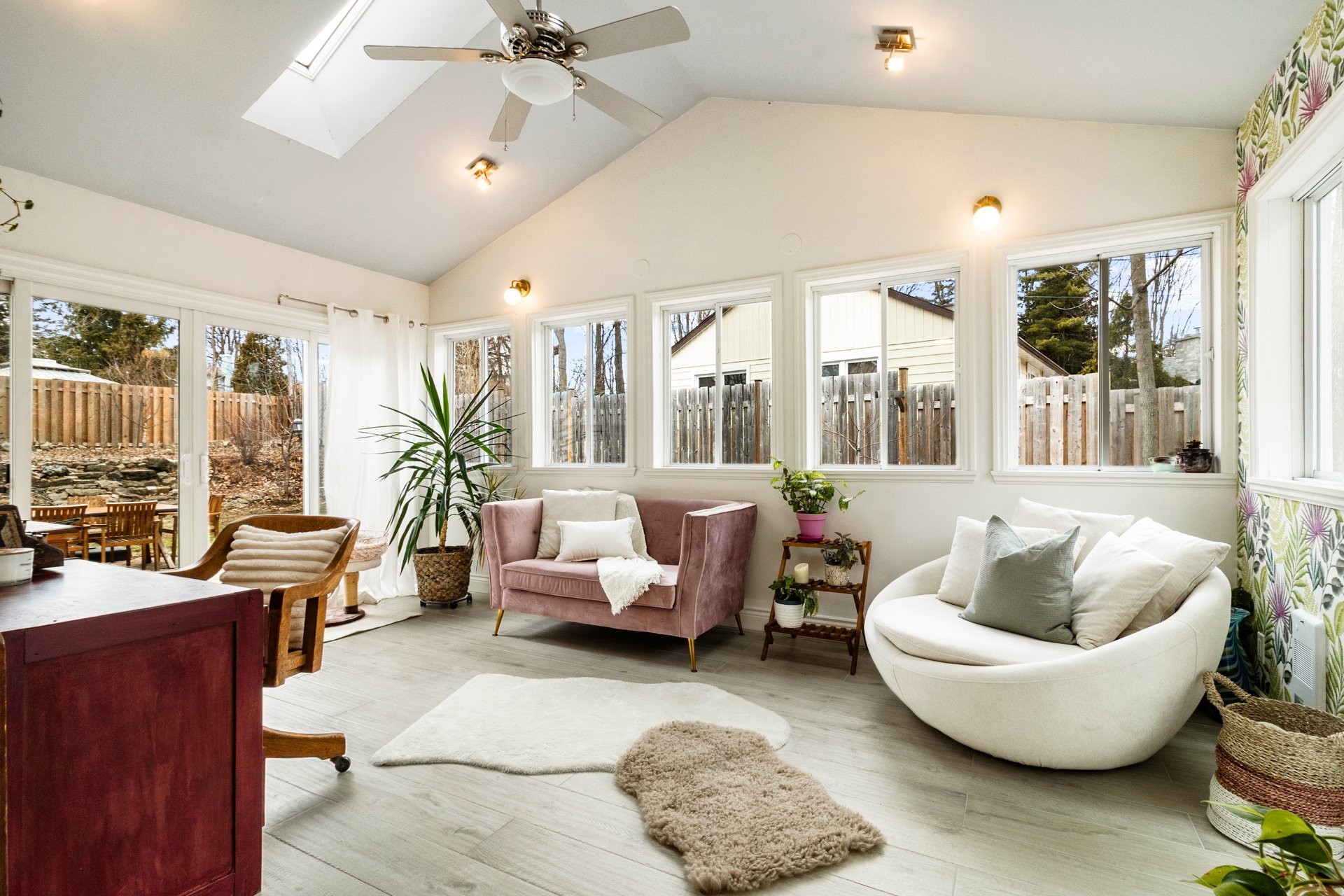 L'un des points forts de cette propriété est son agrandissement arrière, qui abrite une vaste verrière baignée de lumière naturelle et un plancher chauffant. Cet espace polyvalent est parfait pour savourer un café le matin, se détendre ou recevoir, tout en profitant de la vue sur l'extérieur.