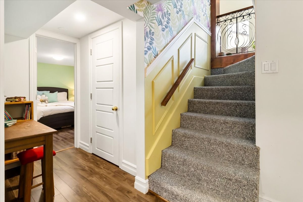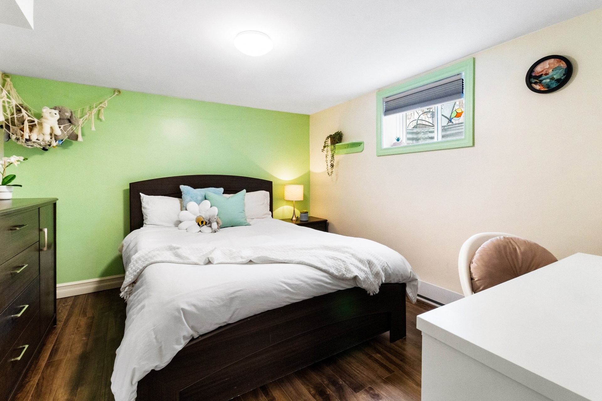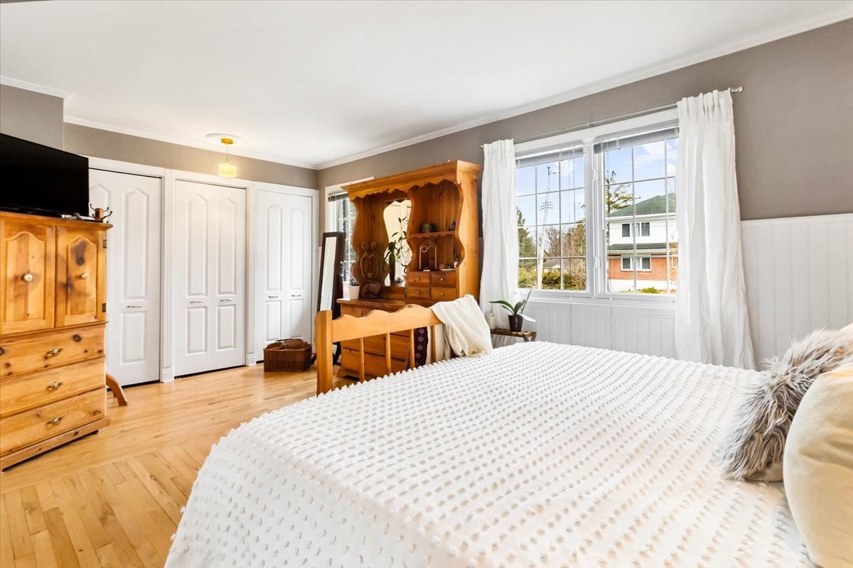 La propriété comprend quatre chambres à coucher, dont deux à l'étage et deux au sous-sol entièrement aménagé, ainsi que deux salles de bain complètes, répondant parfaitement aux besoins des familles de toutes tailles. La chambre principale, spacieuse et invitante, constitue un véritable havre de paix, tandis que les autres chambres offrent une grande flexibilité pour les enfants, les invités ou l'aménagement d'un bureau à domicile.
