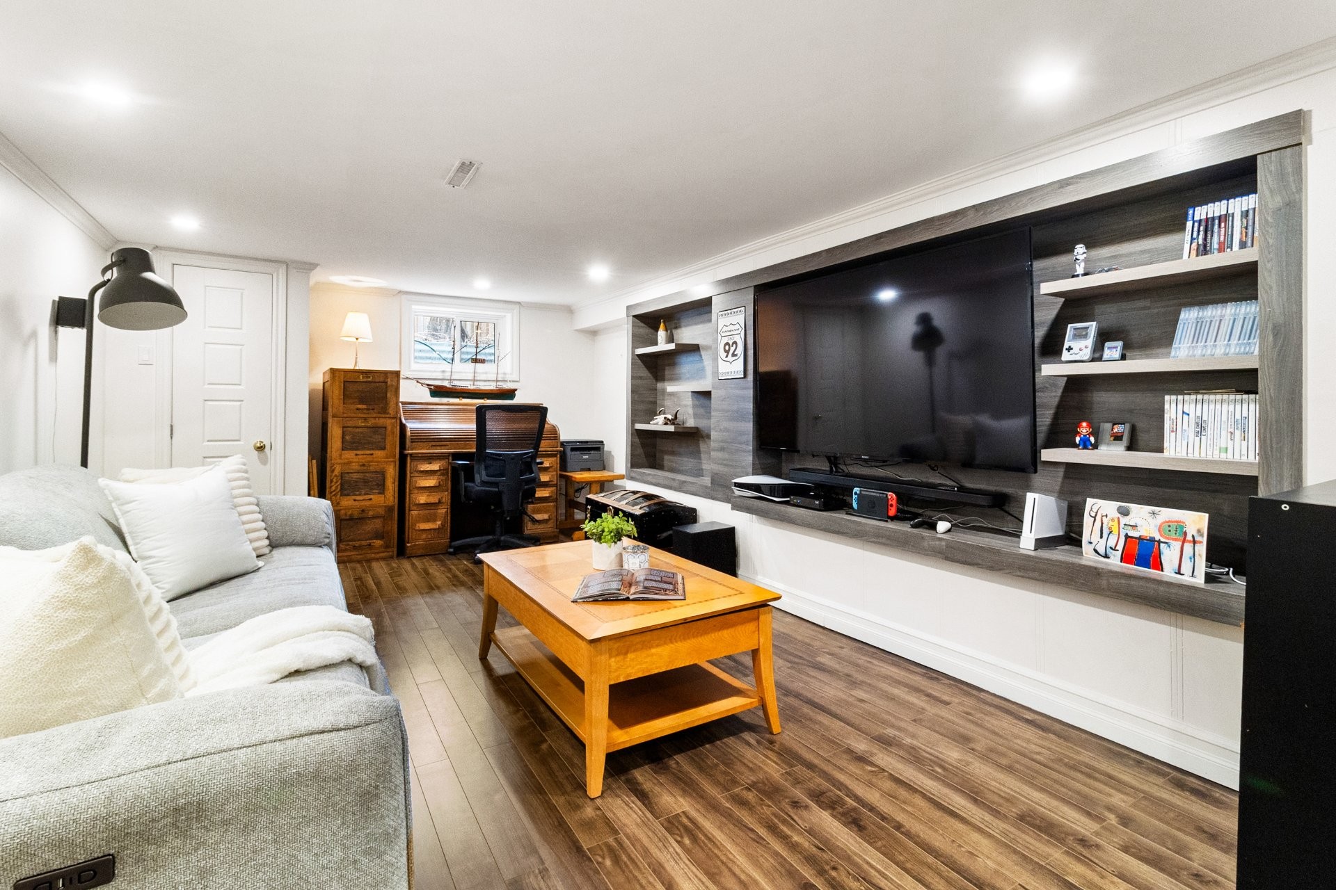 Le sous-sol entièrement aménagé ajoute un espace de vie précieux, incluant deux chambres, salle de bains complète et une salle familiale confortable, idéale pour les soirées cinéma, une salle de jeux ou un espace détente.