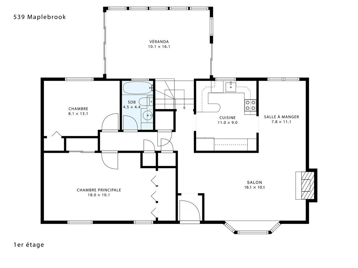 | Chambre à coucher principale | Rez-de-chaussée | 18.3x10.10 P | Bois | |