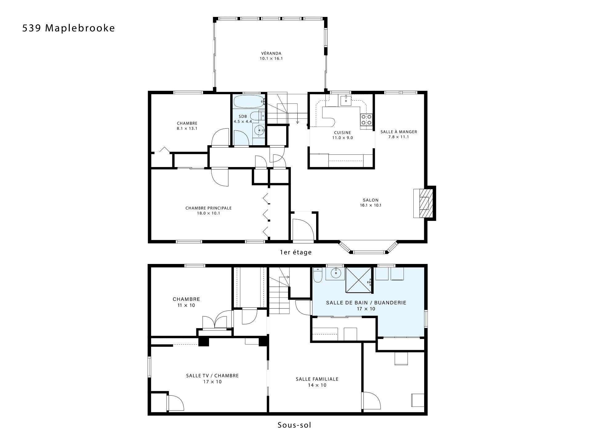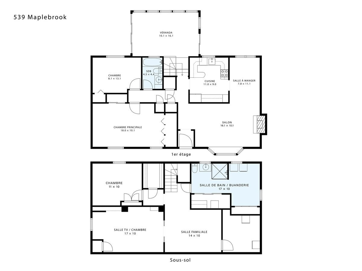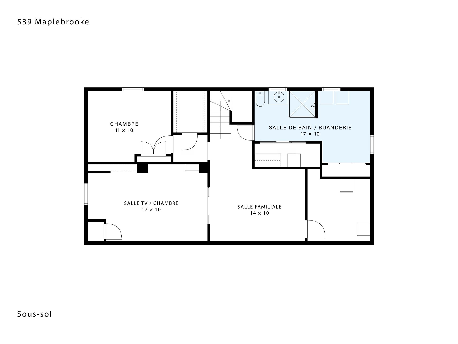 | Salle de bain | Sous-sol | 17x10.3 P | Céramique | salle de lavage |