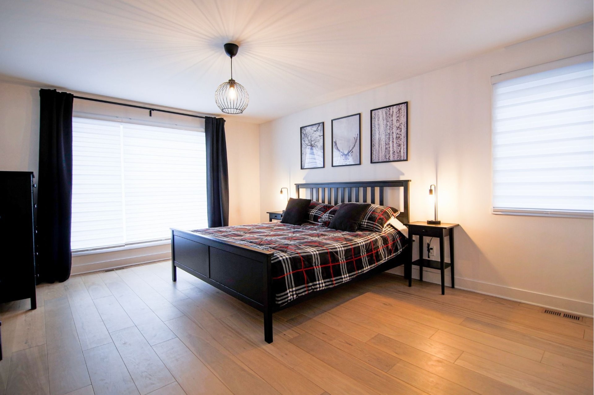 Vivez le charme du chalet urbain, entouré d'une nature luxuriante! Cette immense propriété nichée parmi les conifères vous offre un cadre paisible et intime, grâce à ses haies de cèdres matures. Profitez d'une piscine creusée chauffée, de sentiers boisés pour vos balades, d'un coin feu relaxant au bord d'un ruisseau et d'une maisonnette pour enfants en pleine nature. L'intérieur moderne propose un sous-sol entièrement aménagé, une terrasse en composite et des comptoirs en quartz élégants. Un grand garage et un cabanon pratique avec porte de garage complètent ce décor. Près de toutes les commodités!
