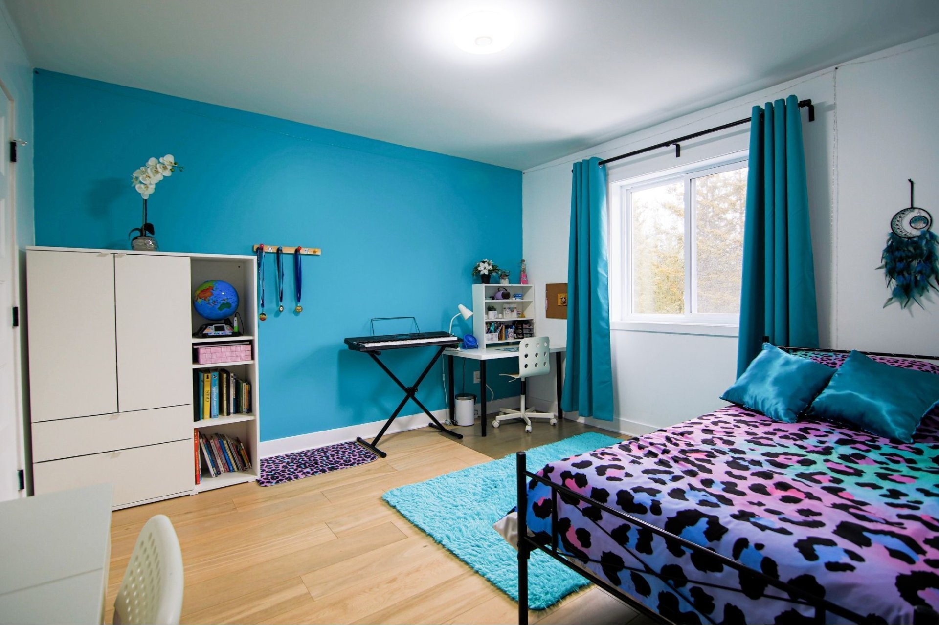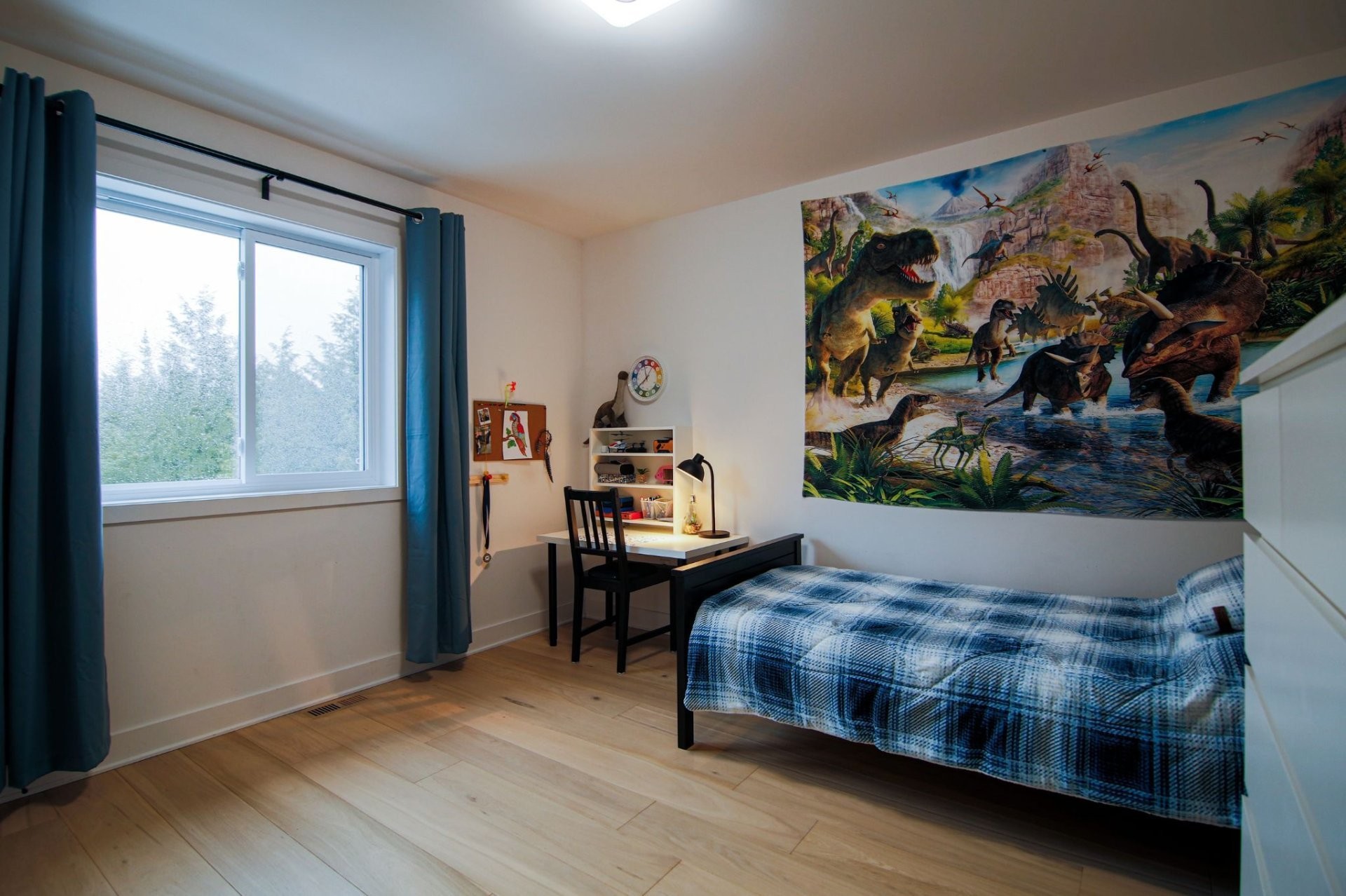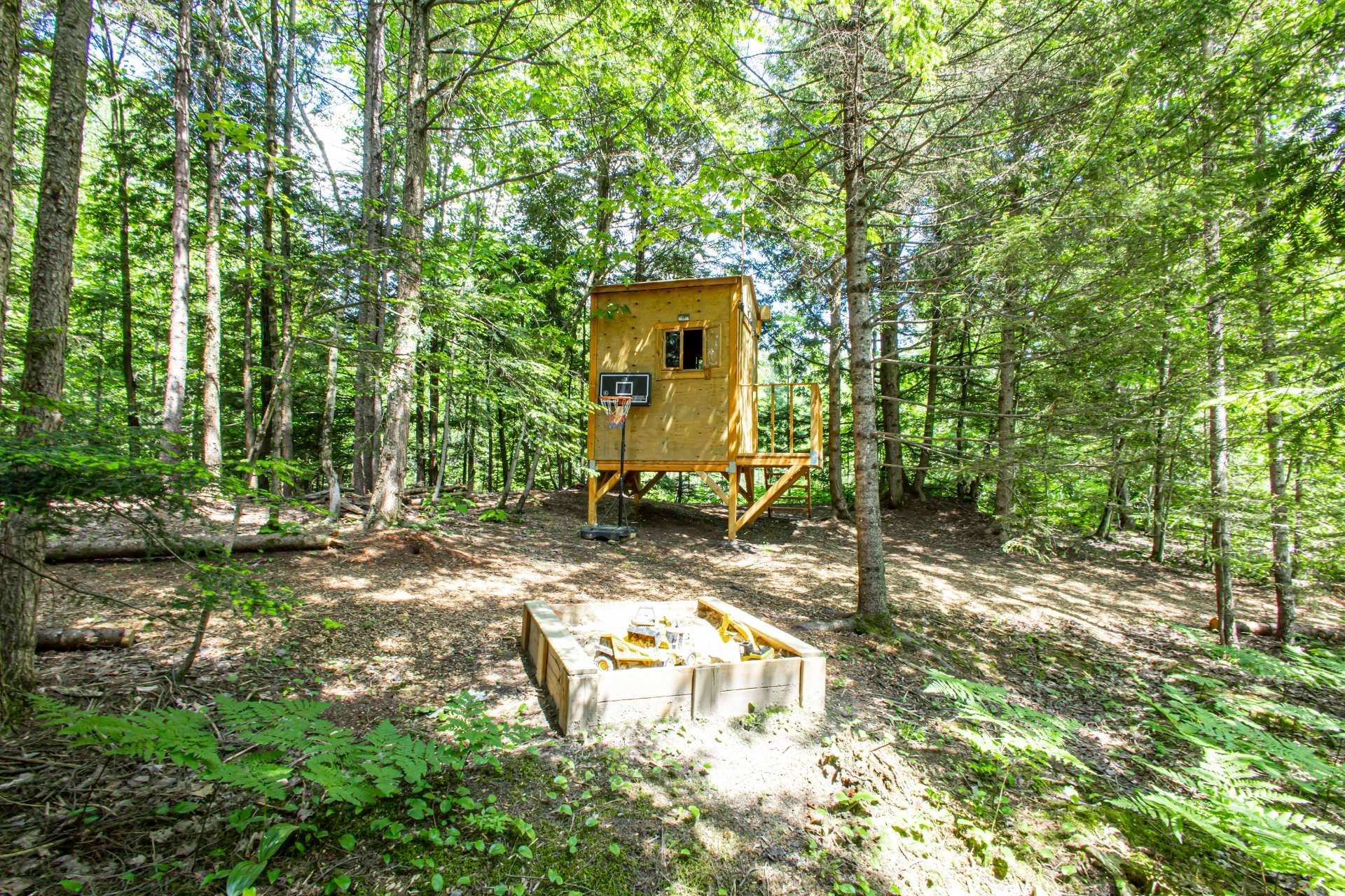 Profitez de sentiers boisés privés et d'un coin feu, parfaits pour des moments de détente en pleine nature. Une charmante maisonnette pour enfants se niche parmi les arbres, offrant un espace sécurisé et magique pour jouer en plein air. La cuisine et les salles de bains sont équipées de superbes comptoirs en quartz qui ajoutent une touche d'élégance. Des haies de cèdres assurent une intimité optimale à l'avant et sur les côtés, et un panneau de génératrice auxiliaire garantit une tranquillité d'esprit en cas de panne de courant.