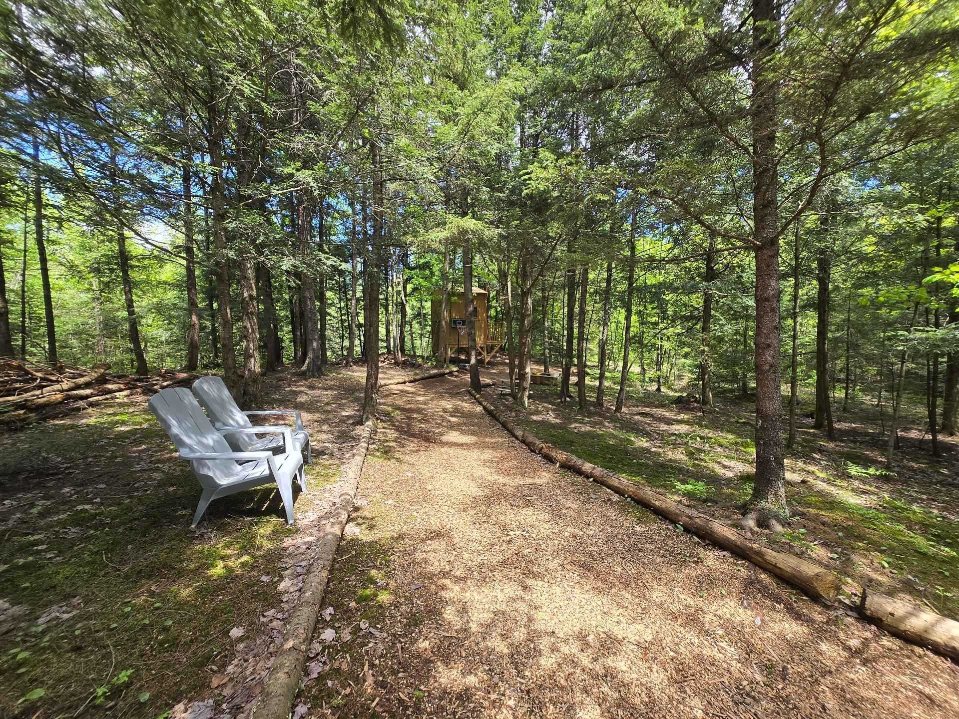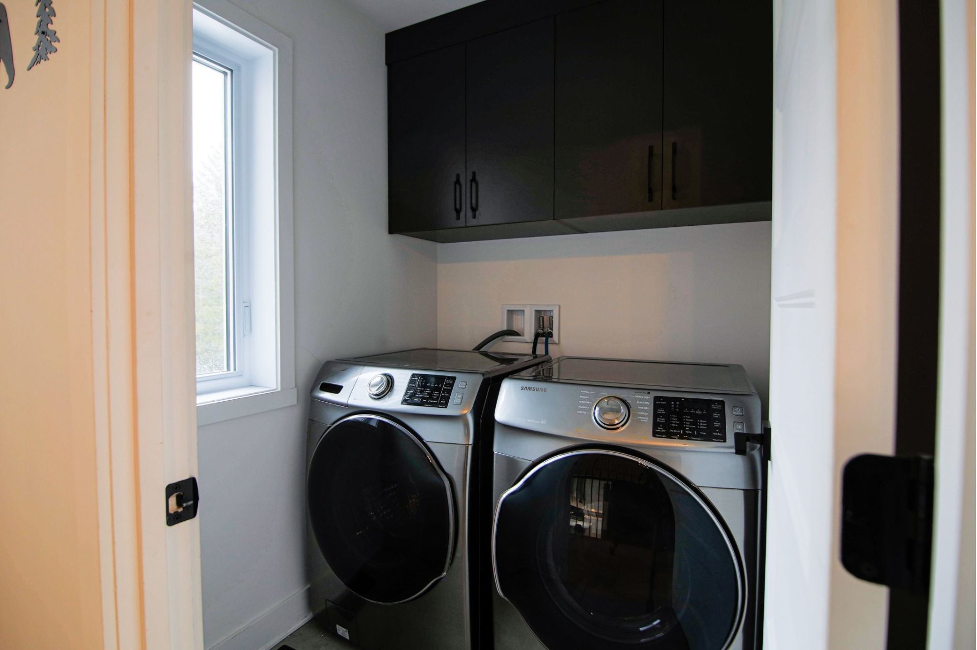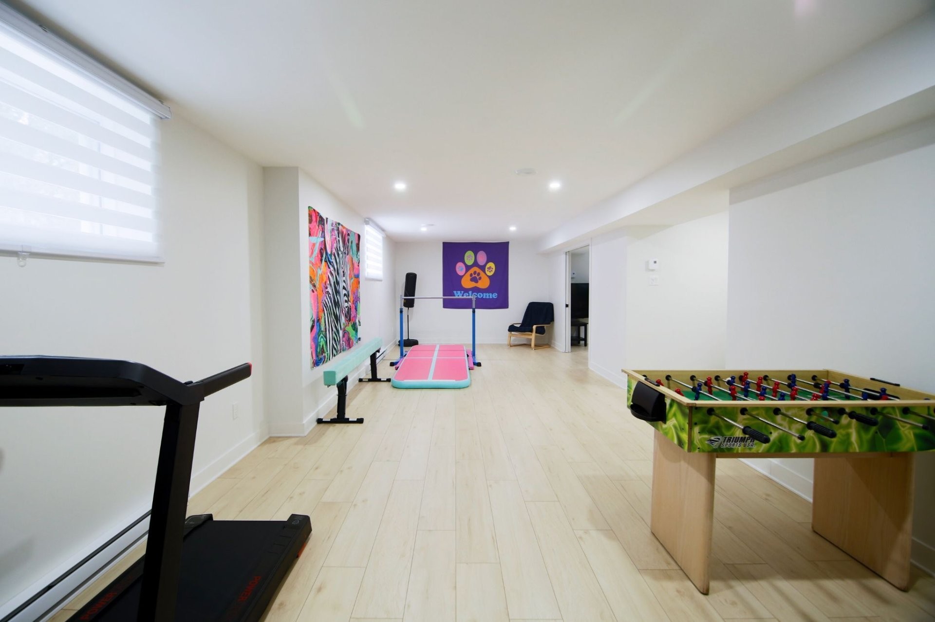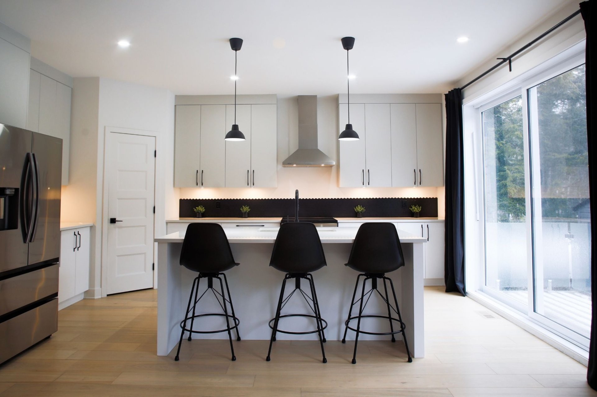 Profitez de sentiers boisés privés et d'un coin feu, parfaits pour des moments de détente en pleine nature. Une charmante maisonnette pour enfants se niche parmi les arbres, offrant un espace sécurisé et magique pour jouer en plein air. La cuisine et les salles de bains sont équipées de superbes comptoirs en quartz qui ajoutent une touche d'élégance. Des haies de cèdres assurent une intimité optimale à l'avant et sur les côtés, et un panneau de génératrice auxiliaire garantit une tranquillité d'esprit en cas de panne de courant.