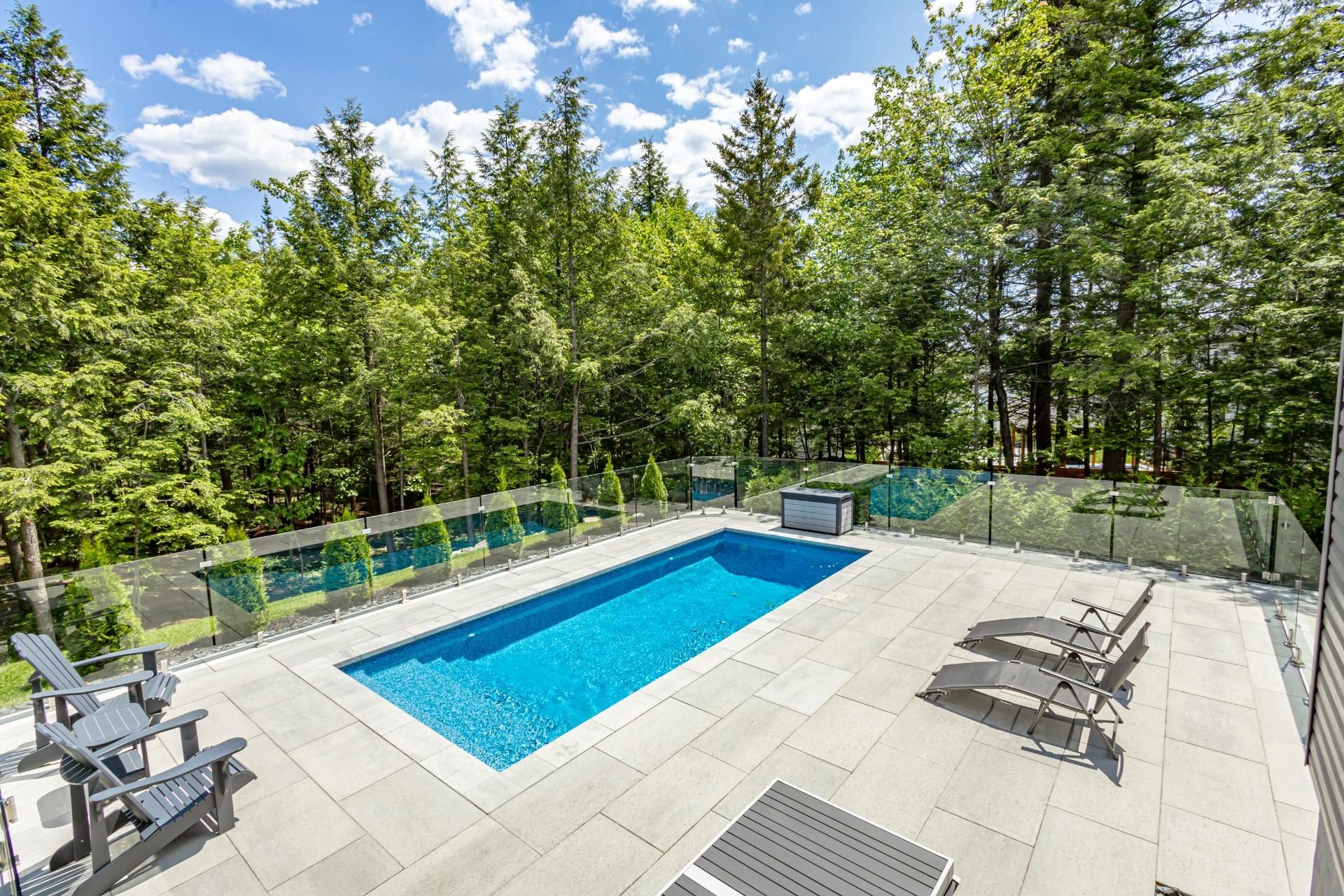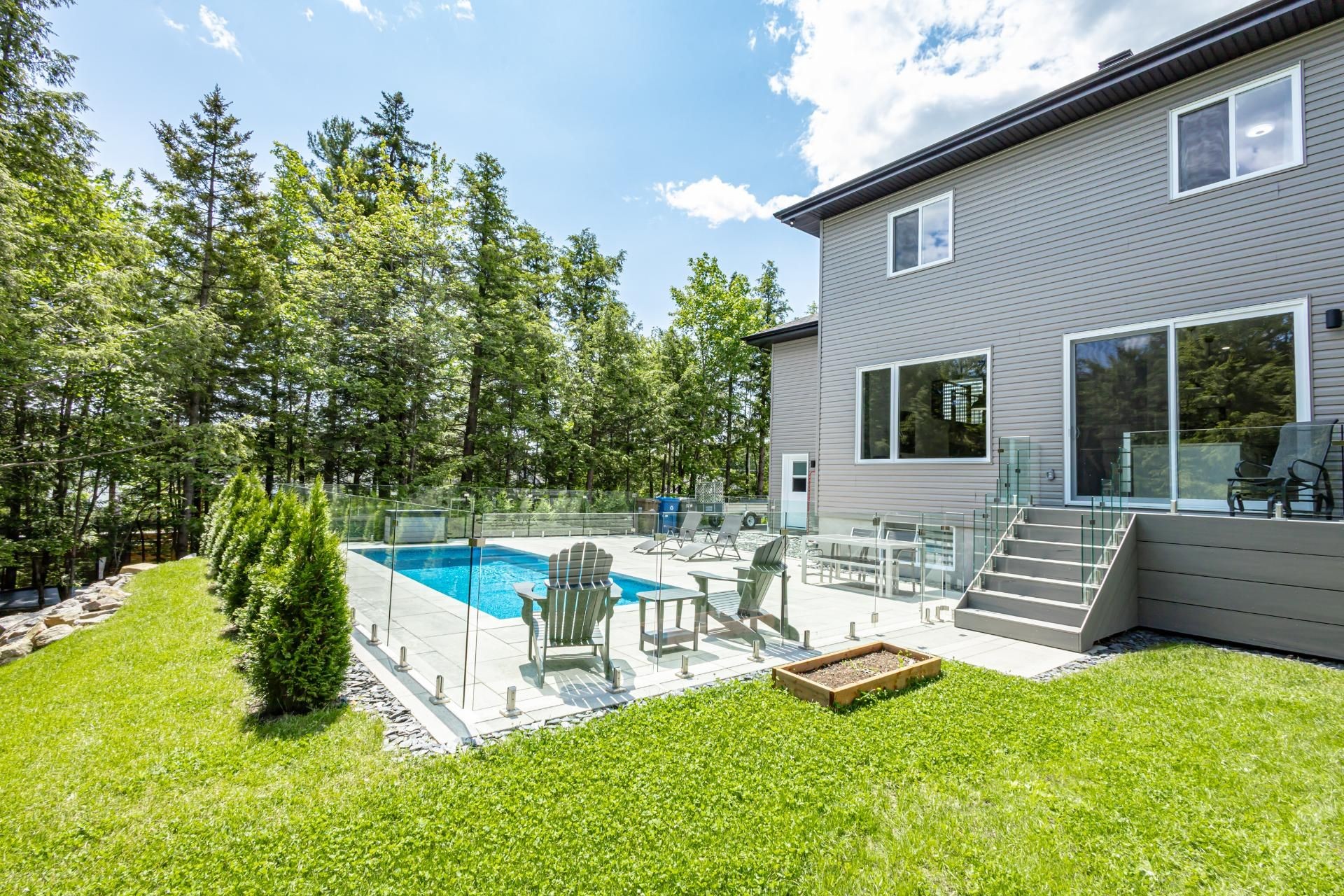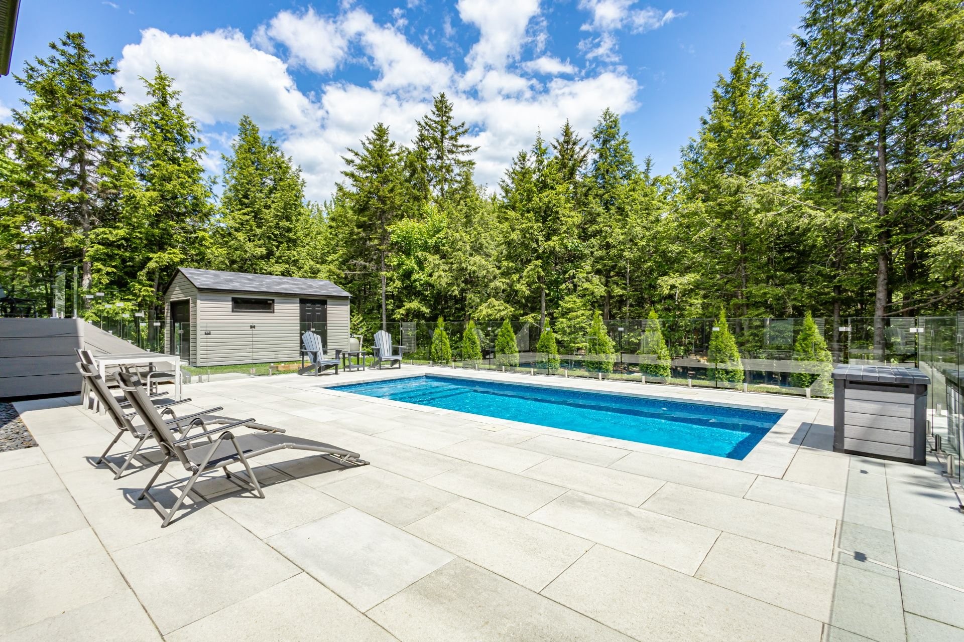 La piscine creusée chauffée est bordée de pavés élégants et d'une clôture en verre qui allie sécurité et vue dégagée. Le garage spacieux est doté d'un revêtement de sol en époxy durable et élégant, tandis qu'un cabanon pratique avec porte de garage permet un rangement facile. Le sous-sol entièrement aménagé offre un espace de vie supplémentaire, et la terrasse en composite sans entretien est idéale pour recevoir à l'extérieur.