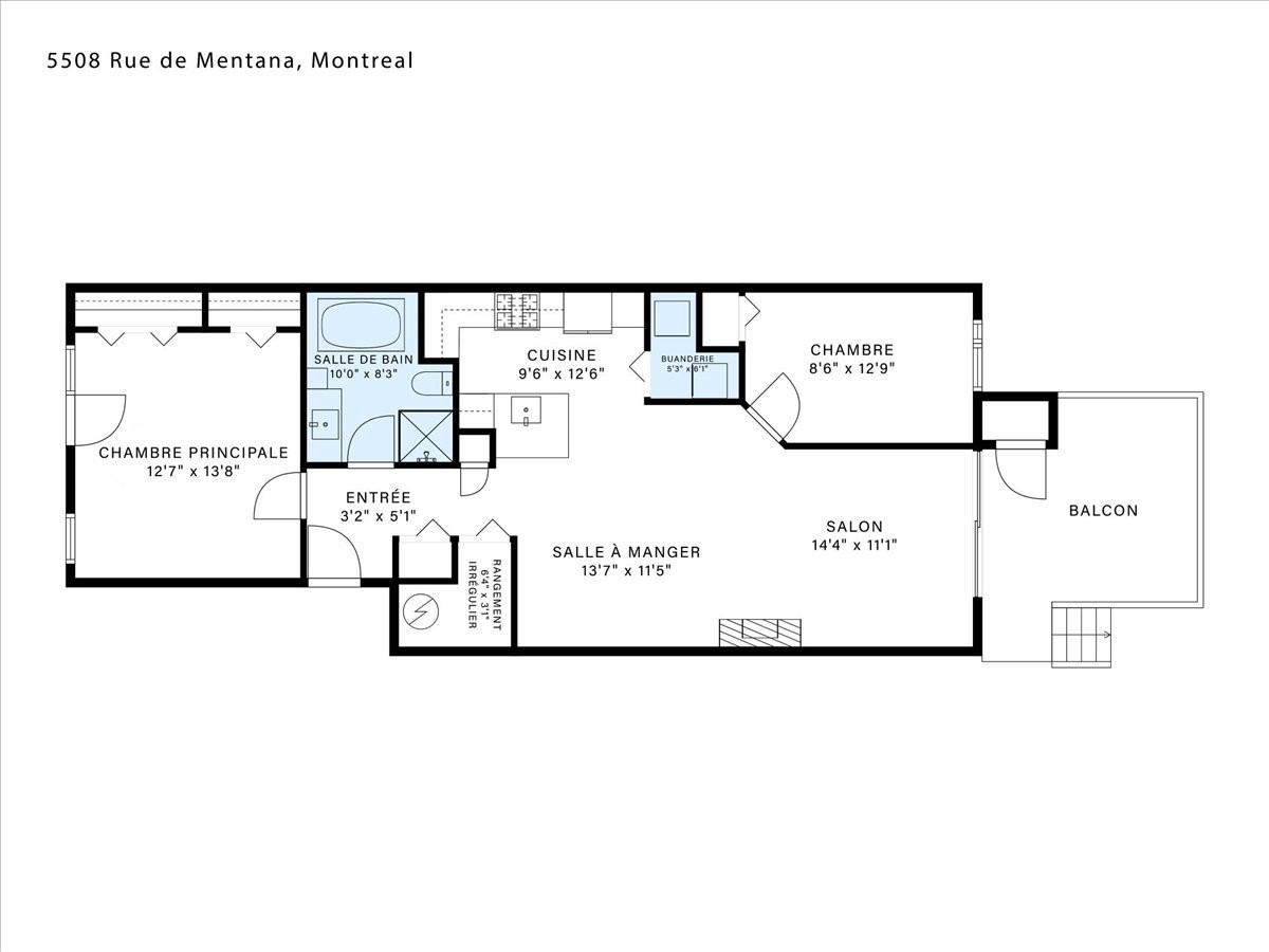| Cuisine | 3ième étage | 12.6x9.6 P | Céramique | Comptoir en béton poli |