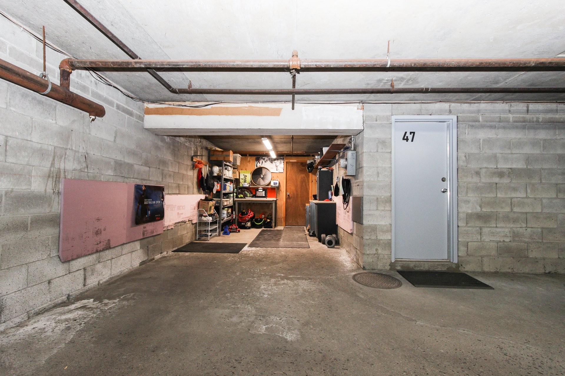 Réfrigérateur, cuisinière, laveuse, sécheuse, armoires métalliques dans le garage, chargeur pour voiture électrique