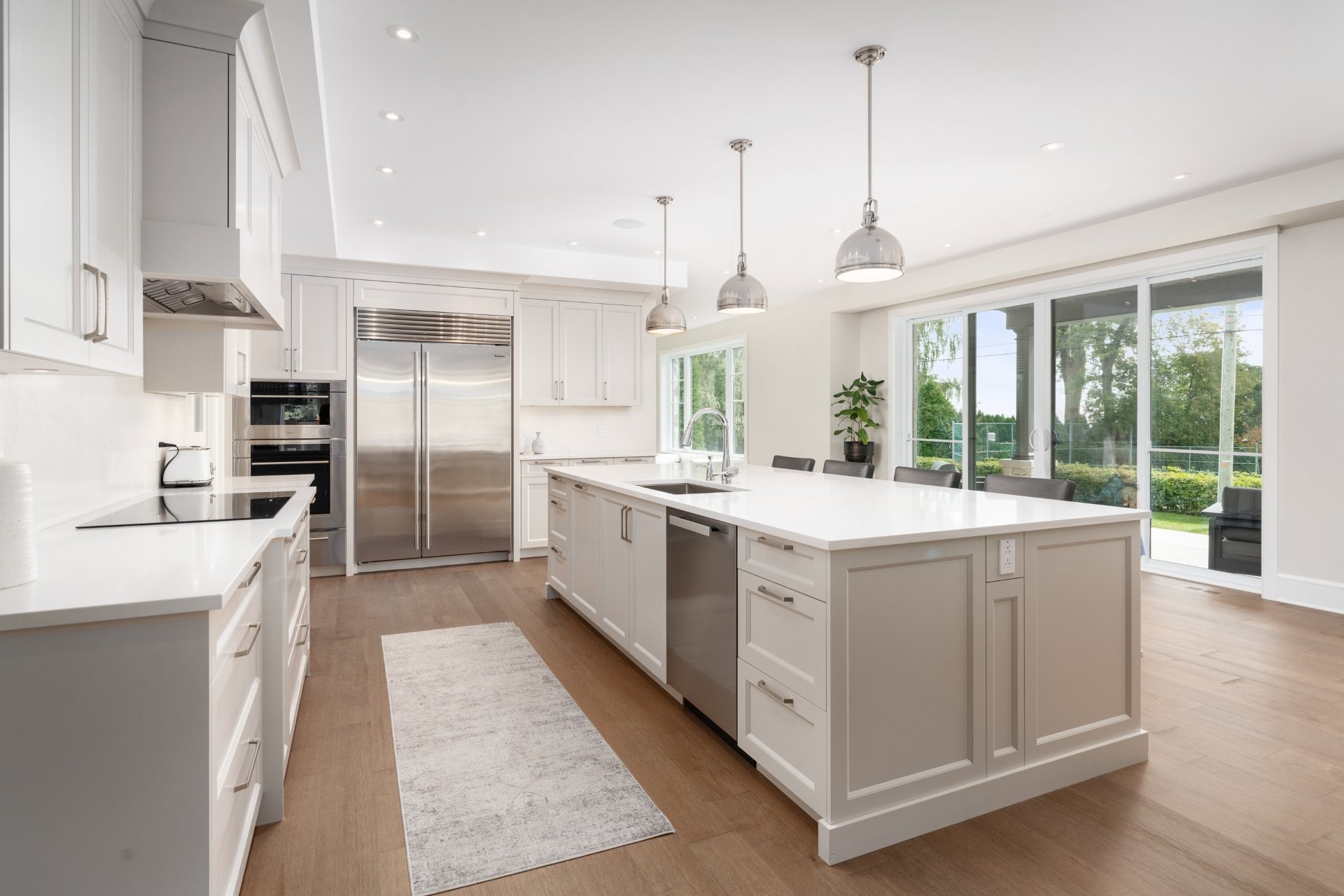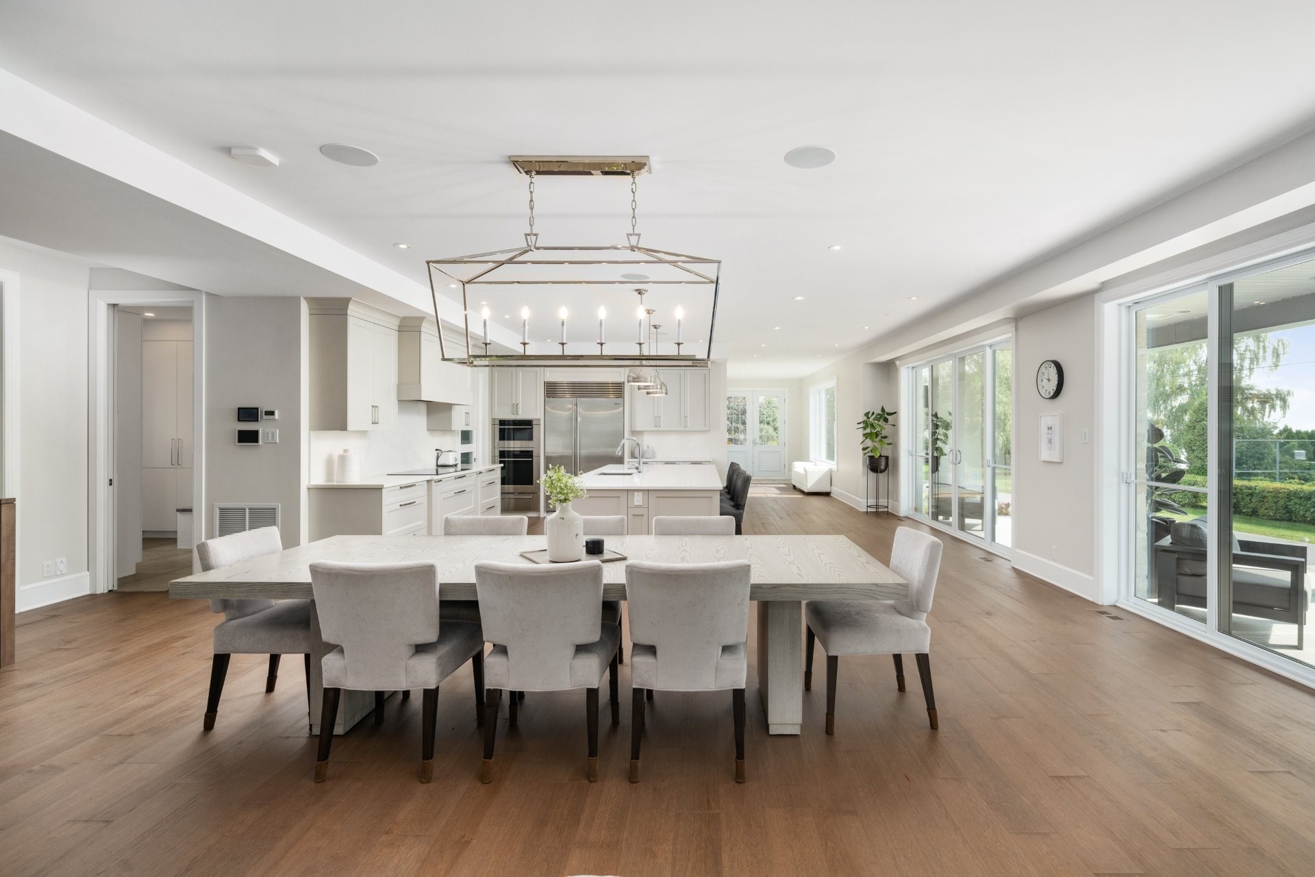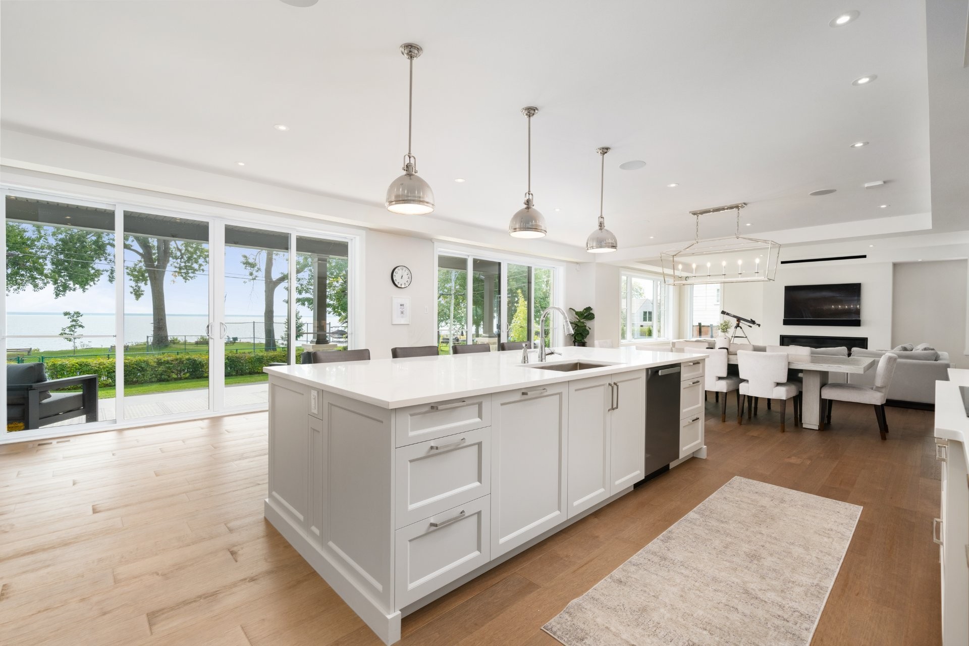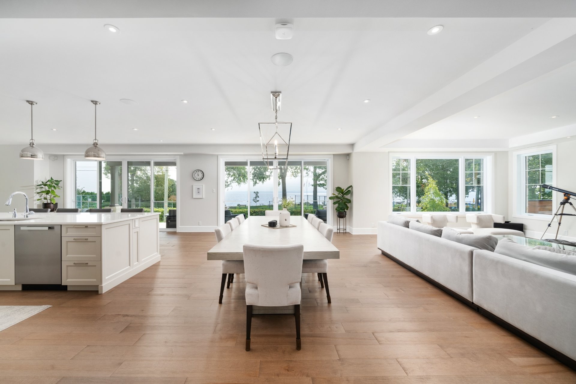 La cuisine, conçue par Cuisines Denis Couture, est équipée d'appareils haut de gamme Sub Zero et Wolf, de comptoirs en granit, d'un grand îlot, d'un cellier et d'un garde-manger. Le salon, avec ses grandes portes coulissantes, mène à un patio accueillant avec vue sur l'eau, idéal pour savourer votre café du matin.
