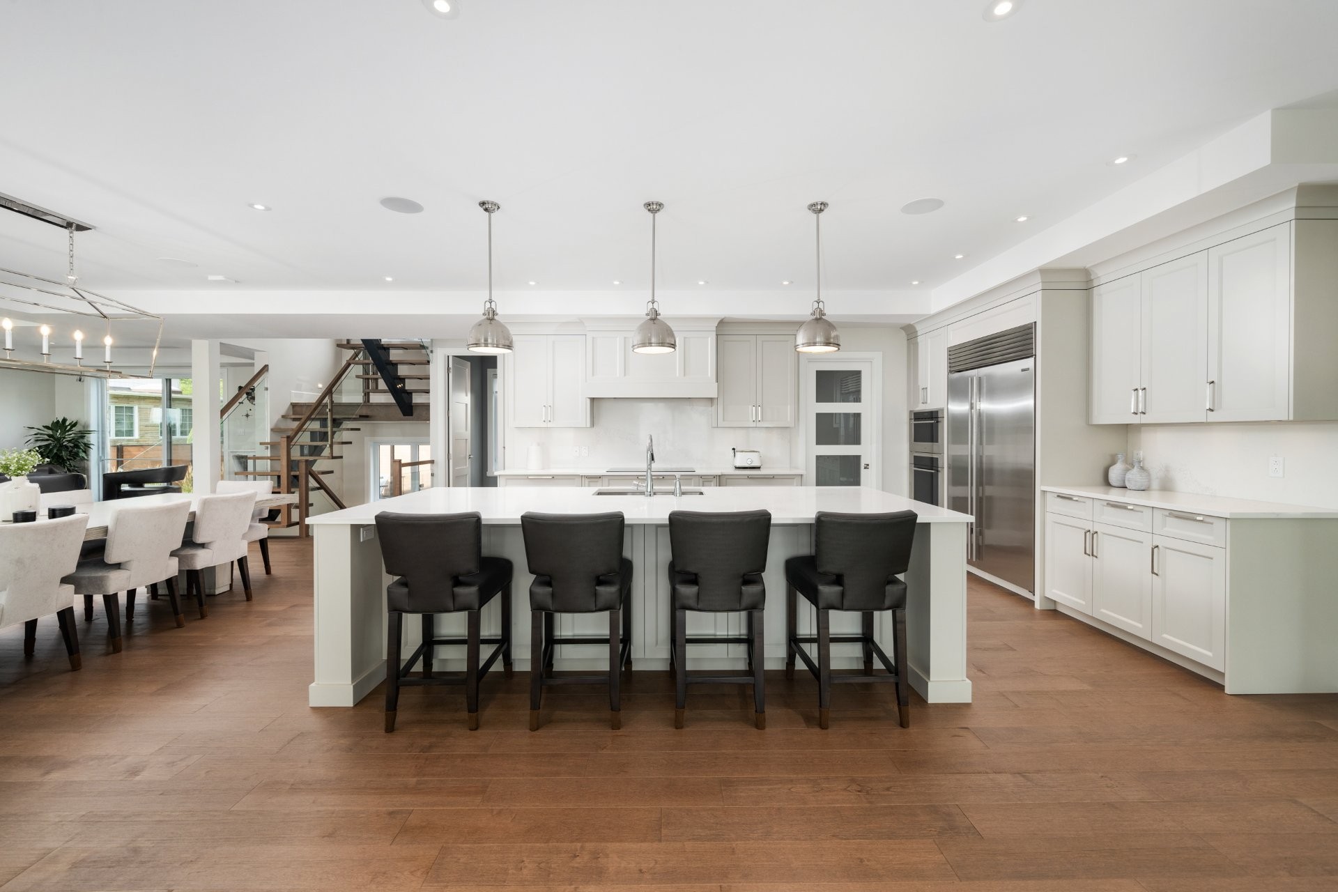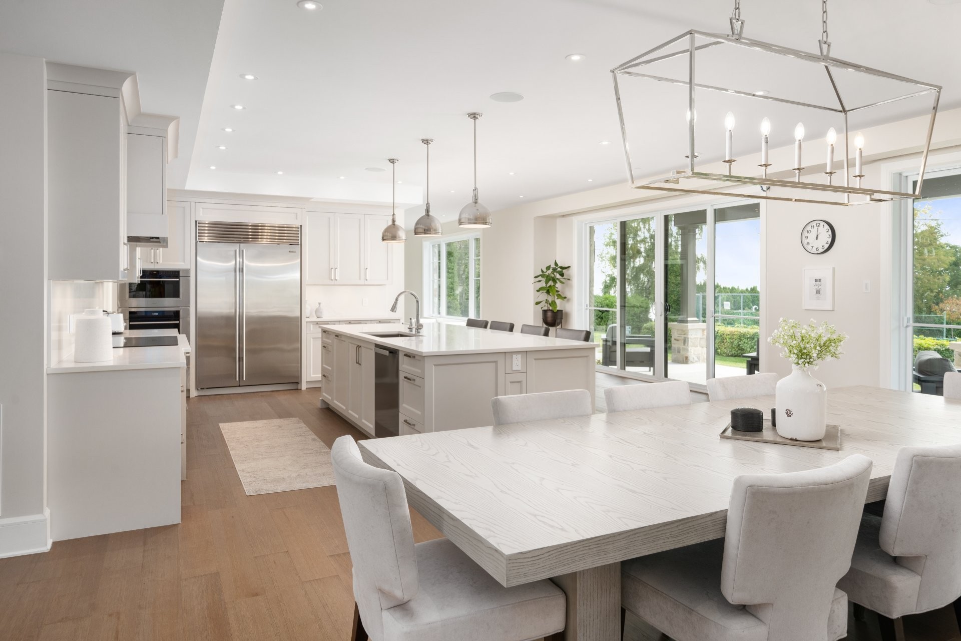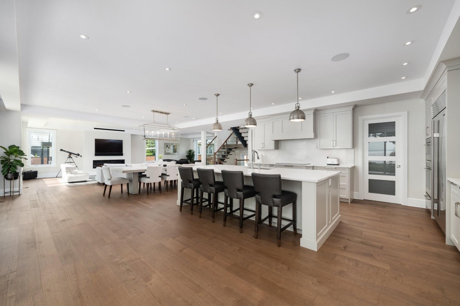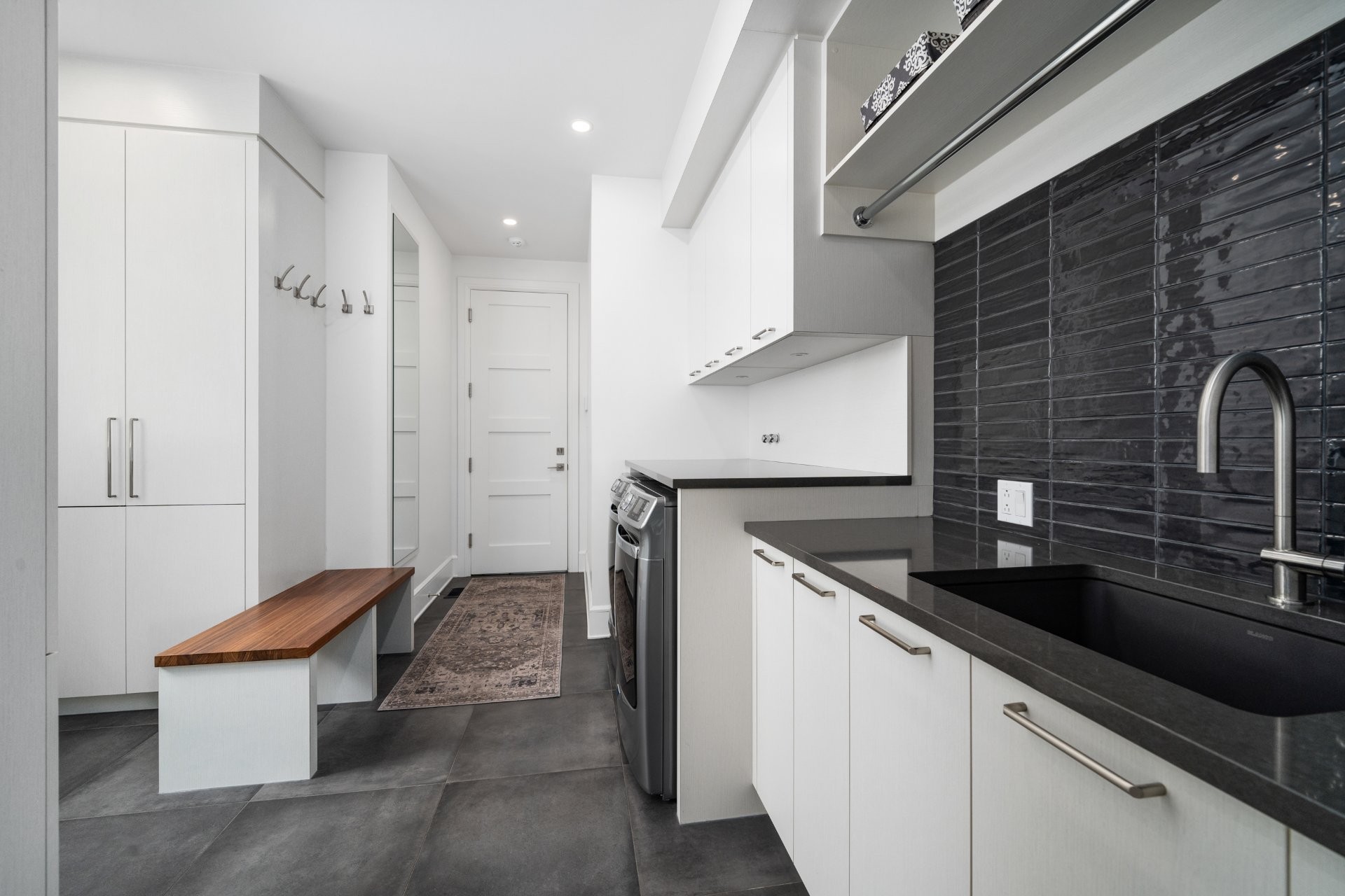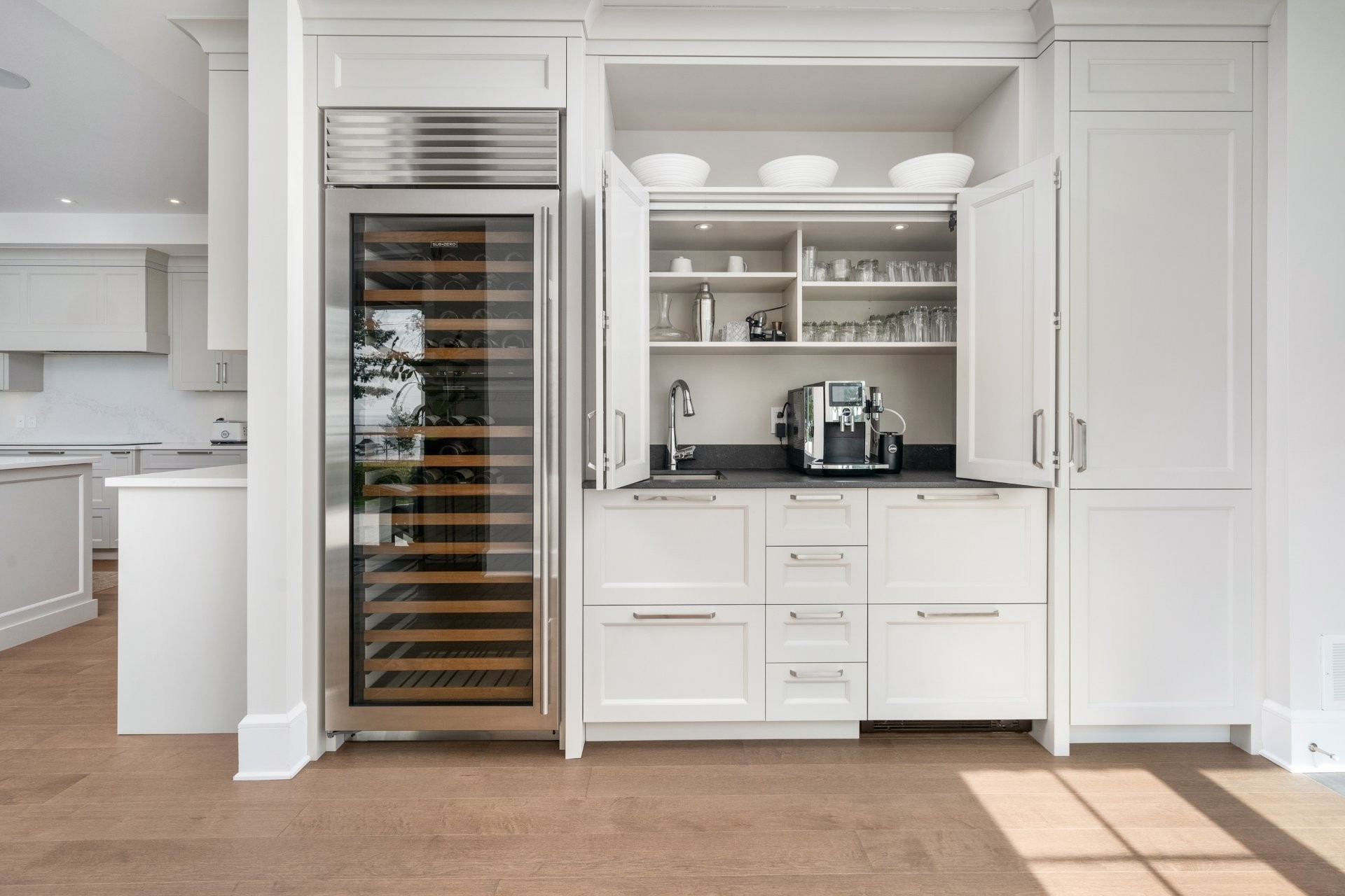 La cuisine, conçue par Cuisines Denis Couture, est équipée d'appareils haut de gamme Sub Zero et Wolf, de comptoirs en granit, d'un grand îlot, d'un cellier et d'un garde-manger. Le salon, avec ses grandes portes coulissantes, mène à un patio accueillant avec vue sur l'eau, idéal pour savourer votre café du matin.