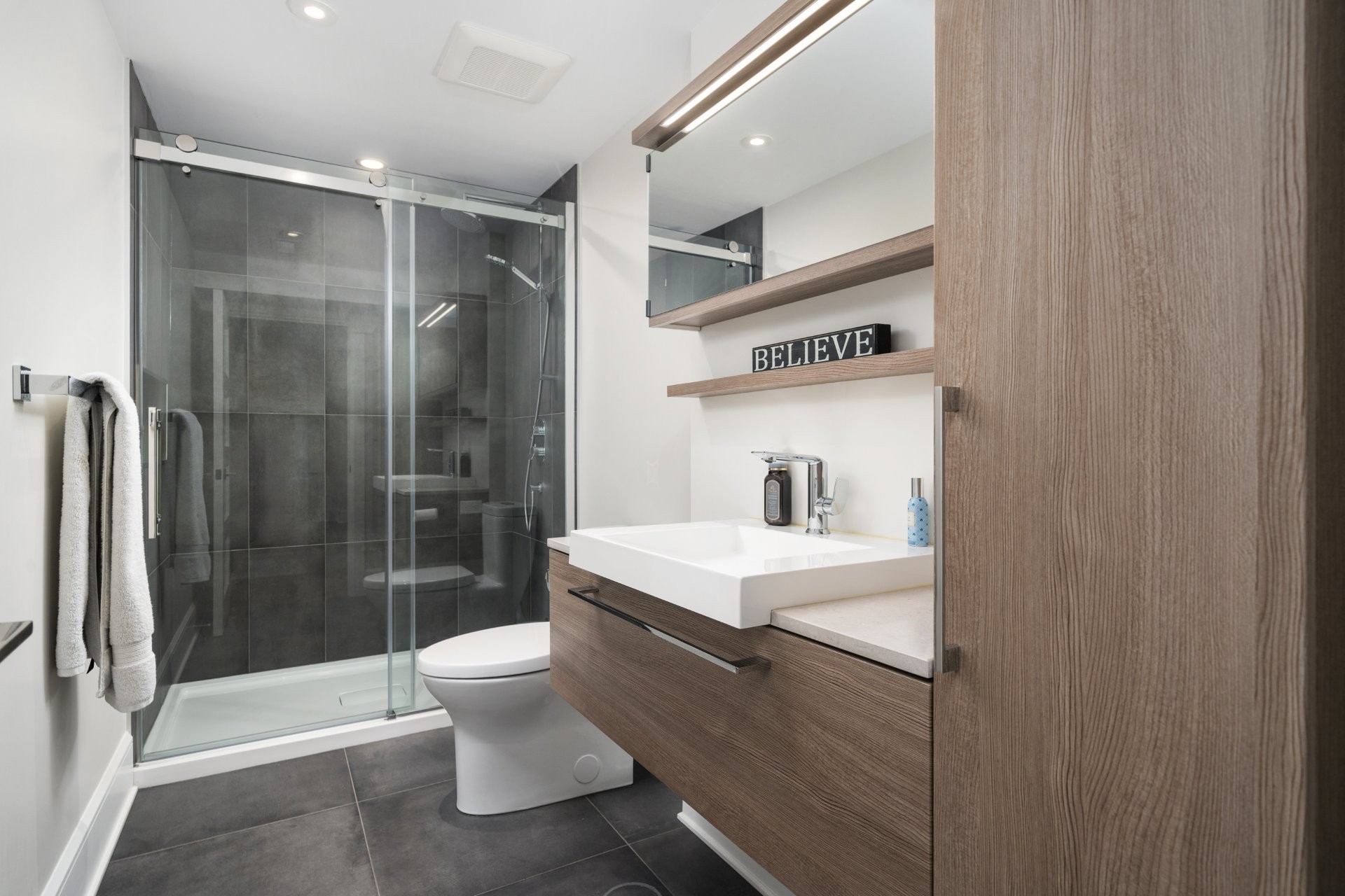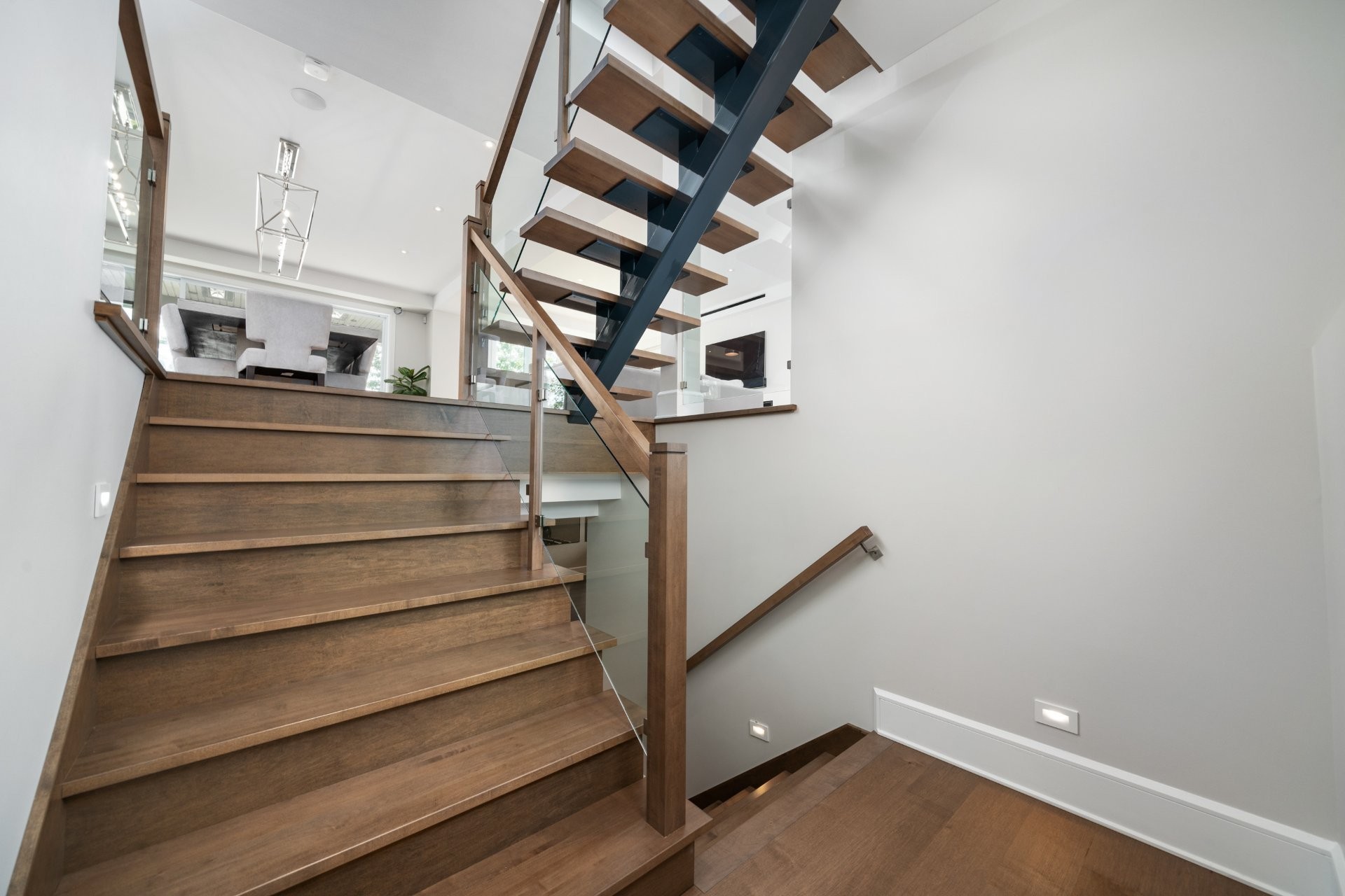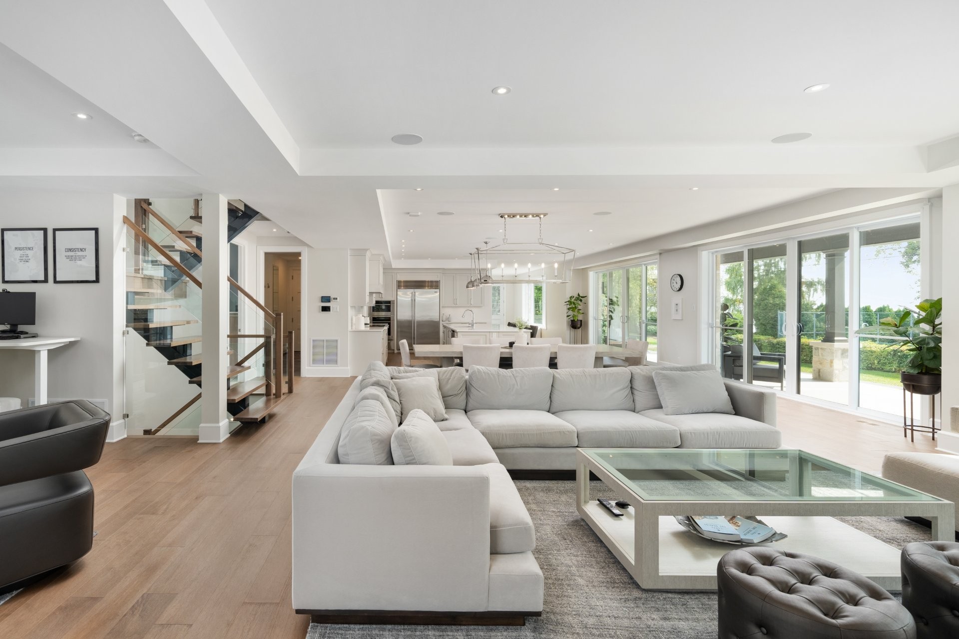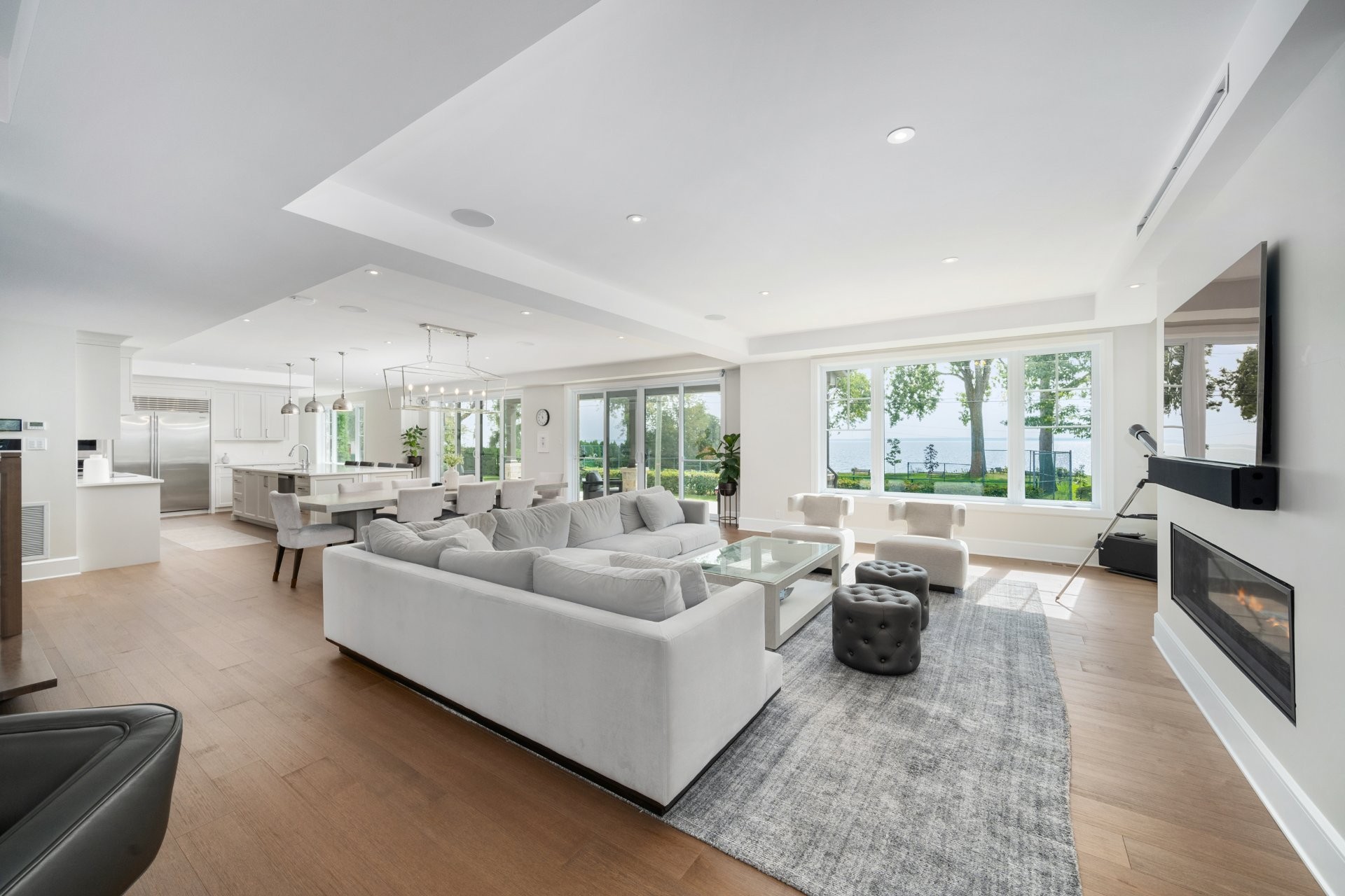 Dès l'entrée, le concept à aire ouverte relie harmonieusement le salon, la salle à manger, la cuisine gastronomique et le boudoir. La maison est dotée d'un système intelligent qui permet de contrôler l'éclairage, la sécurité, les haut-parleurs intégrés et les stores automatiques. Les grandes fenêtres laissent entrer beaucoup de lumière naturelle et offrent des vues à couper le souffle sur l'eau, tandis que les planchers en érable d'ingénierie ajoutent chaleur et élégance.