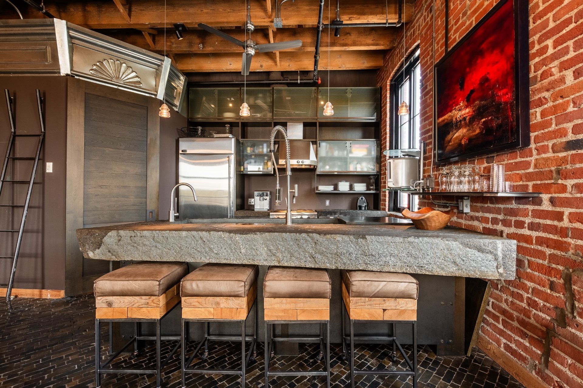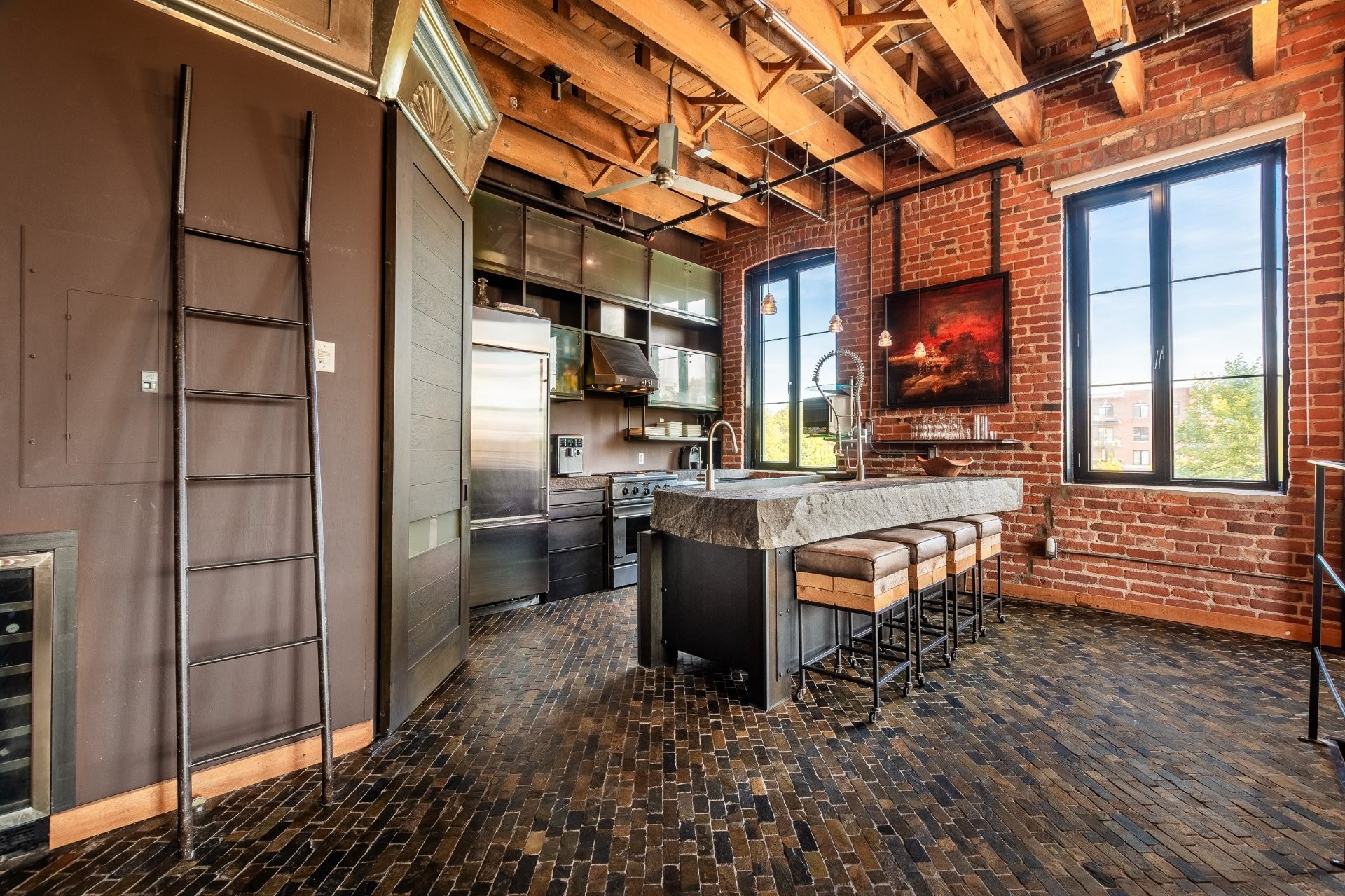 À quelques pas du marché Atwater et du canal Lachine, cette maison unique à deux niveaux offre une vue imprenable sur l'eau et les toits de la ville. Dès que vous franchirez son entrée privée et sécurisée au niveau de la rue, vous aurez l'impression d'avoir découvert un sanctuaire secret, qui allie à la perfection le charme brut de l'industrie et le luxe raffiné.