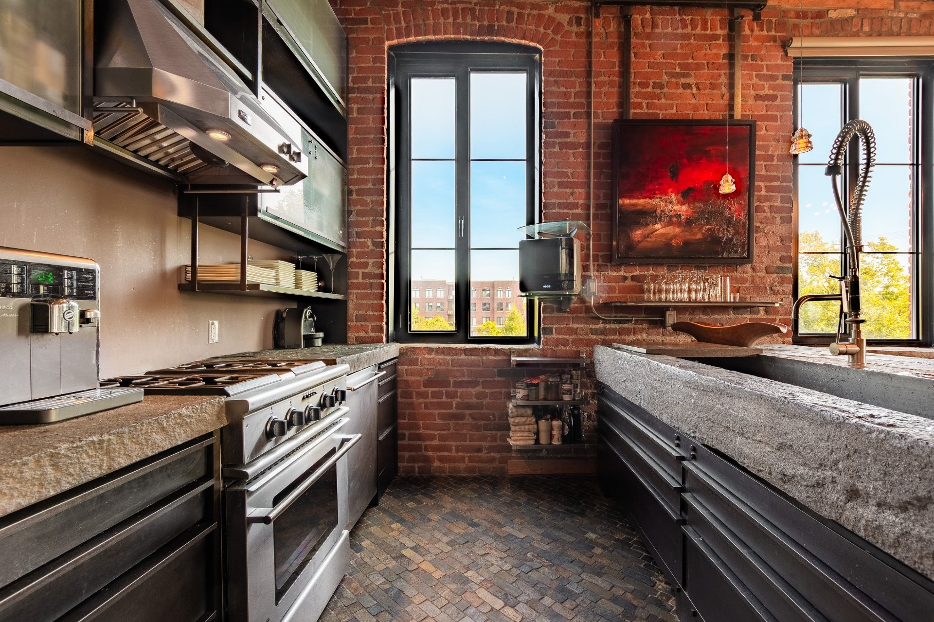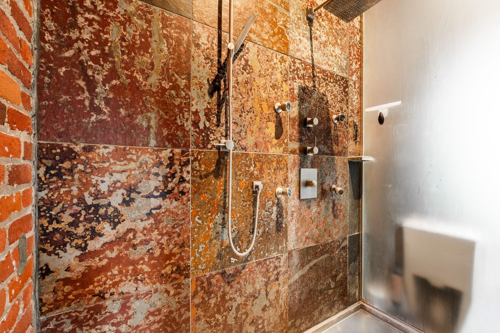 L'espace est un chef-d'oeuvre de contrastes et de savoir-faire. Les plafonds de 4,27 mètres de haut, les grandes fenêtres, les briques apparentes, les portes coulissantes d'origine, les poutres en bois et les tuyaux apparents rappellent le passé industriel du bâtiment, tandis que les finitions haut de gamme sur mesure ajoutent chaleur et élégance à l'ensemble. Les sols sont un mélange saisissant de bois exotique et d'ardoise naturelle, donnant le ton à une maison aussi riche en caractère qu'en confort. Le vaste espace de vie à aire ouverte est baigné de lumière naturelle et offre une vue captivante sur le canal, qui fait entrer l'extérieur à l'intérieur. C'est un cadre de rêve pour recevoir, se détendre ou simplement profiter de la lumière changeante sur l'eau. Depuis votre porte d'entrée, vous pouvez marcher, courir, faire du kayak ou même du ski de fond le long du canal : la vie urbaine à son apogée, dynamique et inspirante.