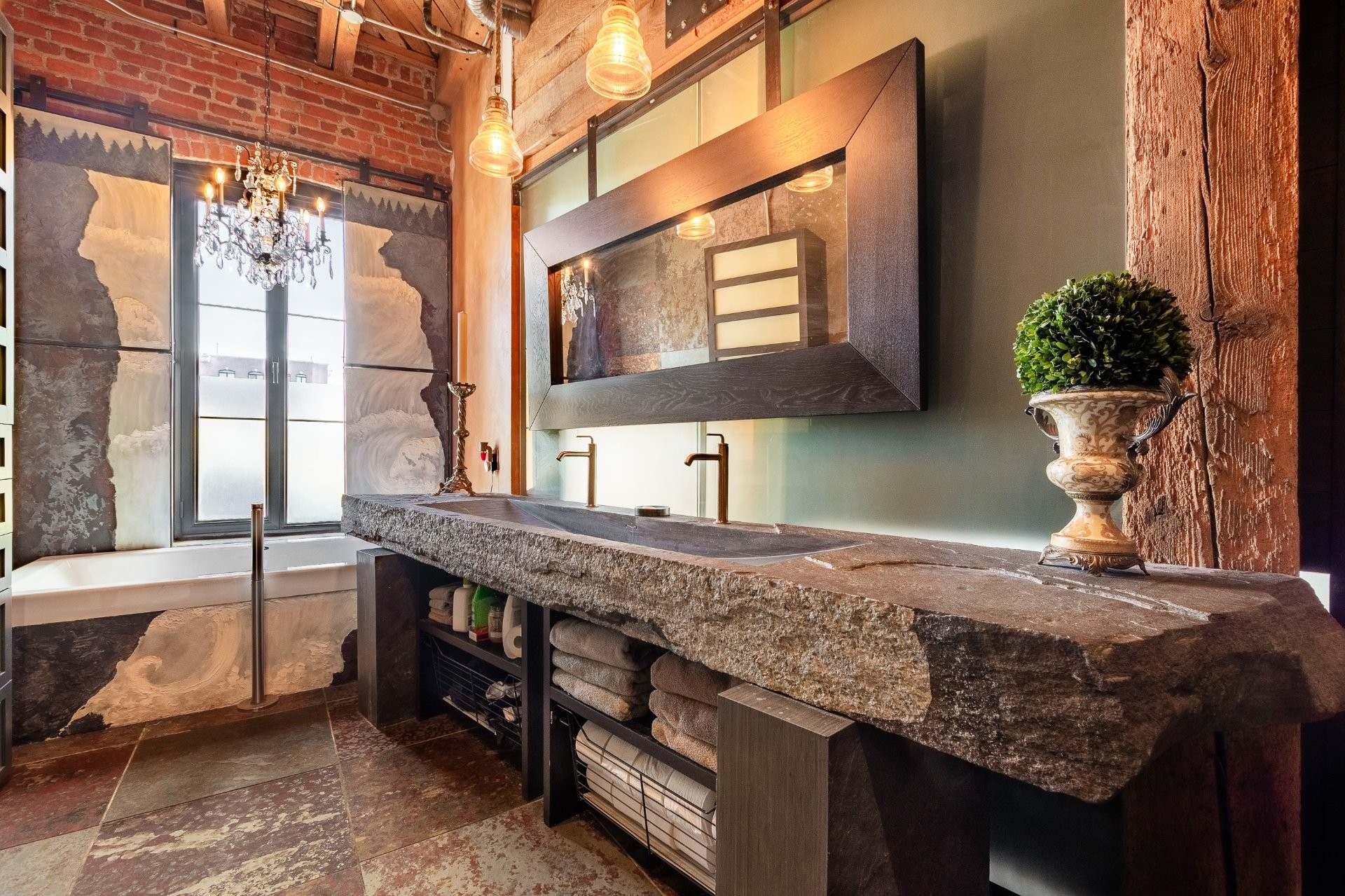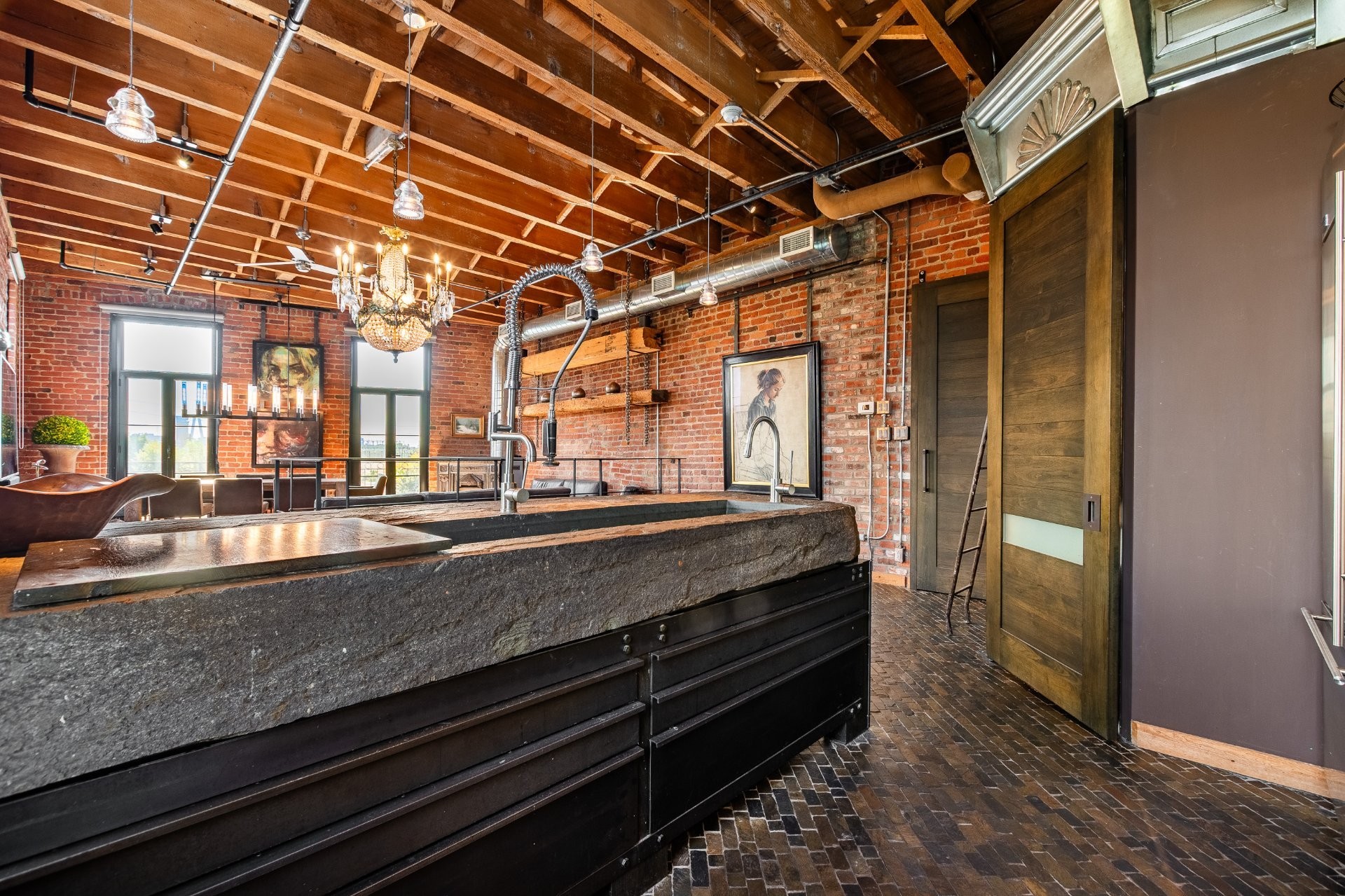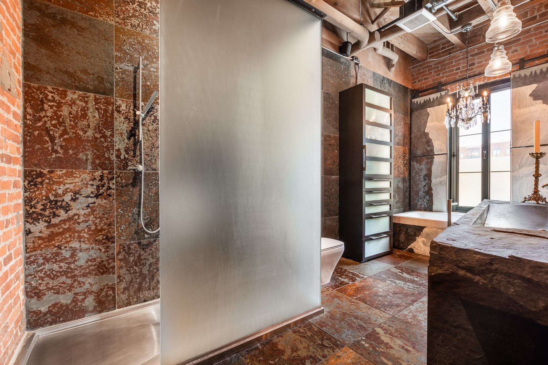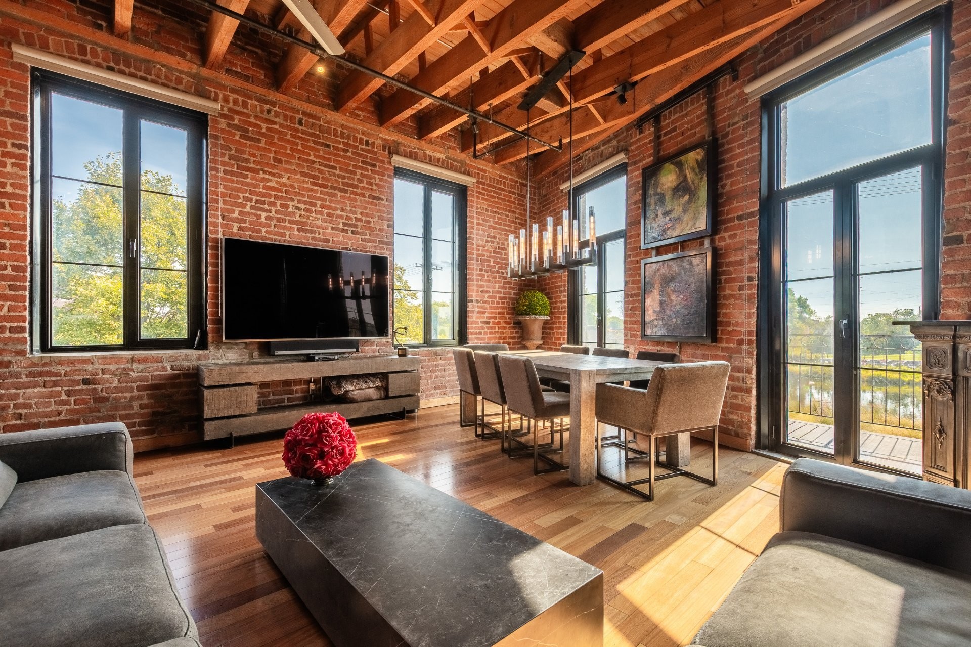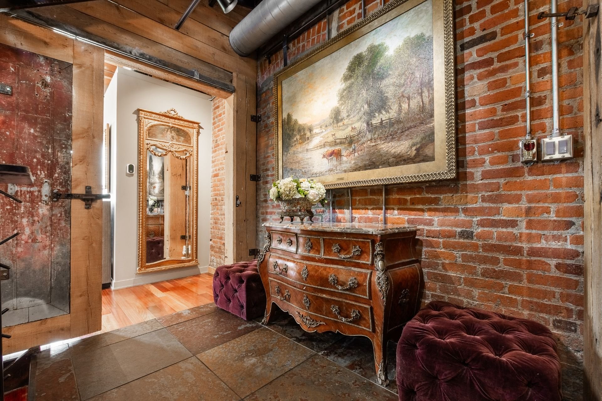 Un bijou caché au Clos St-Ambroise ! Ce condo unique sur 2 niveaux, situé dans une ancienne tannerie restaurée à St-Henri, allie charme industriel et finitions haut de gamme. Plafonds de 14 pi, murs de brique, portes d'usine d'origine, poutres en bois, grandes fenêtres avec vue sur l'eau et la ville. Matériaux nobles : bois exotique, ardoise, comptoirs et lavabos en pierre taillée. Entrée privée, concept ouvert lumineux, accès direct au garage avec 2 stationnements. À deux pas du Marché Atwater et du canal Lachine. Unique et spectaculaire !