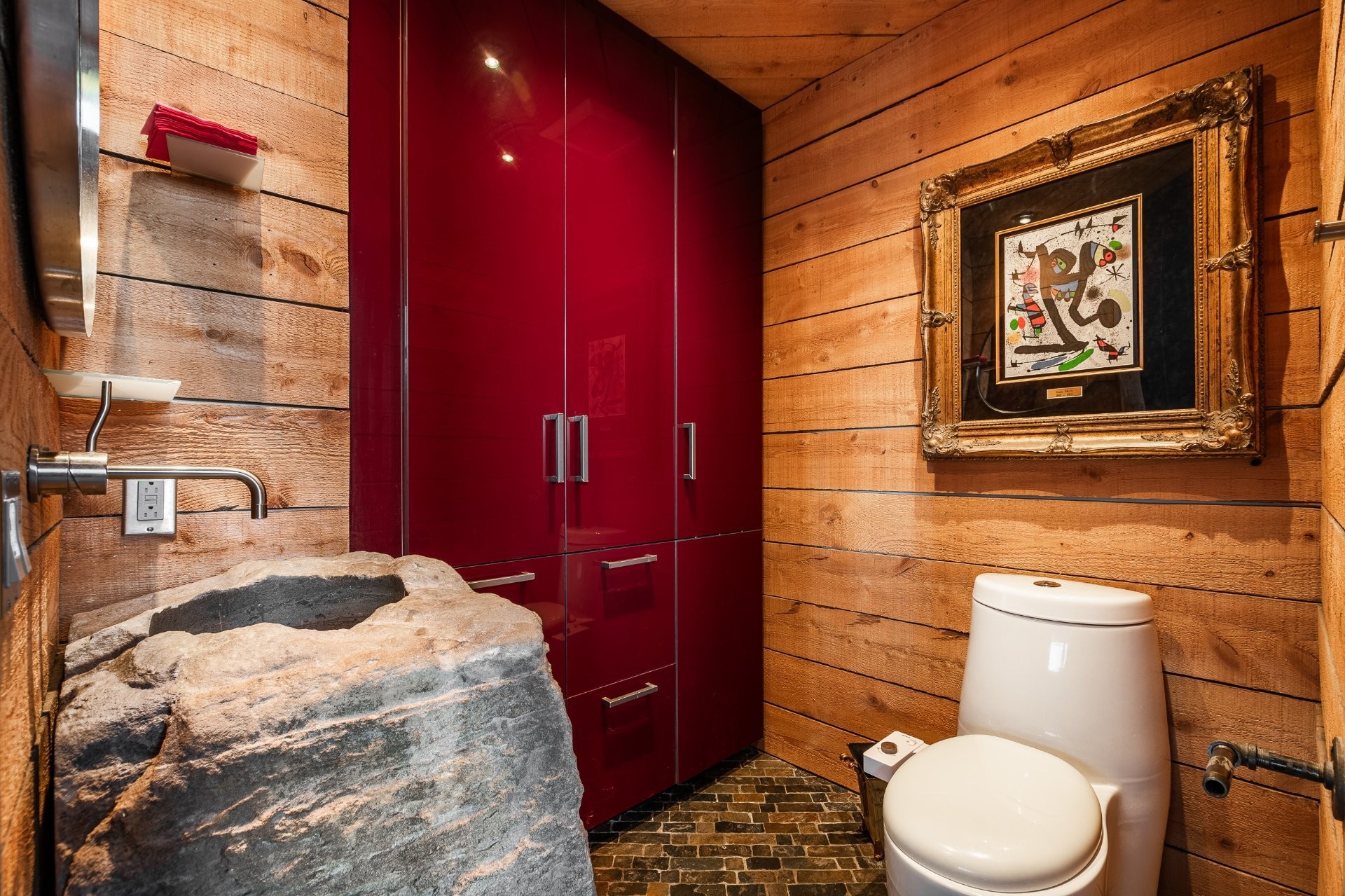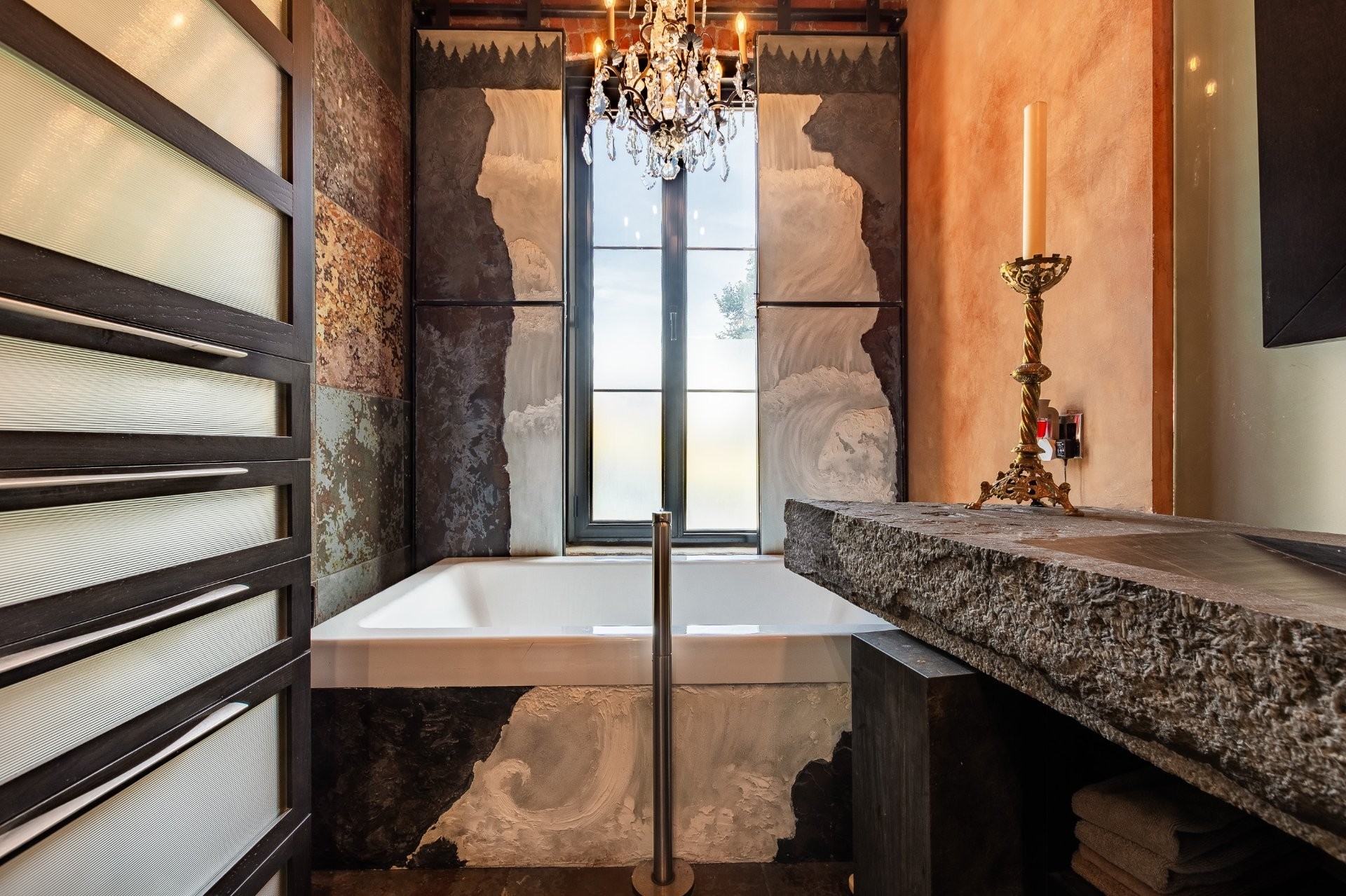 La cuisine est une oeuvre d'art, avec ses plans de travail en pierre sculptée qui ajoutent une touche audacieuse et sculpturale à l'espace. Le même sens artistique se retrouve dans la salle d'eau et la salle de bains attenante, qui ressemble à un spa, où des lavabos en pierre sur mesure, un sol chauffant, une baignoire îlot, une douche à l'italienne et de nombreux rangements créent un véritable sanctuaire dans la chambre principale, spacieuse et ensoleillée.