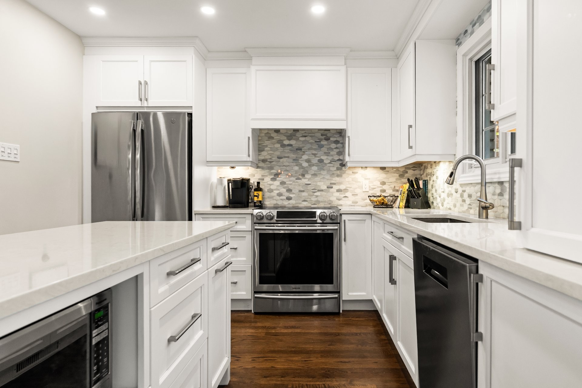 Condo impeccable avec un plan bien conçu de 2 chambres à coucher et 2 salles de bain. Grand espace de vie, coin bureau, cuisine avec comptoi...