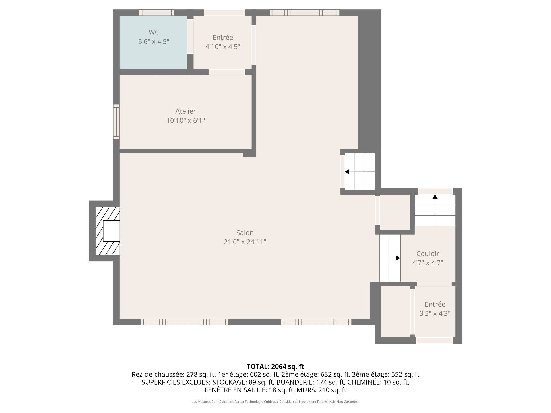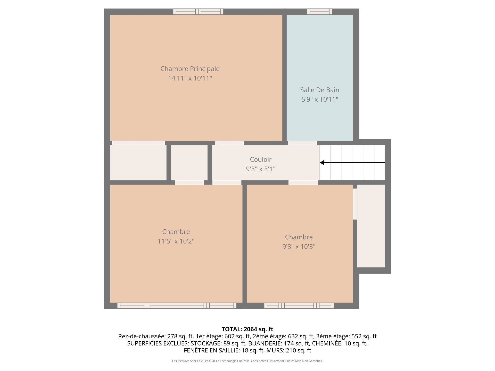 | Salle de bain | 3ième étage | 5.9x10.11 P | Céramique | |