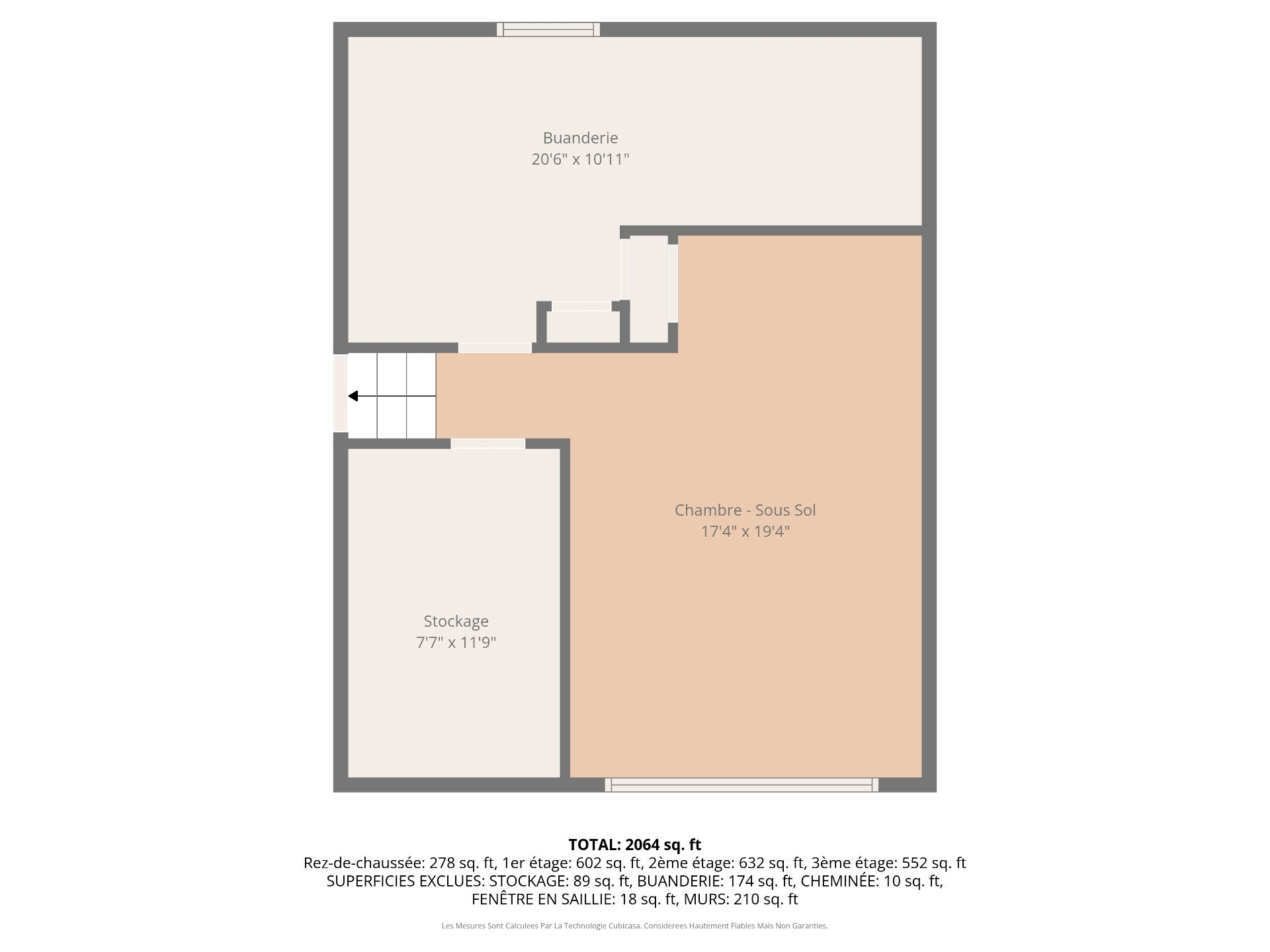 | Chambre à coucher | Sous-sol | 19.5x12.3 P | Tapis | |