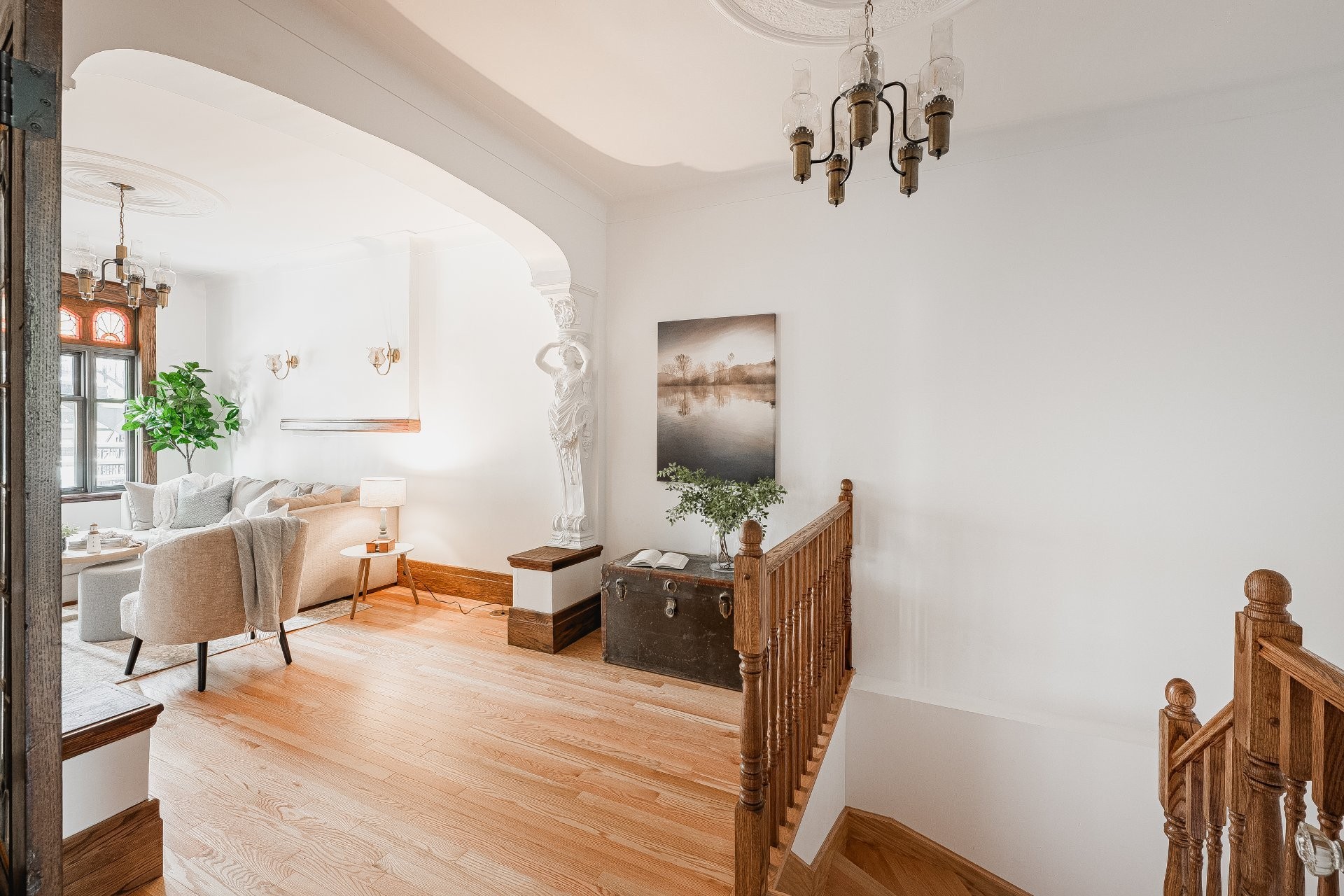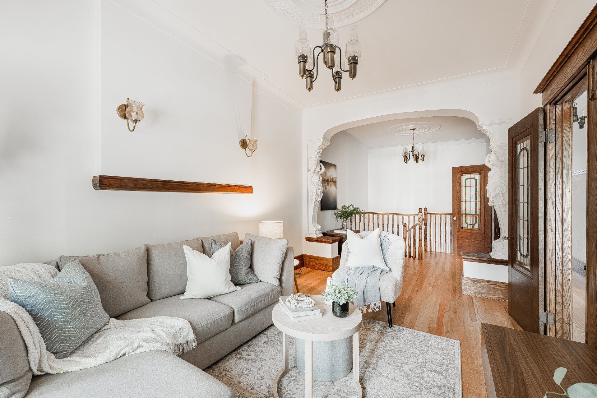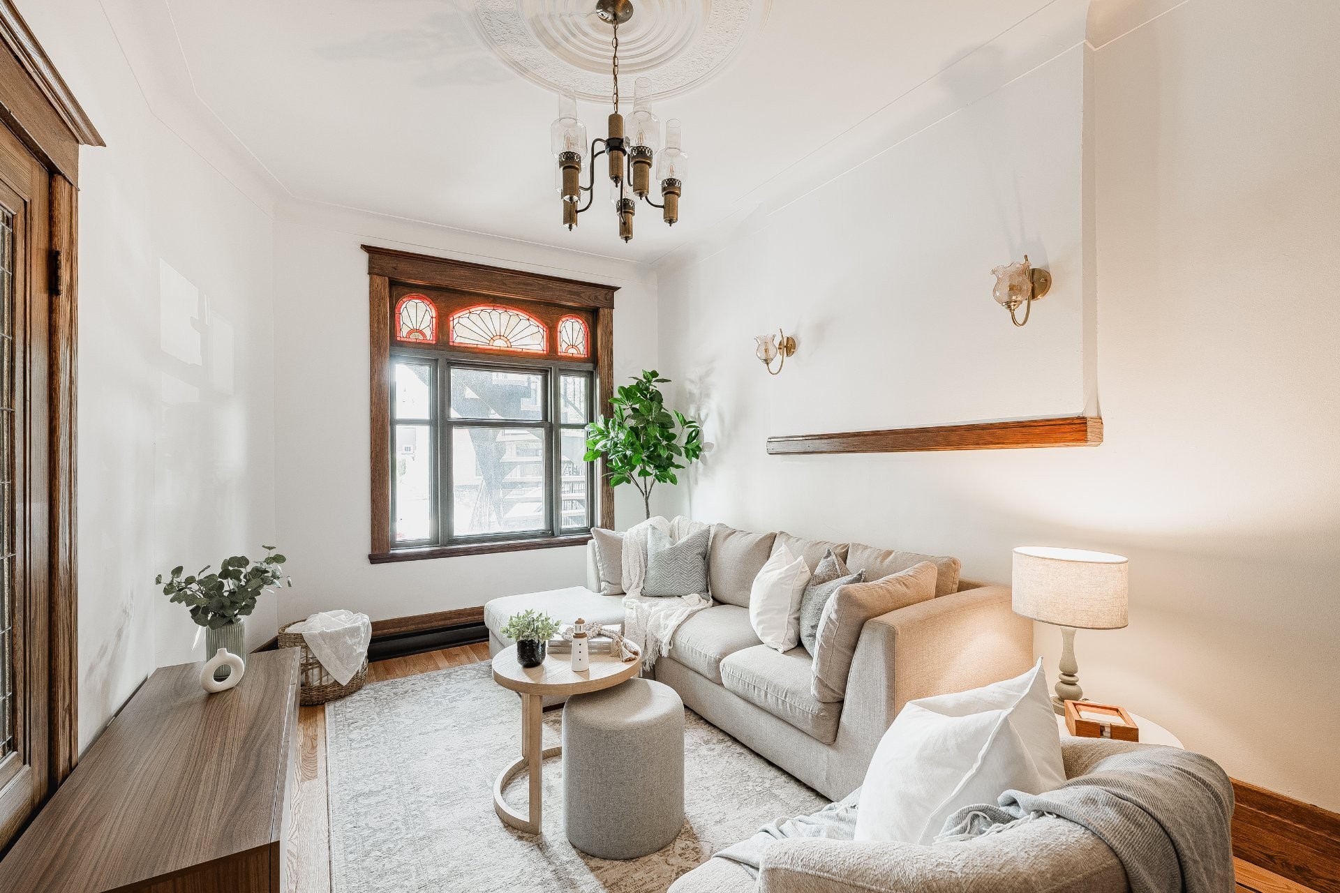 Découvrez le mélange parfait de charme historique et de luxe moderne dans ce magnifique condo rénové de deux étages. Situé dans un immeuble entièrement revitalisé, cette unité de 4 chambres offre un espace de vie spacieux et élégant, idéal pour un couple professionnel ou une famille. Le condo comprend 2 salles de bain modernisées et une cuisine rénovée avec des comptoirs en quartz élégants, alliant design contemporain et élégance intemporelle.