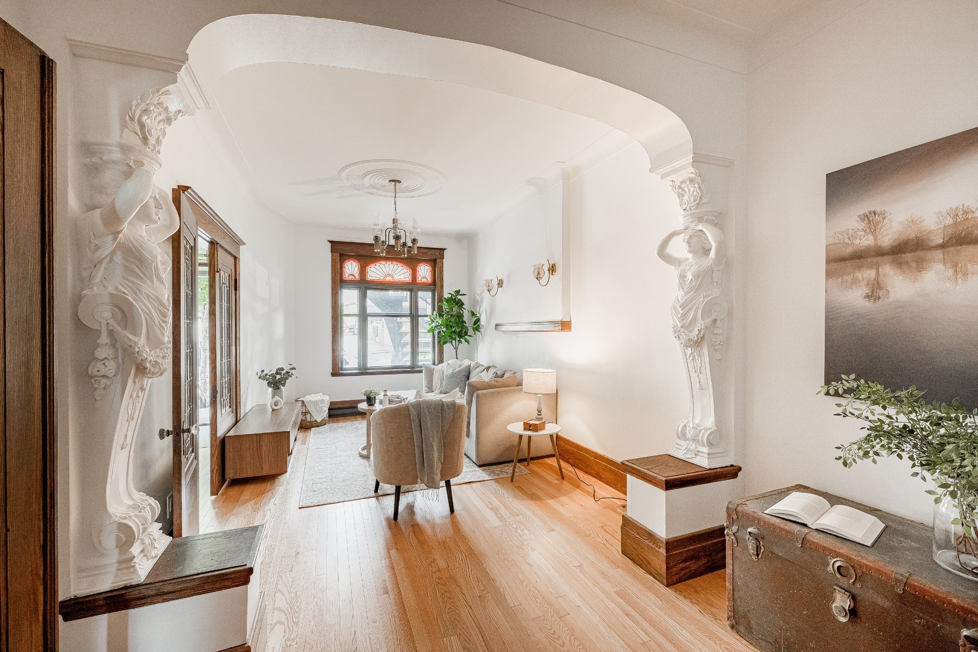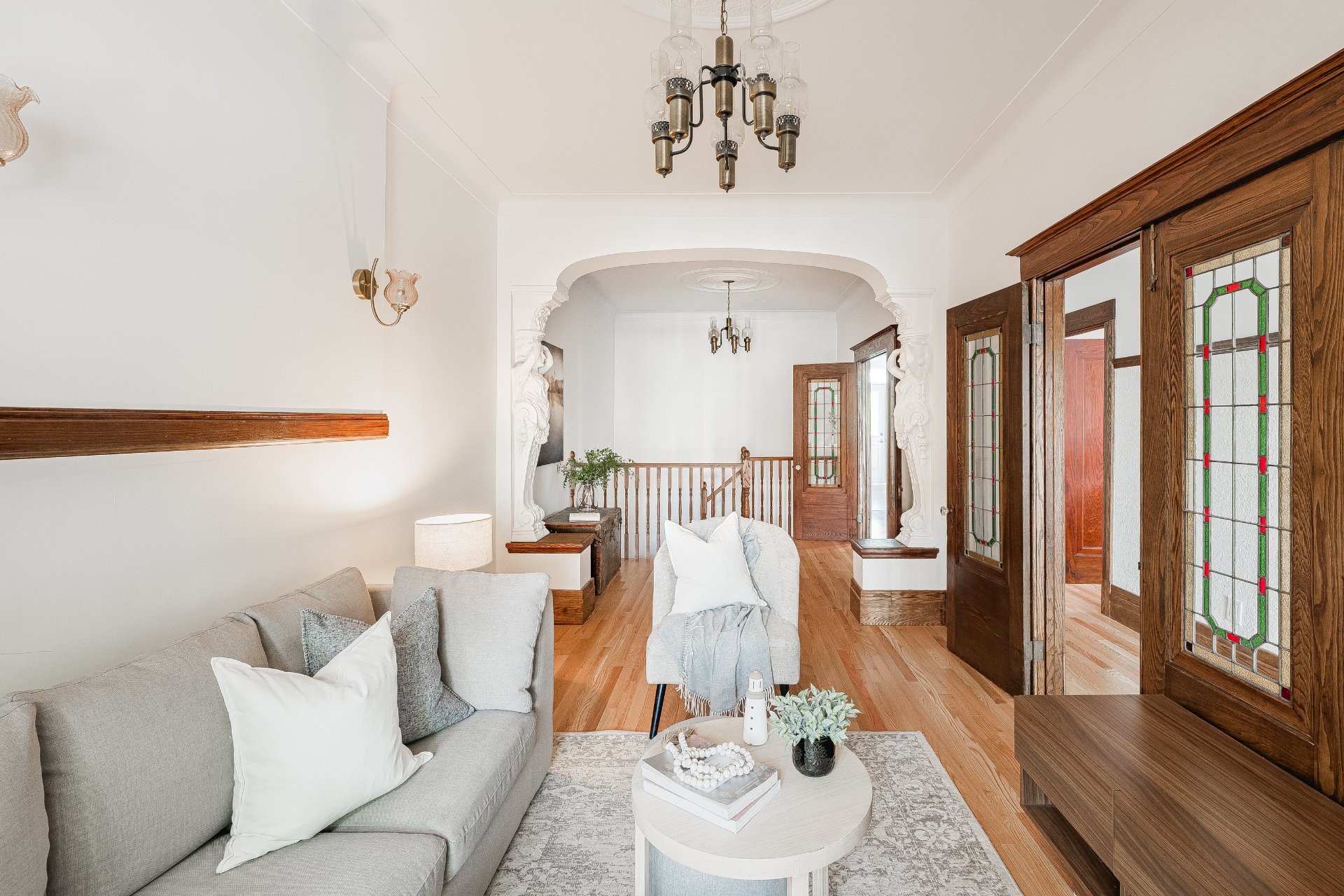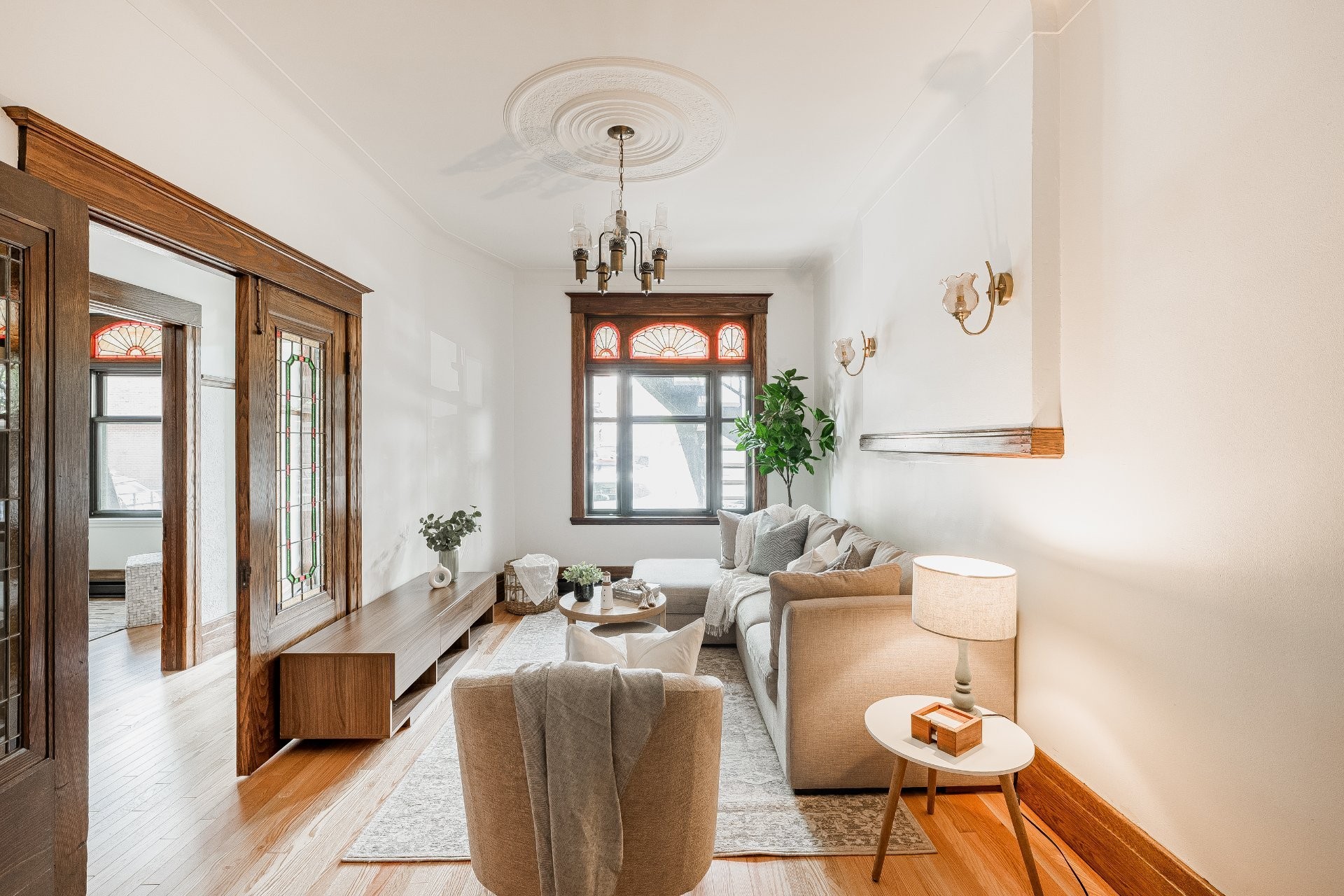 Découvrez le mélange parfait de charme historique et de luxe moderne dans ce magnifique condo rénové de deux étages. Situé dans un immeuble entièrement revitalisé, cette unité de 4 chambres offre un espace de vie spacieux et élégant, idéal pour un couple professionnel ou une famille. Le condo comprend 2 salles de bain modernisées et une cuisine rénovée avec des comptoirs en quartz élégants, alliant design contemporain et élégance intemporelle.
