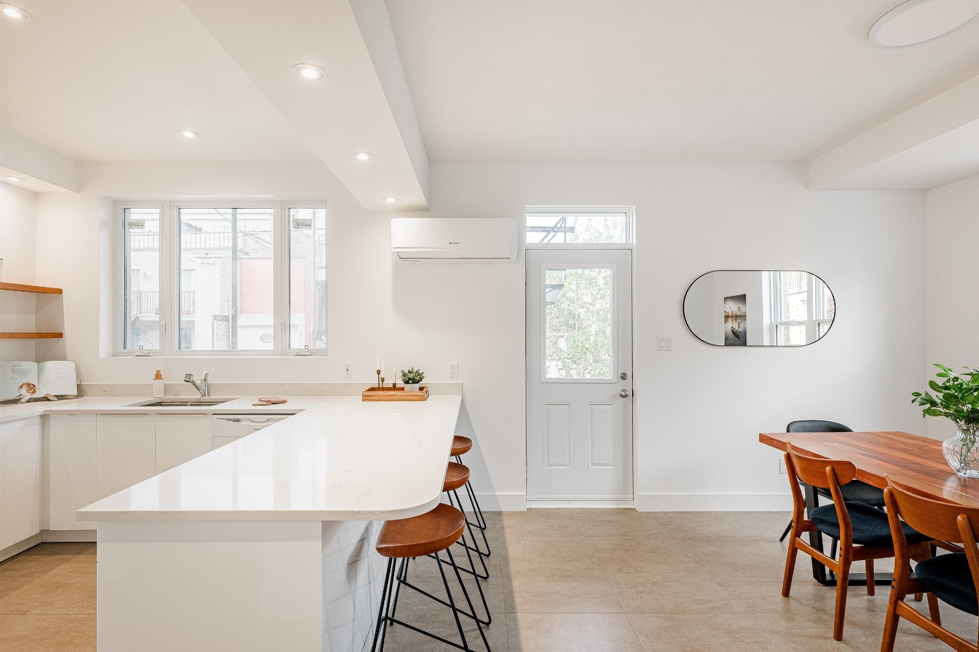 Découvrez le charme de ce magnifique condo à deux étages d'un immeuble entièrement revitalisé. Avec ses 4 chambres, 2 salles de bain modernisées, sa cuisine rénovée, ses planchers de bois d'origine restaurés, sa lumière naturelle abondante, ses plafonds hauts, et un stationnement extérieur. Le fonds de prévoyance est conforme à la loi 16 pour une plus grande tranquillité d'esprit. Idéal pour un couple professionnel ou une famille, il offre un emplacement central à quelques minutes du Jardin botanique, du Biodôme, du Stade olympique, du boulevard Pie-IX, des stations de métro, des boutiques et des services.