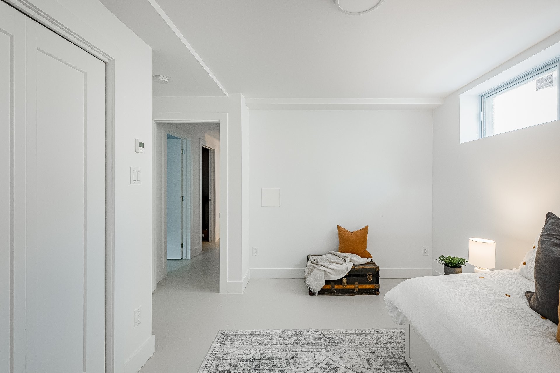 La propriété dispose d'un sous-sol spacieux entièrement aménagé, offrant une polyvalence et un confort exceptionnels. On y trouve deux grandes chambres ainsi qu'une salle de bains complète avec planchers chauffants et un espace buanderie pratique. Un atelier dédié avec évier utilitaire est idéal pour les loisirs ou le rangement supplémentaire, tandis que la salle familiale chaleureuse s'ouvre par des portes-patios sur l'arrière, créant une transition harmonieuse entre l'intérieur et l'extérieur.