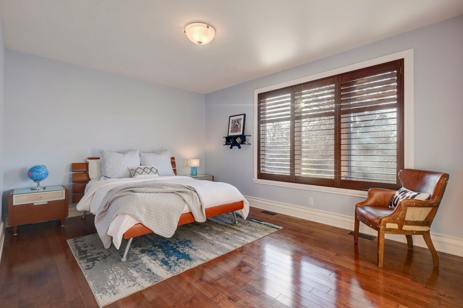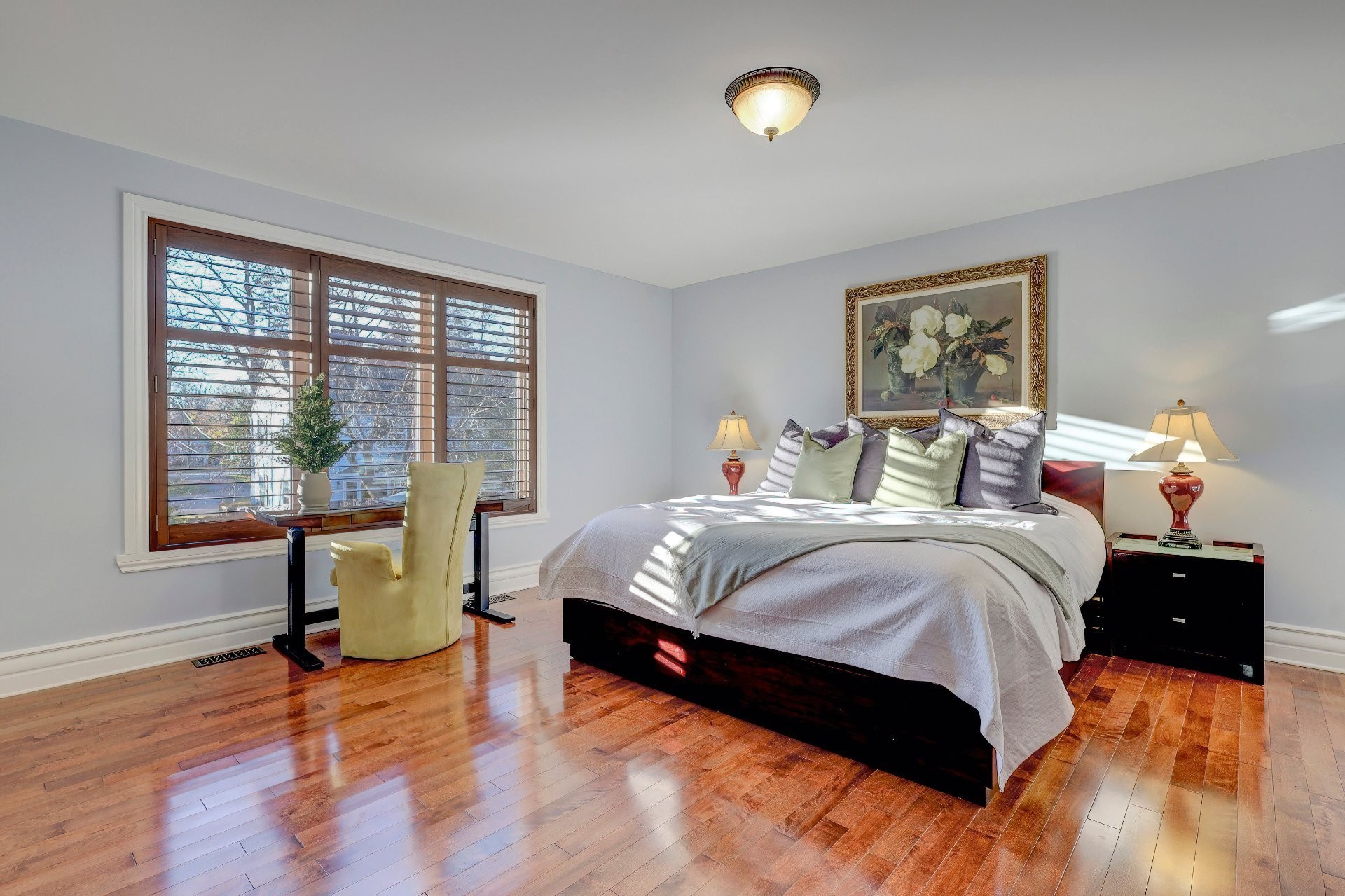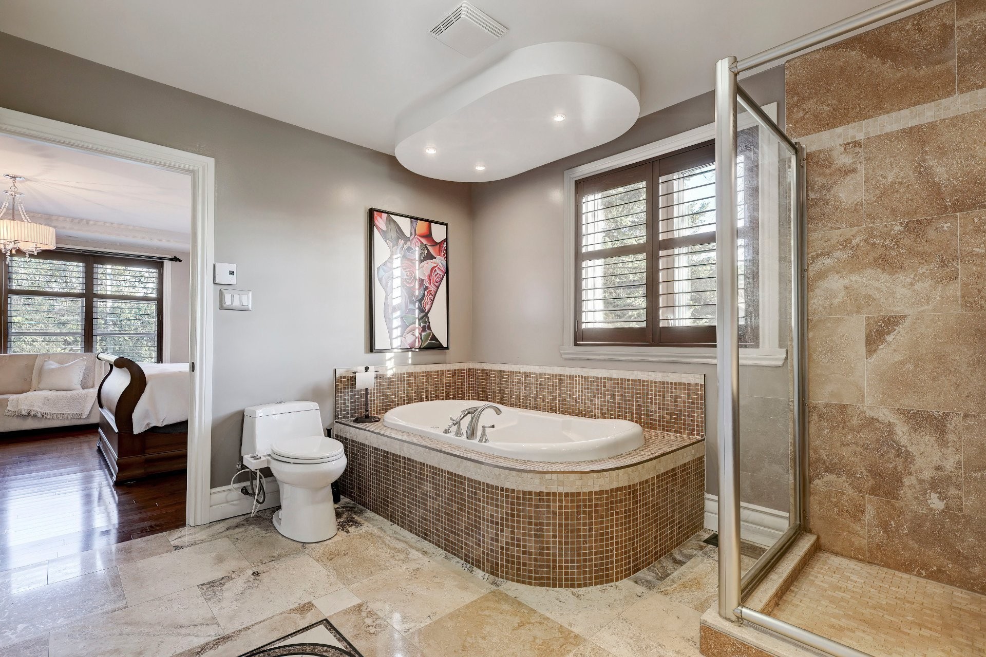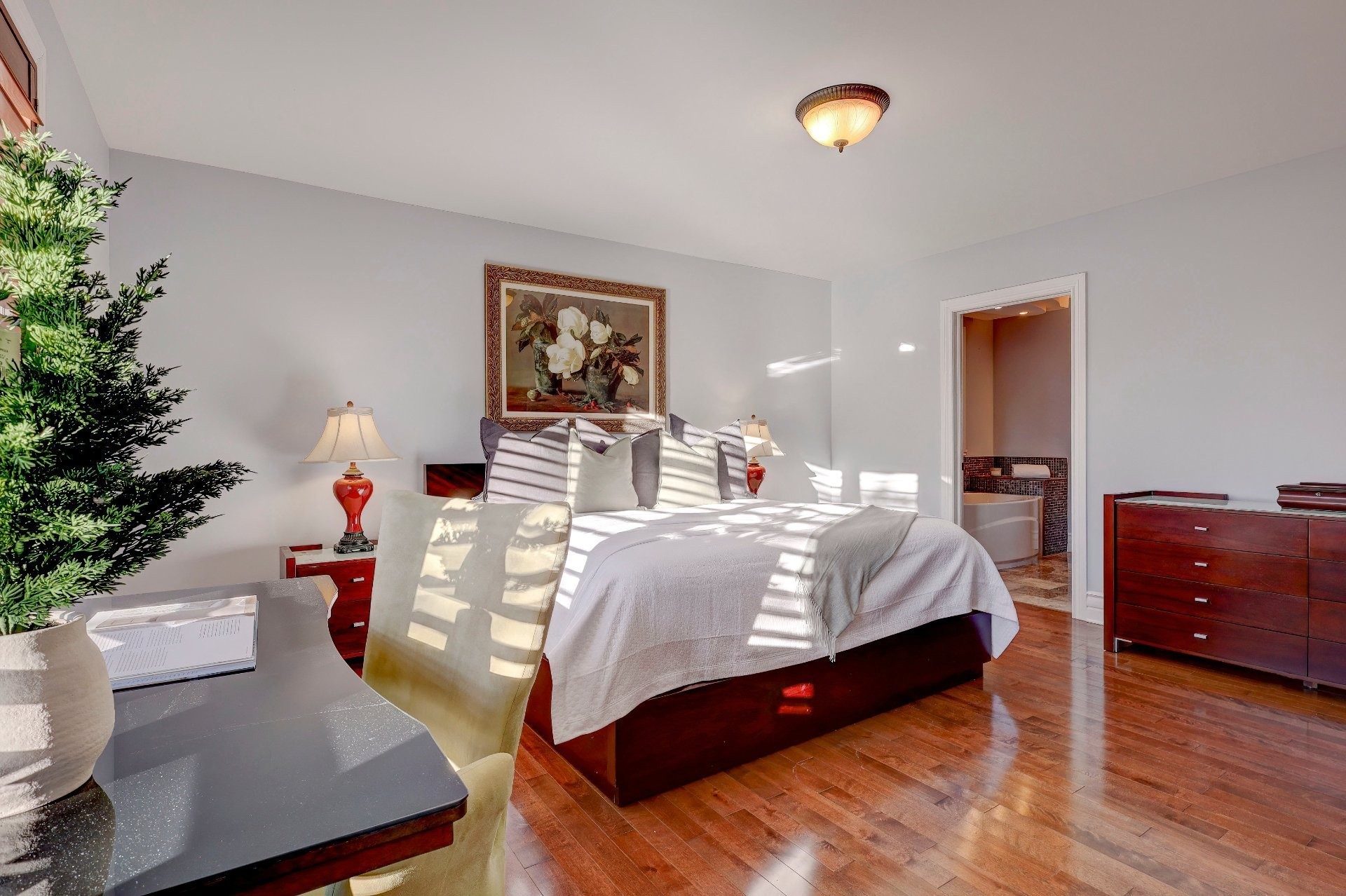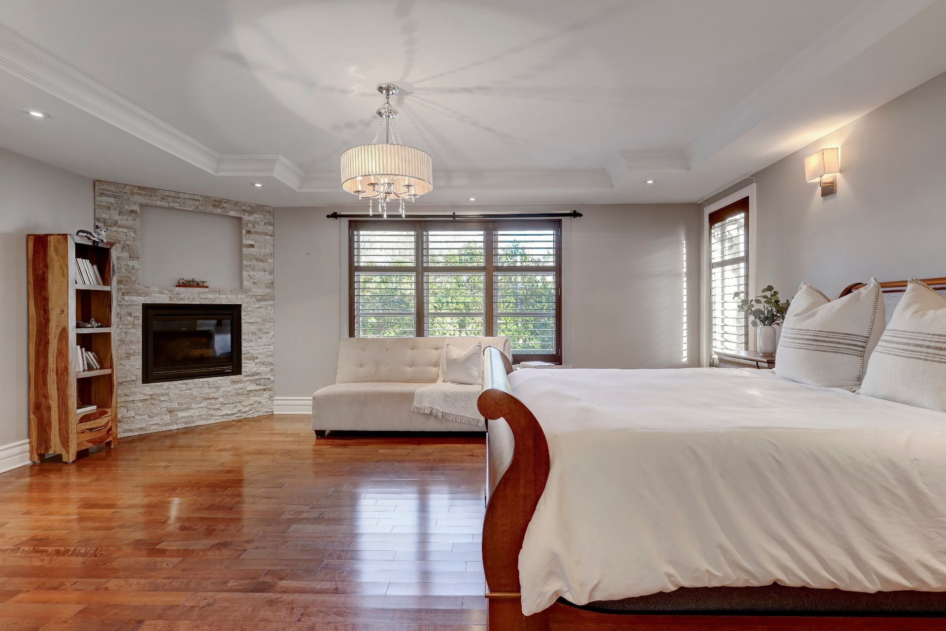 La suite principale est dotée de planchers en bois franc, d'un foyer au gaz, d'une salle-penderie (10.11 x 6) et d'une salle de bain complète avec baignoire profonde et douche séparée.