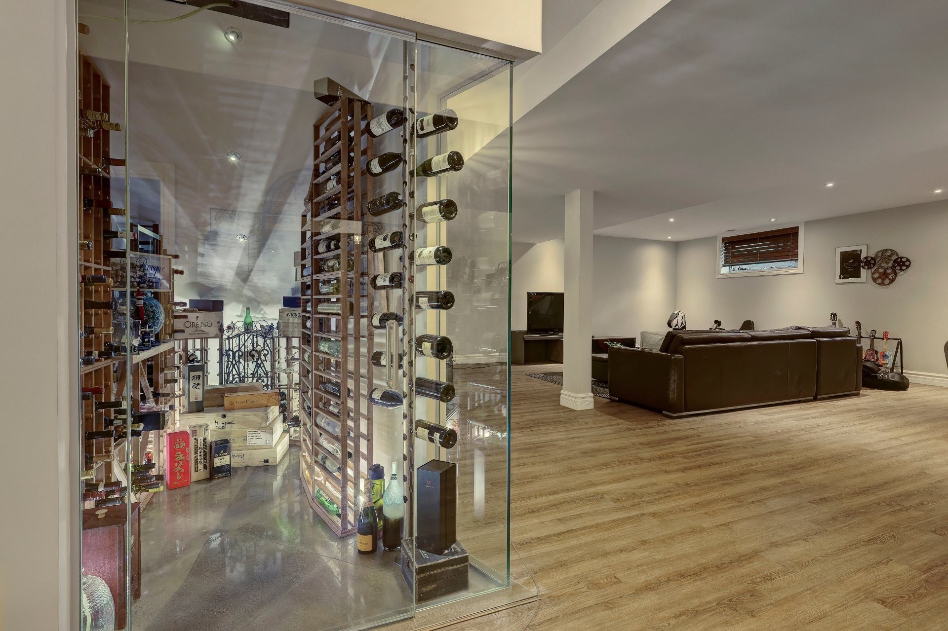 Le sous-sol comprend également un cellier à vins à température contrôlée fait sur mesure.