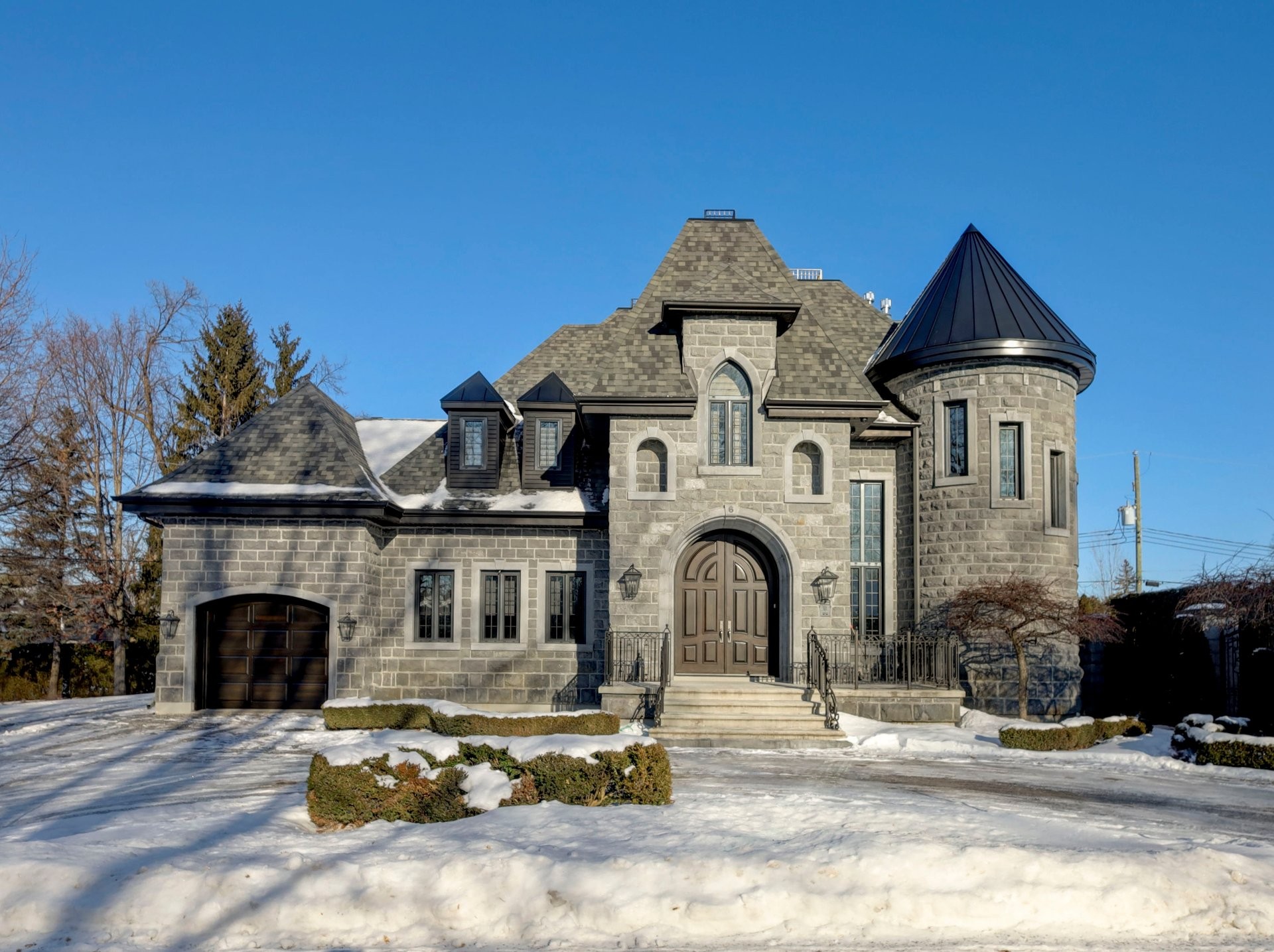 Imposante résidence en pierre de 7 348 pi² au bord de l'eau avec vues panoramiques,sur un vaste terrain de 52 842 pi². Construite et rénovée...